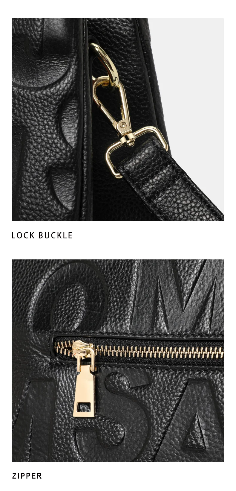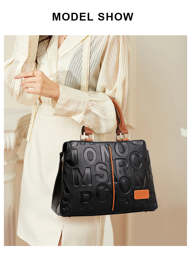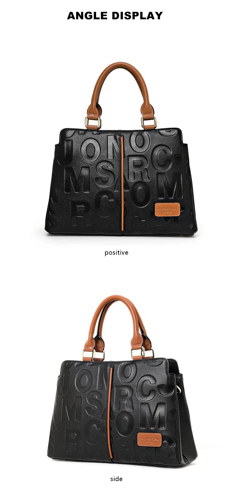 Aidrani genuine leather letter design women's handbag, large capacity shoulder bag made of 100% soft cowhide