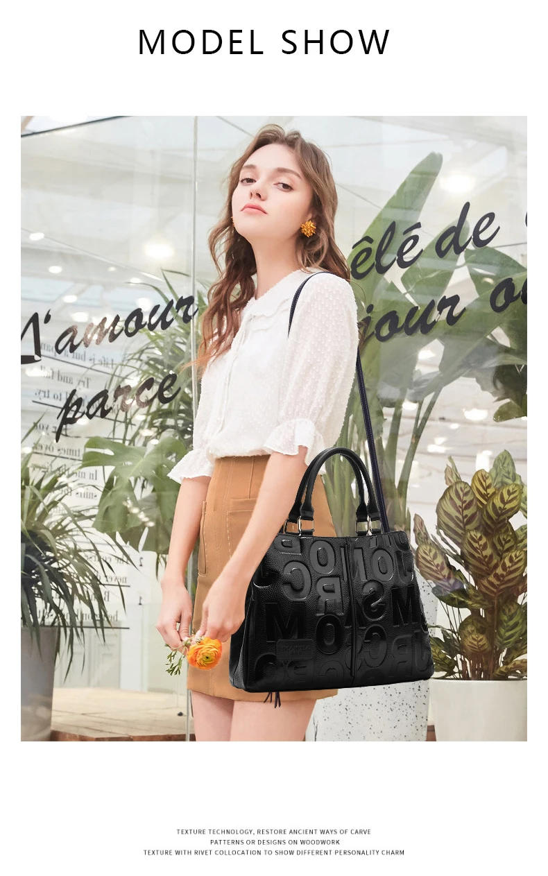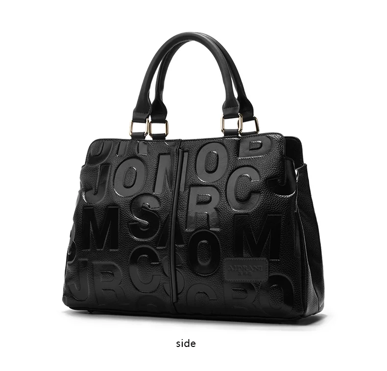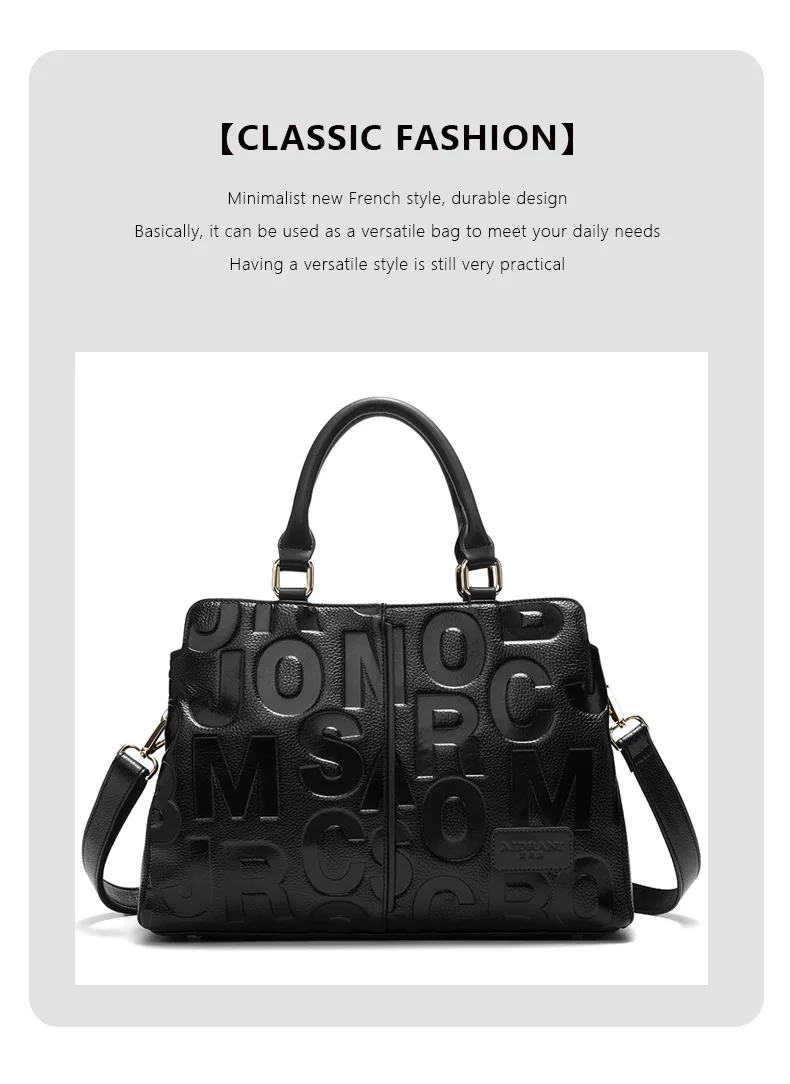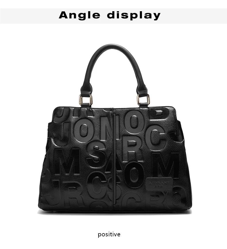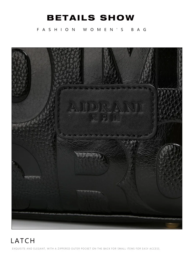 Aidrani letter printed genuine leather women's handbag with large capacity black cowhide single shoulder crossbody bag