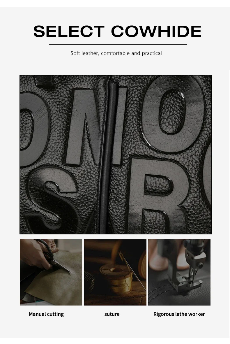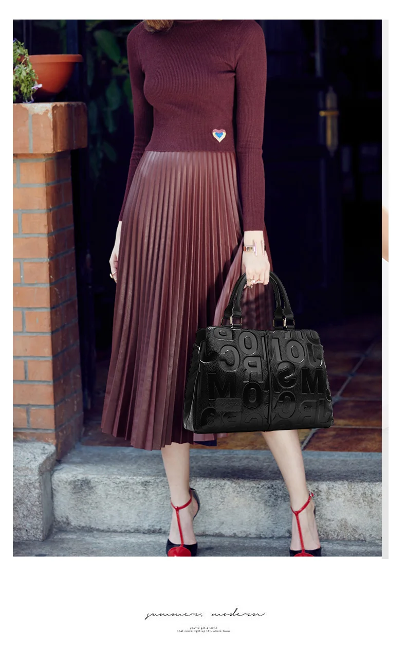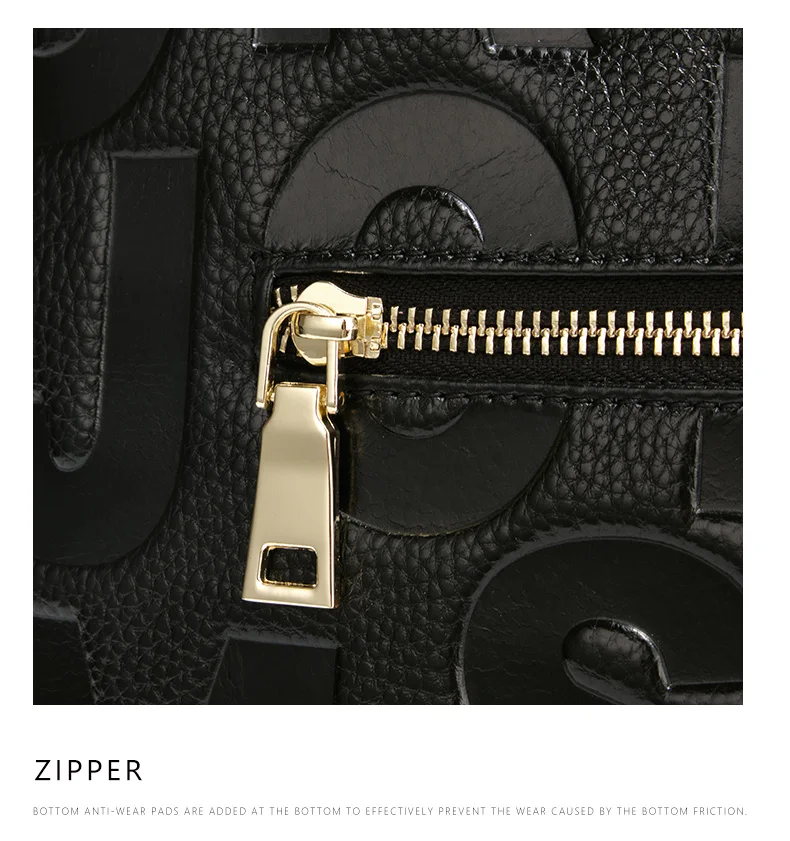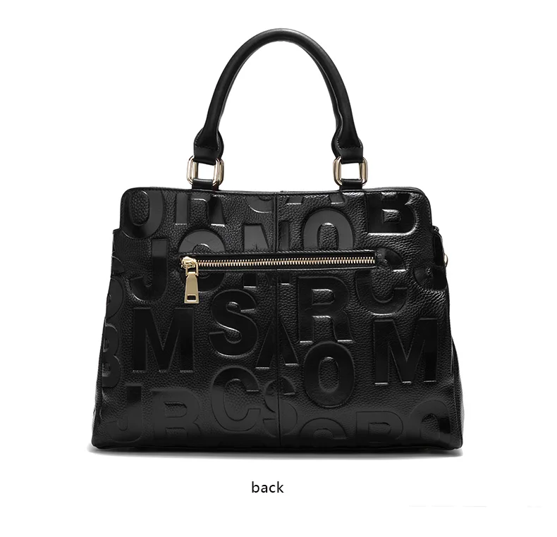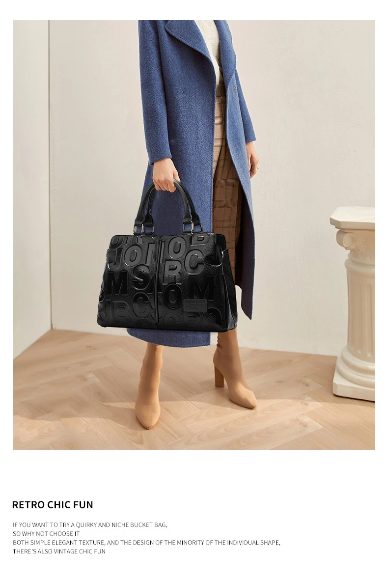 Aidrani letter printed genuine leather women's handbag with large capacity black cowhide single shoulder crossbody bag