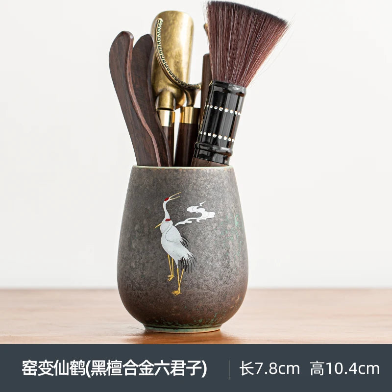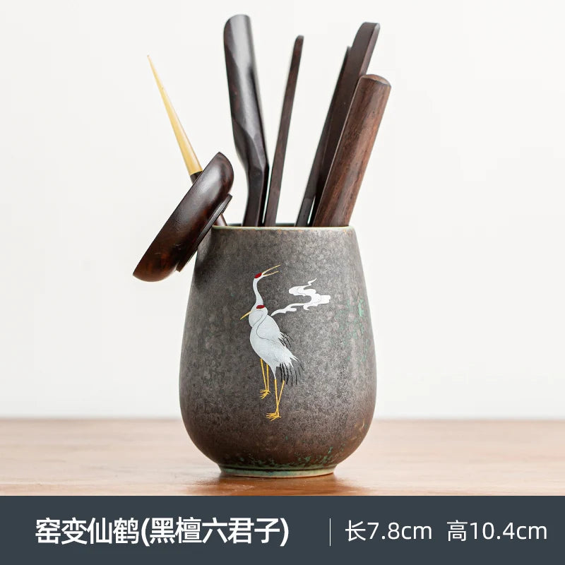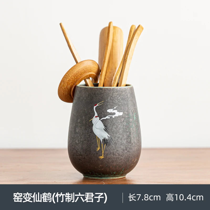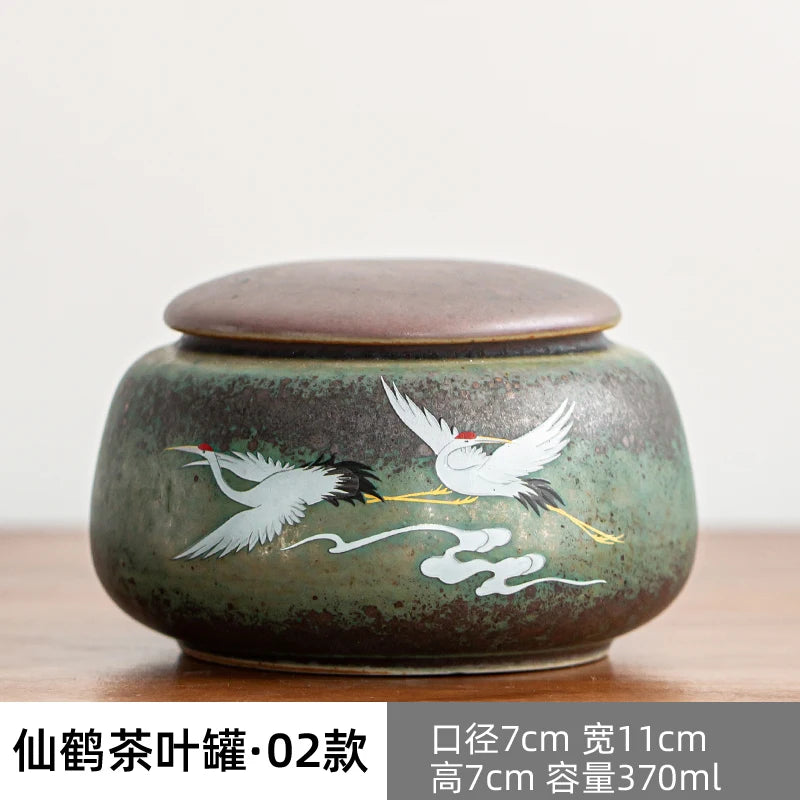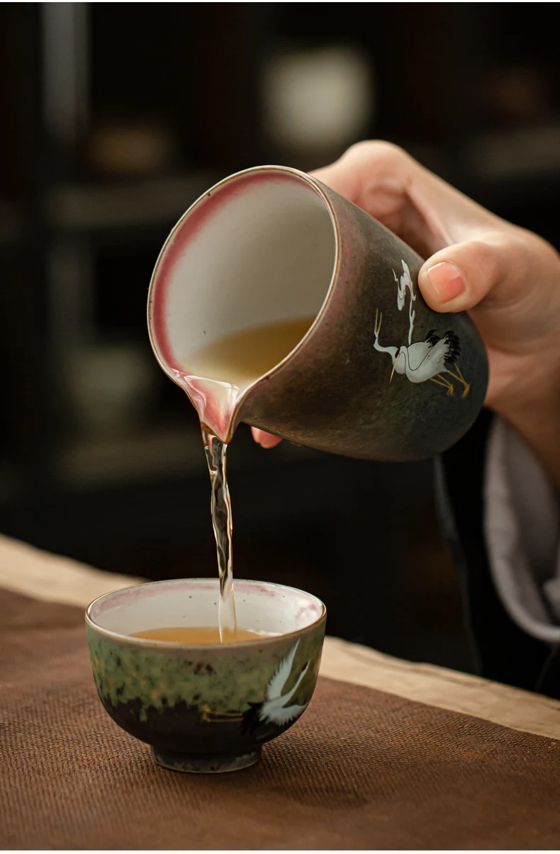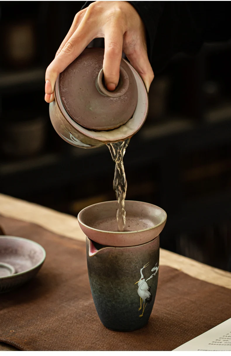 Anti-scald Large Ceramic Retro Tea Cover Bowl with Lid, Sancai Gaiwan Single Tea Bowl, Hand Painted Shining Crane Cover Bowl
