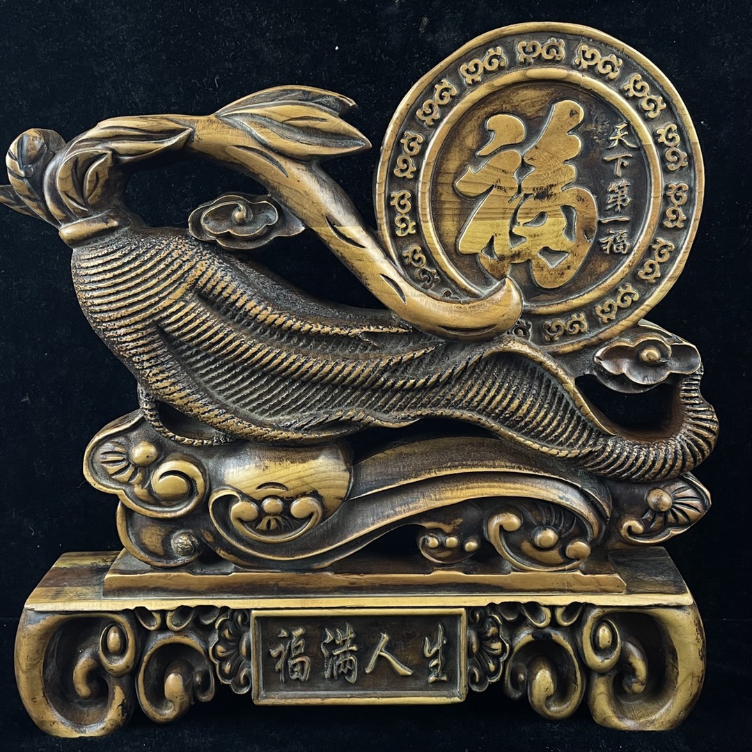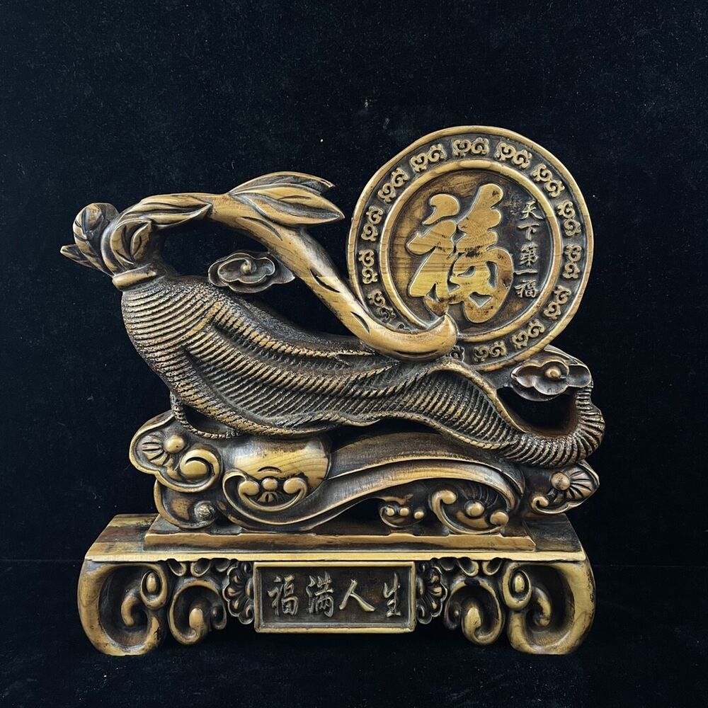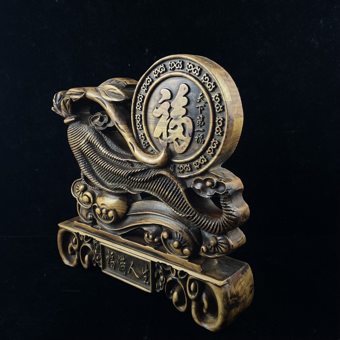 antique wood carved figures Wooden Statue Carvings Gifts home decor fu Ginseng Size: (12x11.4x2.16) "inch= 300X290X55 mm