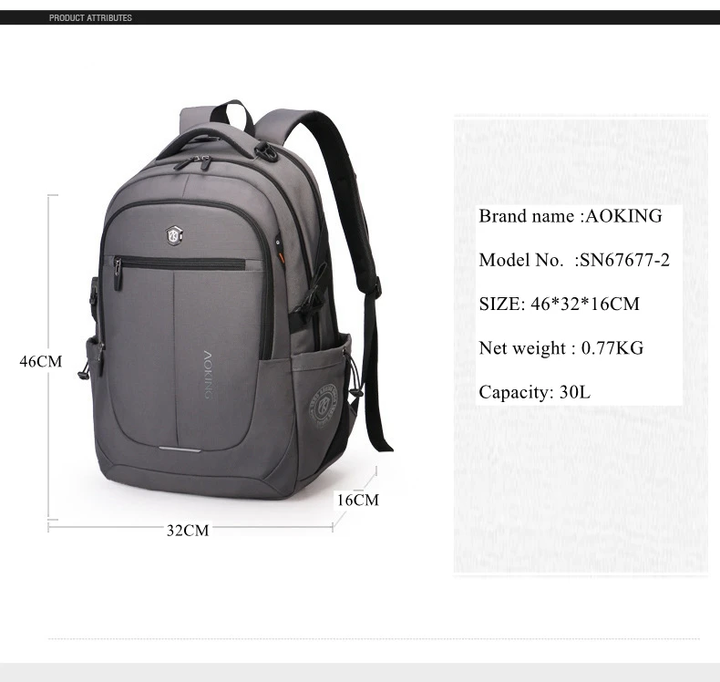 Aoking School backpack bag for Teenagers Travel Backpack USB Charging middle school Men Business Backpack 15.6 Inch Laptop Bag