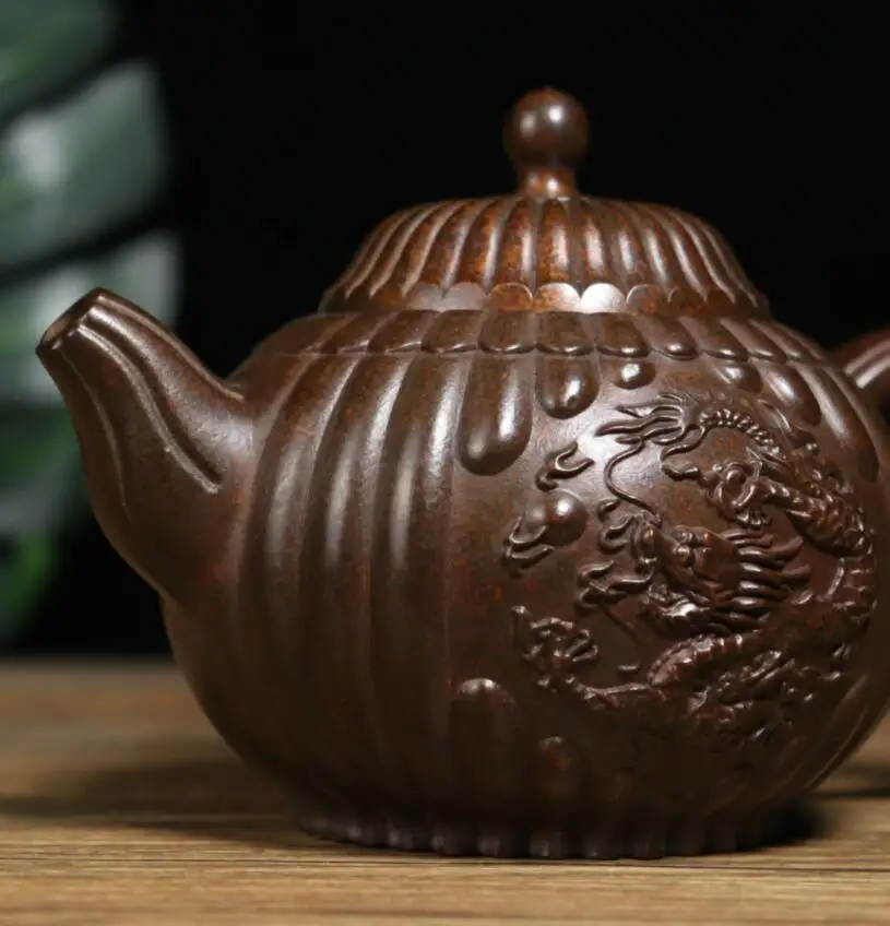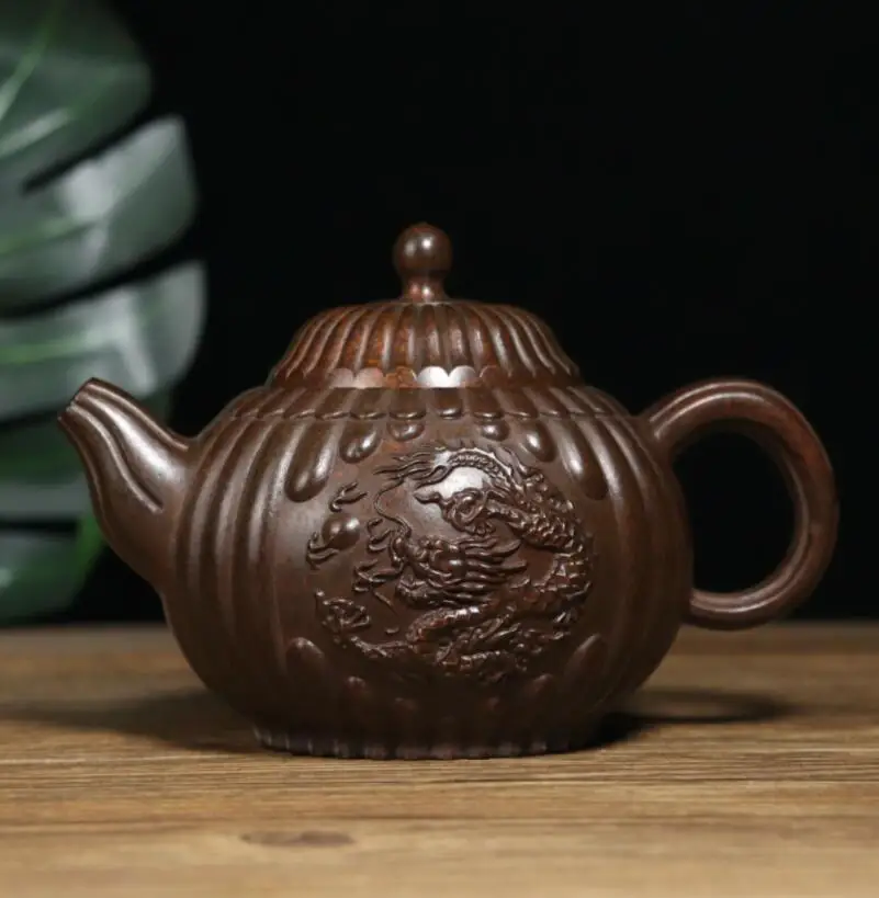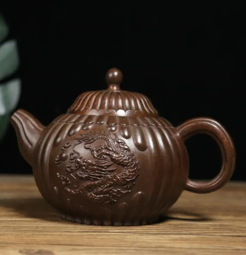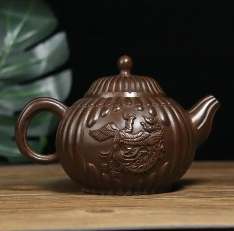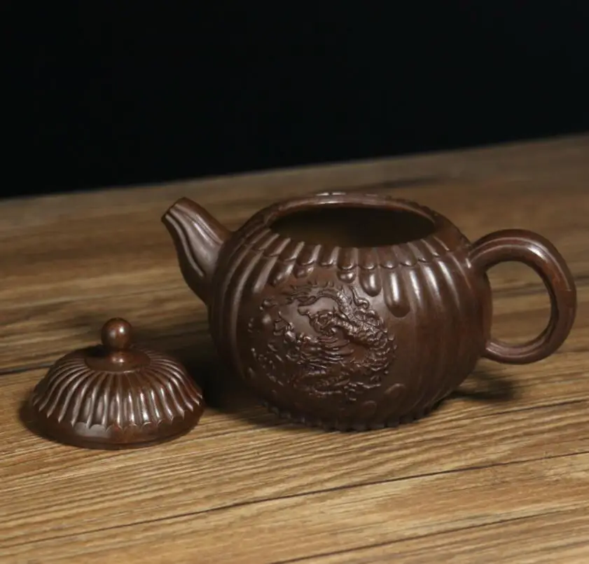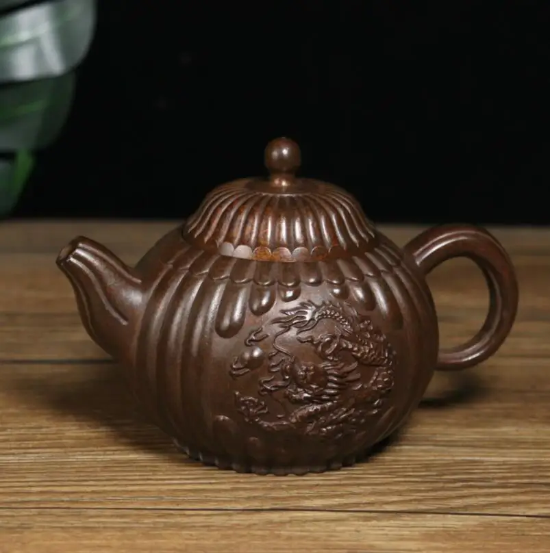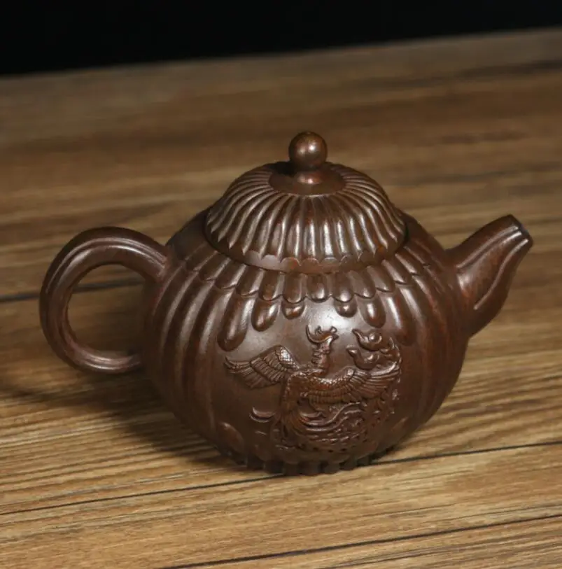 Archaize seiko brass pumpkin shape dragon phoenix teapot crafts statue