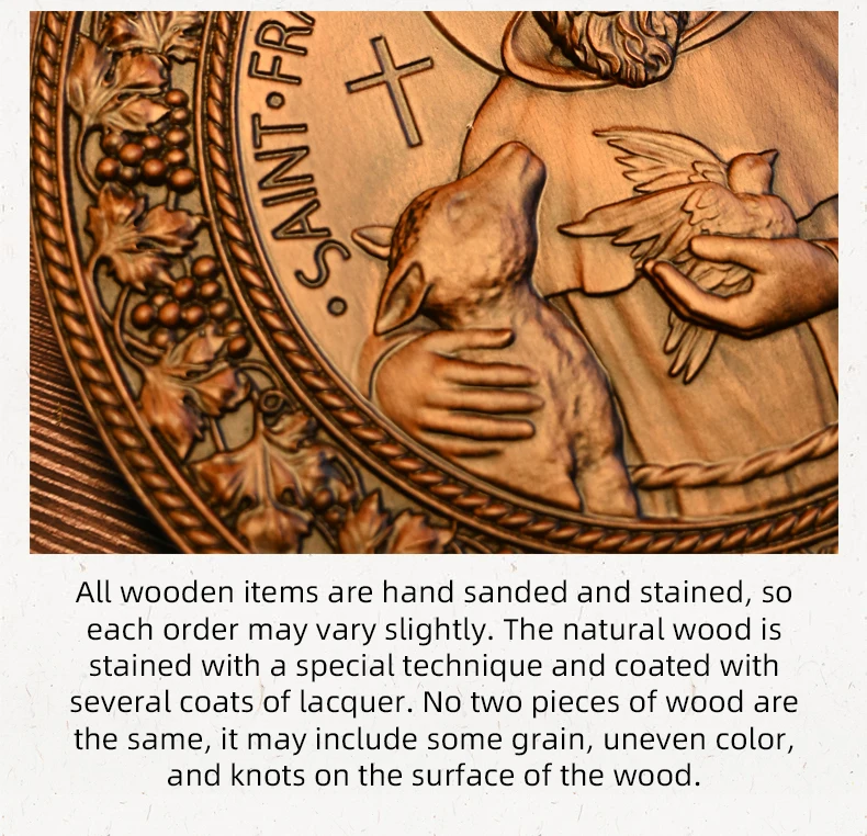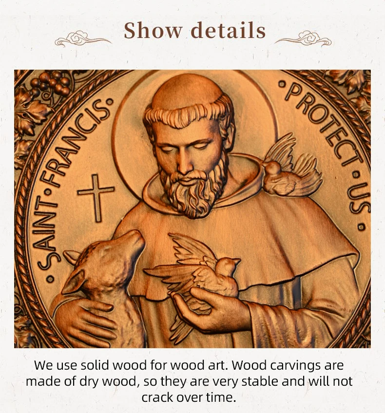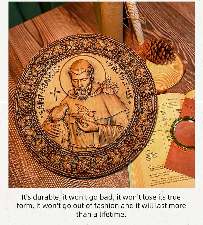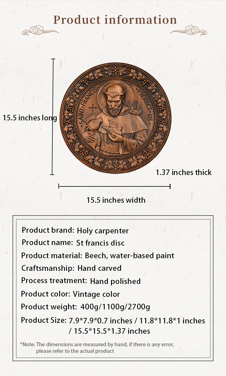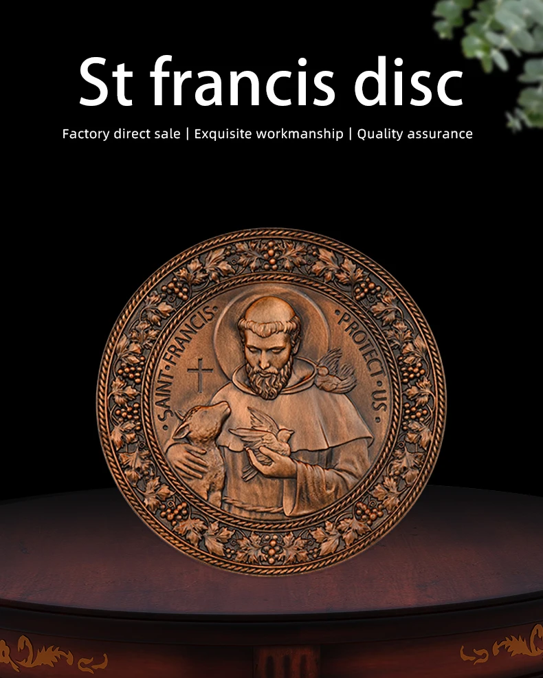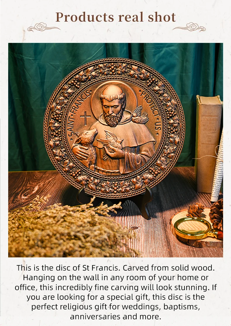 Assisi St. Francis Disc Religious Icon Wooden Craft Christian Holy Statue Ornament Natural Solid Wood Wood Carving Free Shipping