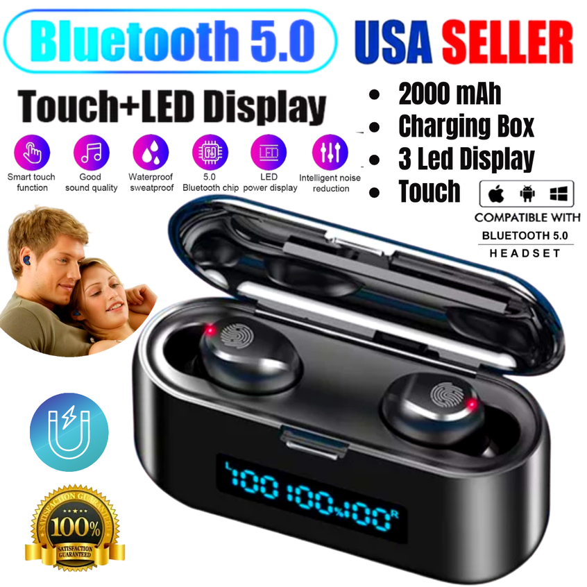 Comfort and Bluetooth Technology: True wireless earbuds with Bluetooth 5.0 chip, faster transmission, and more stable signal. Each sport headphones have a built-in microphone that allows you to enjoy hands-free calling and voice assistants. 3 Different sized ear tips make you more comfortable to wear. One Step Pair: No need to press any button, this TWS headphone is automatically turned on and paired after being removed from the charging box; When you put it back the charging box, it will automatically turn off and start charging. Noise Reduction: CVC8.0 intelligent noise reduction technology enables you to enjoy HiFi sound effect music or have HD phone talking. LED Power Display: 1200mah Large capacity magnetic induction charging case. The charging case can be used as a phone holder, liberate your hands while watching TV; It can also be used to charge for mobile phones, no need to worry about cell phone lack of power. Low power consumption, long battery life, long standby time is available after fully charged. How to Use: Take out and auto startup, connect to Bluetooth devices, more convenient to use. The earbuds can be used separately or together, you can choose the modes you like. Other Functions: The earbuds could be used to answer/reject calling, skip/play/pause songs, and activate voice assistants, such as Siri and android voice assistant. With intelligent voice reminders, helping you to know the real-time status of your headset. Life grade waterproof level, no need to worry about getting wet by rain and sweat. Small Design: Small and Mini size design, it can even hide in your ears. Specification Type Headset Color Black Bluetooth Version Bluetooth 5.0 Transmission Distance 10 meters (33 feet) Bluetooth Protocol HFP/HSP/A2DP/AVRCP Frequency Range 2042MHZ-2480MHZ Waterproof Level Life waterproof Music Time (Single Use) 3-4 hours Call Time (Single Use) 3-4 hours Standby Time (with the Charging Case) About 650 hours Earbuds Battery Capacity 50mAh Charging Case Battery Capacity 1200mAh Charging Time About 1-2 hours Working Temperature -10℃-55℃ Input Current 5V--1A Output Current 5V--1A Battery Type 3.7V Connection Method Single/double free to use Function Type Smart touch function Connectivity USB Microphone Type Built-In Number of Earpieces Double Wireless Technology Bluetooth Features Built-In, Built-in Microphone, Built-In On/Off Switch, Call functions, Extra Bass, HD Voice, Noise Cancellation, Noise Isolation, Rechargeable Battery, Replaceable Ear Tips, Stereo, Sweat Proof, Smart touch function, Volume Control, Waterproof, Charging Box, charging dock NOTE: Please if your team put it in binaural mode by accident please follow these steps to put it in normal mode again ] Usage of binaural pairing: 1. First delete the headset connection record in the bluetooth of the mobile phone, and then turn off the bluetooth of the mobile phone; 2. Press for about 6 seconds when the headset is off (red and blue lights flash) and let go; 3. Double-click the right earphone and wait for about 5 seconds (it will prompt to find the slave, and the left and right channels will be prompted if the pair is successful); 4. After successful pairing, the red and blue lights of the left earphone will flash, while the right earphone will not flash. At this time, you can turn on the bluetooth connection of the mobile phone. Package Includes 2 * Headset 1 * Charging Case 1 * USB Cable 1 * User Manual 6 * Earplugs Payment We accept payment by any of the following methods:
