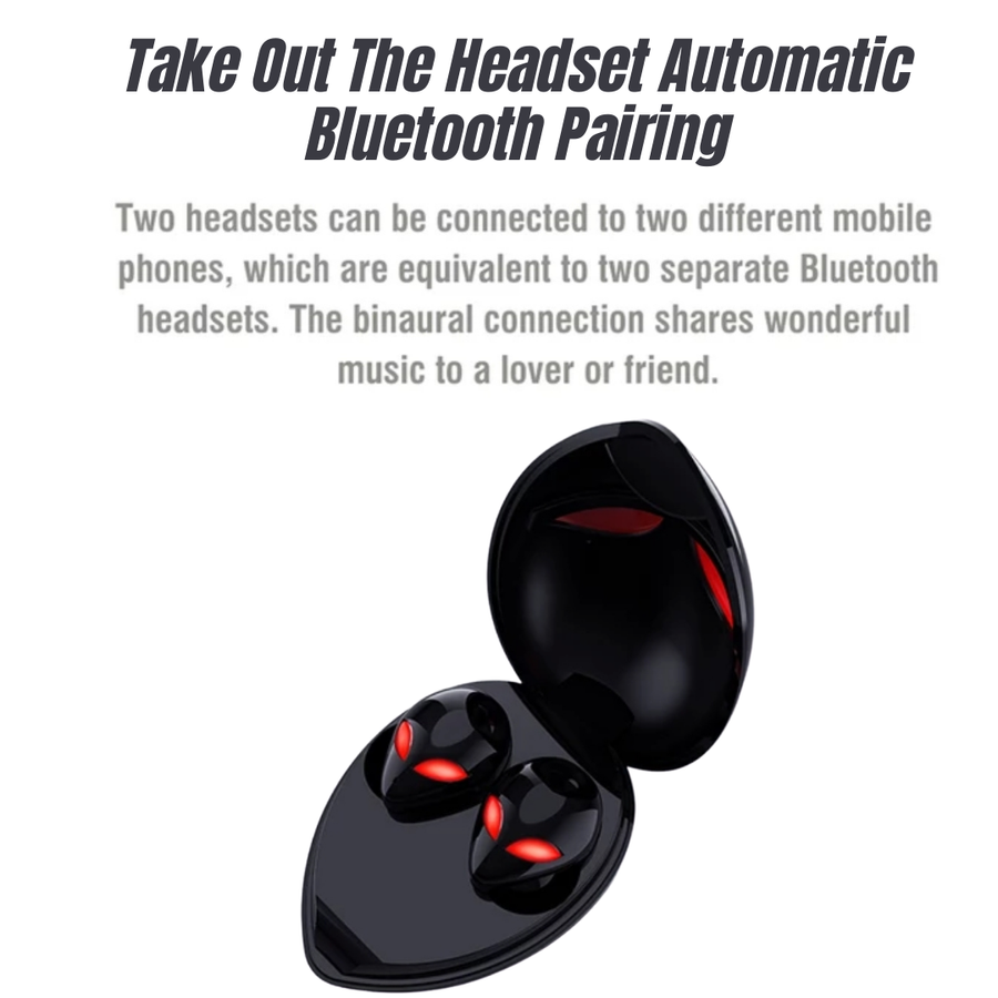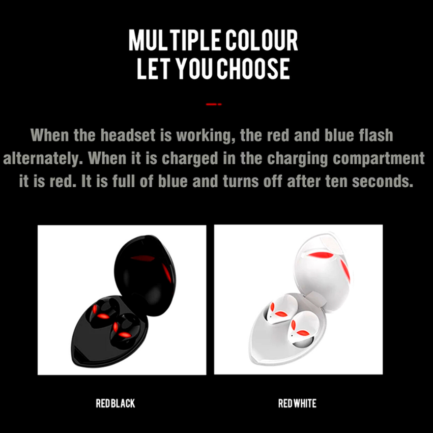 ALIEN BLUETOOTH HEADSET THIS IS THE ALIENS HEARING AIDS THE LAST SCREAM 2020 A PRIVATE MODEL IN BLACK AND WHITE COLOR WITH THE LATEST AUTOMATIC SYNCHRONIZATION TECHNOLOGY AUTOPAIRING AND A DEEP BASS SOUND WITH A SURROUNDING SOUND AND ITS INNOVATION IN THE DESIGN AND RED HANDLIGHTS WITH BLUE LIGHTS HAS A VERY GOOD QUALITY 6D CHIP OUR HIGH CAPACITY AND AUTHENTIC DOUBLE CHIP, ALSO HIGH FREQUENCY HIFI TECHNOLOGY AND GRAPHENE BASS DIAPHRAGM, 10mm SPEAKER UNIT, HAS 5.0 AUTOMATIC START-UP PAIRING, IC INTEGRATED ACTIVE NOISE REDUCTION AND HD CALLING, IT HAS WIRELESS CHARGING TECHNOLOGY. Wireless Bluetooth 5.0 Stereo Earphones Headphones Earbuds Headset In Ear How to connect twins earphones to bluetooth? Earphones will be connect automatically. Wireless Earbuds Parameter Bluetooth: V5.0 Transmission Range: 10m (free space) Earplug weight(each): 3g Charging box: 500mAh Frequency reponse: 20HZ-16kHz Signal to noise ratio: 295dB (A- Weigth) Battery capacity: Earplus weight (each) 55mAh Battery charging time: Earphone 90 minutes, Charging box 3 hours Battery use time: About 4-5 hours of music time / Or 4-5 hours phone call Support audio codec: A2DP/AVRCP/HFP/HSP Bluetooth earbuds Features 1. Real wireless Earplug, get rid of all wired control, smart connections or using separately 2. High defination isolation and noise reduction, piston type, noise cancelling. 3. The rechargeble house can be supplied to two earphones for 5 cycle recharge 4. Earphones are full of eletricity, which can support up to 2-3 hours of telephone or music playback time. 5. Pure high quality sound for compatible devices by equipping with bluetooth 5.0 chip and stable bluetooth signal. 6. You can play any audio files of the paired bluetooth device. 7. Built-in microphone hands-free phone 8. antiperspirant 9. Comfortabie and lightweight in ear design. 10. The Earplug charge with light ice blue color, but the color of the headset have little difference, it is normal phenomenon, please don’t worry. 11. Our earphone have paired by us, so you don’t need to paring them agian. Please charging them fully after received our earphone at first. 12. Competible model: Any device with Bluetooth function. Such as Mobile phone: iPhone 6 6S 7 7S 8 X XS MAX XR Samsung Huawei Xiaomi Android, laptops: Mac, Asus, HP, etc... Package Included: 1 x user manual 1 x charging box 1 pair x bluetooth headsets 1 x Cable USB Type C 1x Rope All of our products are tested by our technician before being packed with safety measures and gloves. We also have the 30-day warranty and free returns setup! Any problem contact us and we will help you !! We have replacement and money-back guarantees after receiving any product with a complaint, but we check it very well before making all our packages to guarantee you have a good shopping experience! FREE SHIPPING THANK YOU! ️️️ Spanish: ESTOS SON LOS AUDÍFONOS ALIENS THE LAST SCREAM 2020 UN MODELO PRIVADO EN COLOR BLANCO Y NEGRO CON LA ÚLTIMA TECNOLOGÍA DE SINCRONIZACIÓN AUTOMÁTICA AUTOPAIRING Y UN SONIDO BAJO PROFUNDO CON UN SONIDO ENVOLVENTE Y SU INNOVACIÓN EN EL DISEÑO DE LUCES ROJAS Y LUCES AZULES TIENE UN CHIP DE CALIDAD 6D NUESTRO CHIP DE ALTA CAPACIDAD Y AUTÉNTICO DOBLE CHIP, TAMBIÉN TECNOLOGÍA HIFI DE ALTA FRECUENCIA Y DIAFRAGMA DE GRAFENO BASS, UNIDAD DE ALTAVOCES DE 10mm, TIENE ARRANQUE AUTOMÁTICO 5.0 EMPAREJAMIENTO, REDUCCIÓN DE RUIDO ACTIVO INTEGRADO IC Y LLAMADA HD, TIENE WIRELING DE CARGA. Auriculares estéreo inalámbricos Bluetooth 5.0 Auriculares Auriculares Auriculares en el oído ¿Cómo conectar auriculares gemelos a bluetooth? Los auriculares se conectarán automáticamente. Parámetro de auriculares inalámbricos Bluetooth: Transmisión V5.0 Alcance: 10 m (espacio libre) Peso del tapón para los oídos (cada uno): 3 g Caja de carga: 500 mAh Respuesta de frecuencia: 20 HZ-16 kHz Relación señal / ruido: 295dB (A- Peso) Capacidad de la batería: Earplus peso (cada uno) 55mAh Tiempo de carga de la batería: auricular 90 minutos, caja de carga 3 horas Tiempo de uso de la batería: aproximadamente 4-5 horas de tiempo de música / o 4-5 horas de llamada telefónica Admite códec de audio: A2DP / AVRCP / HFP / HSP Características de los auriculares Bluetooth 1. Tapón para los oídos inalámbrico real, deshacerse de todos los controles por cable, conexiones inteligentes o usar por separado 2. Aislamiento de alta definición y reducción de ruido, tipo pistón, cancelación de ruido. 3. La casa recargable se puede suministrar a dos auriculares para recarga de 5 ciclos 4. Los auriculares están llenos de electricidad, que pueden soportar hasta 2-3 horas de tiempo de reproducción de música o teléfono. 5. Sonido puro de alta calidad para dispositivos compatibles al equipar con chip bluetooth 5.0 y señal bluetooth estable. 6. Puede reproducir cualquier archivo de audio del dispositivo bluetooth emparejado. 7. Teléfono manos libres con micrófono incorporado 8. antitranspirante 9. Diseño cómodo y ligero en la oreja. 10. El tapón para los oídos se carga con un color azul hielo claro, pero el color de los auriculares tiene poca diferencia, es un fenómeno normal, no se preocupe. 11. Hemos emparejado nuestros auriculares, por lo que no es necesario que los vuelva a emparejar. Cárguelos completamente después de recibir nuestros auriculares al principio. 12. Modelo competitivo: cualquier dispositivo con función Bluetooth. Como teléfono móvil: iPhone 6 6S 7 7S 8 X XS MAX XR Samsung Huawei Xiaomi Android, computadoras portátiles: Mac, Asus, HP, etc. Paquete incluido: 1 x manual de usuario 1 x caja de carga 1 par x auriculares bluetooth 1 x cable USB tipo C 1x cuerda Todos nuestros productos son probados por nuestro técnico antes de ser empacados con medidas de seguridad y guantes. ¡También tenemos la garantía de 30 días y la configuración de devoluciones gratuitas! Cualquier problema contacta con nosotros y te ayudaremos !! Tenemos garantías de reposición y devolución de d