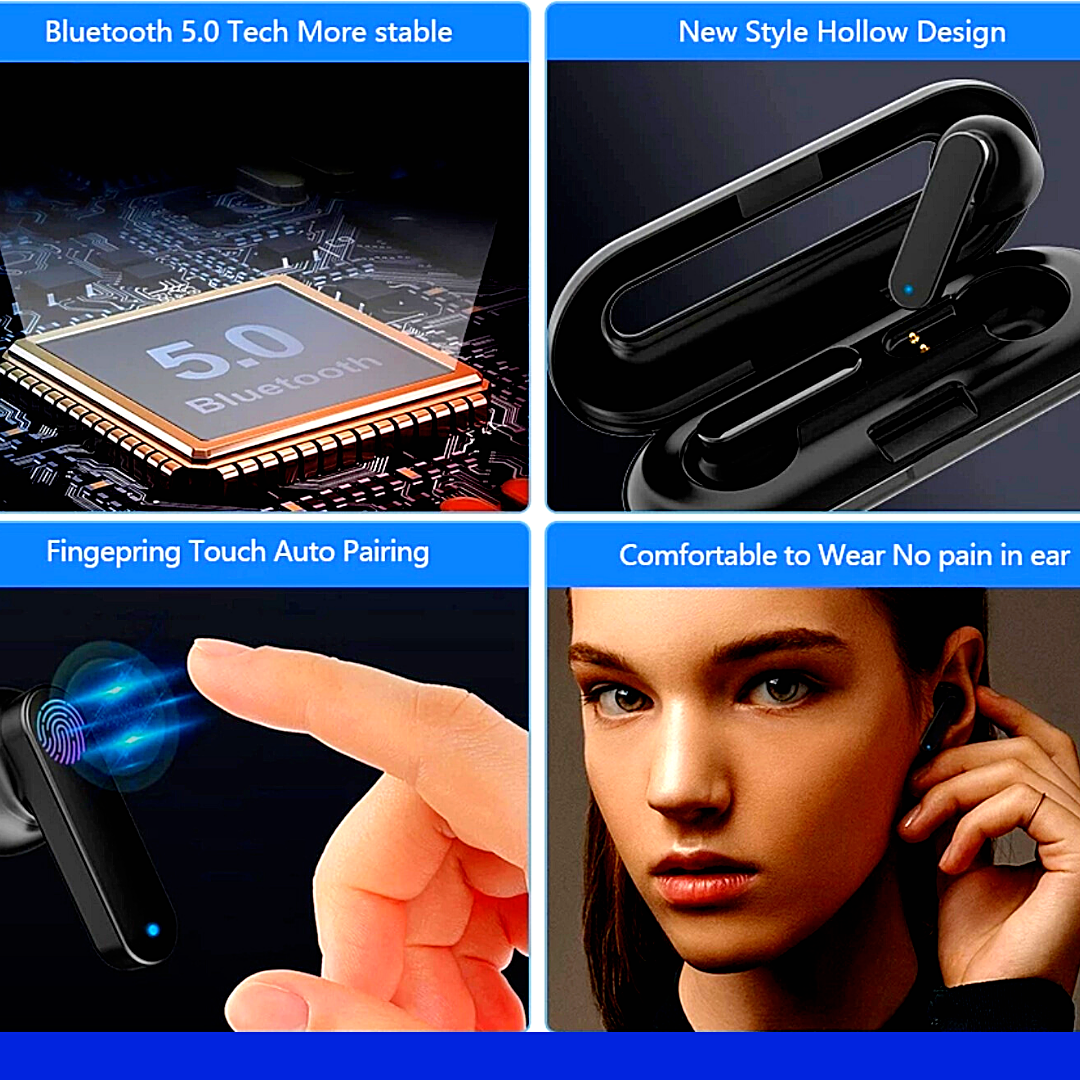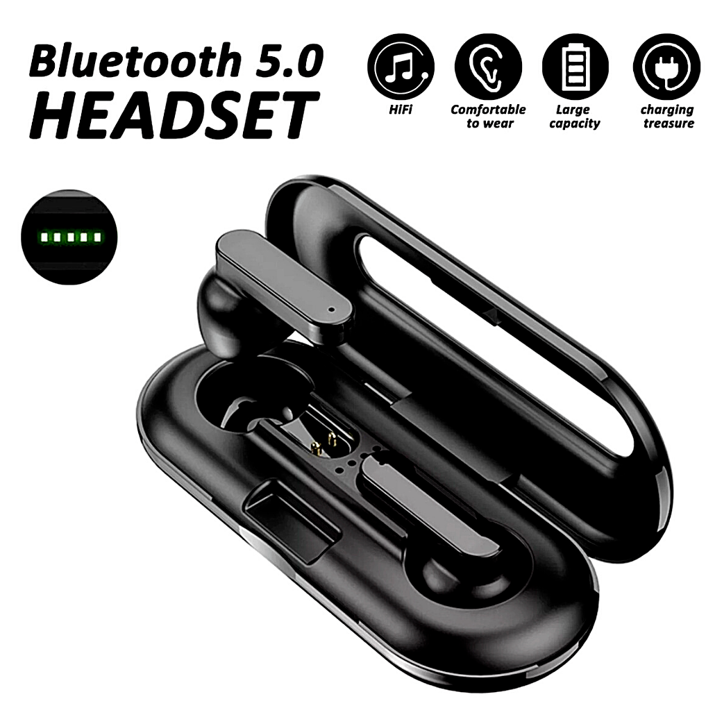 Características: - Función táctil inteligente y pantalla LED de potencia. - Auriculares inalámbricos verdaderos con chip Bluetooth 5.0, transmisión más rápida y señal más estable. - Con la tecnología de reducción de ruido inteligente CVC8.0, puede disfrutar de música con efectos de sonido de alta fidelidad o tener un teléfono HD hablando incluso en un entorno ruidoso. - La voz se podía escuchar en ambos lados de los auriculares, mientras que solo se podía escuchar un lado de los auriculares Bluetooth 4.1 / 4.2. - El estuche de carga se puede usar como soporte para teléfono, libere sus manos mientras mira televisión; También se puede utilizar para cargar teléfonos móviles, sin necesidad de preocuparse por la falta de energía del teléfono móvil. - 2000mah Estuche de carga por inducción magnética de gran capacidad. - Bajo consumo de energía, batería de larga duración, tiempo de espera prolongado disponible después de la carga completa. - Take out and auto start up, connect to Bluetooth devices, more convenient to use. - The earbuds can be used separately or together, you can choose the mode you like. - The earbuds could be used to answer/reject calling, skip/play/pause songs, and activate voice assistant, such as Siri and android voice assistant. With intelligent voice reminder, helping you to know the real-time status of your headset. - Life grade waterproof level, no need to worry about getting wet by rain and sweat. - Small and Mini size design, it can even hide in your ears. Specifications: Bluetooth Version: Bluetooth 5.0 Transmission Distance: 10 meters Bluetooth Protocol: HFP/HSP/A2DP/AVRCP Waterproof Level: IPX5 Auriculares Capacidad de la batería: 50 mAh Estuche de carga Capacidad de la batería: 2000 mAh Tiempo de carga: Aproximadamente 1-2 horas Método de conexión: simple / doble de uso gratuito Función: reproducción / pausa de música, reducción de ruido de respuesta de llamadas, pantalla de encendido de IOS, mensaje de voz Color: Negro paquete incluye: 2 buds(Lh&Rh) 1 x Estuche de carga 1 x Cable de carga 1 x Manual de usuario (solo negro) |