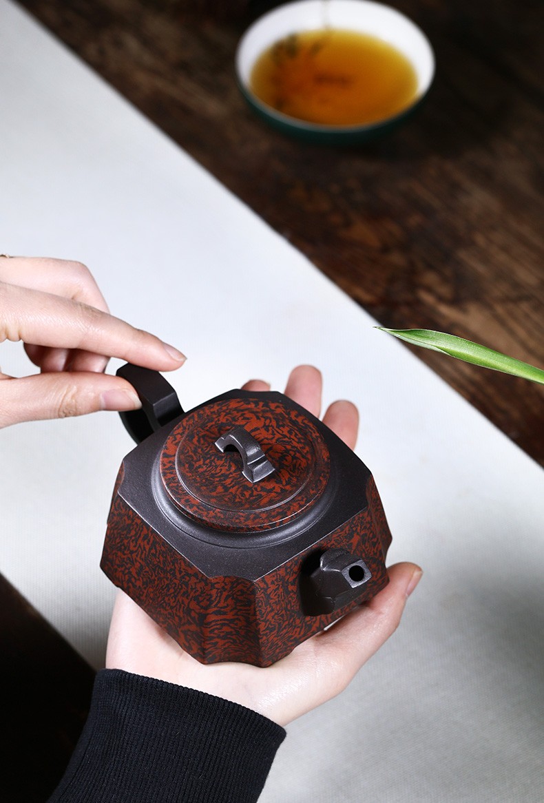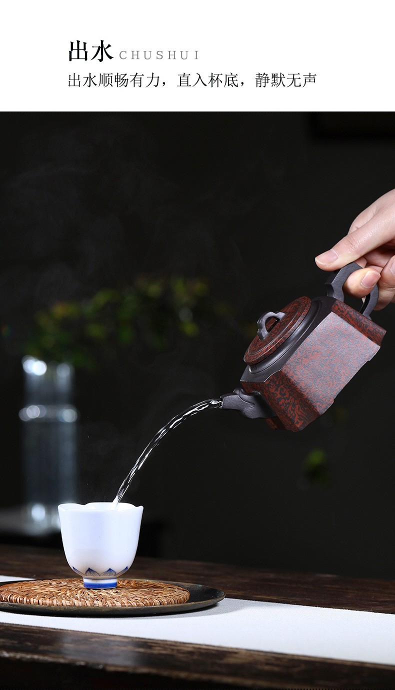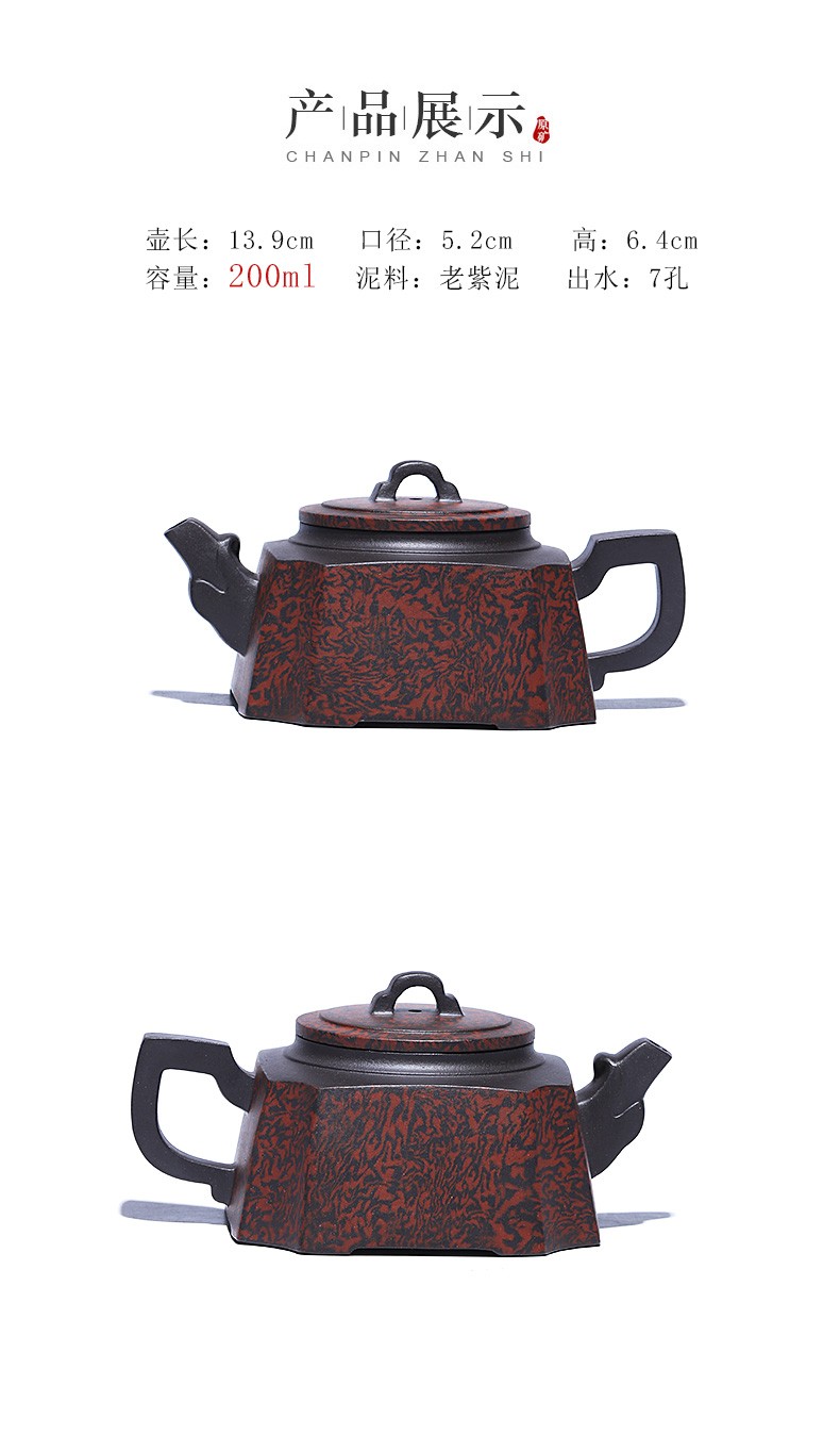 Authentic Yixing Purple Clay Pot Square Pot Longzun Crude Ore Old Purple Clay Twisted Clay Teapot Chinese Products Handmade Teap