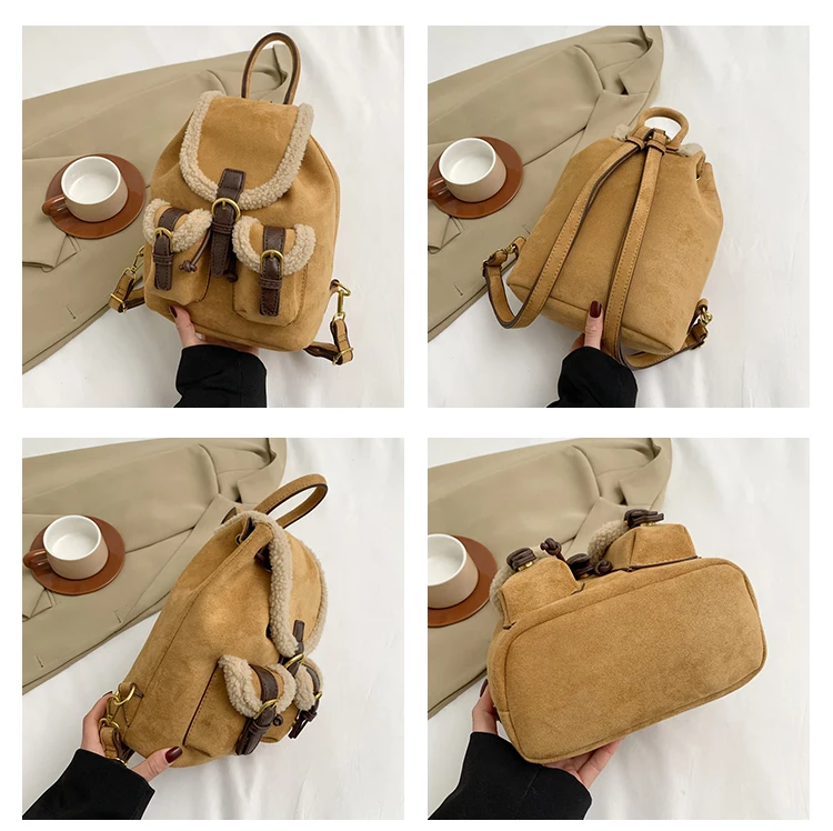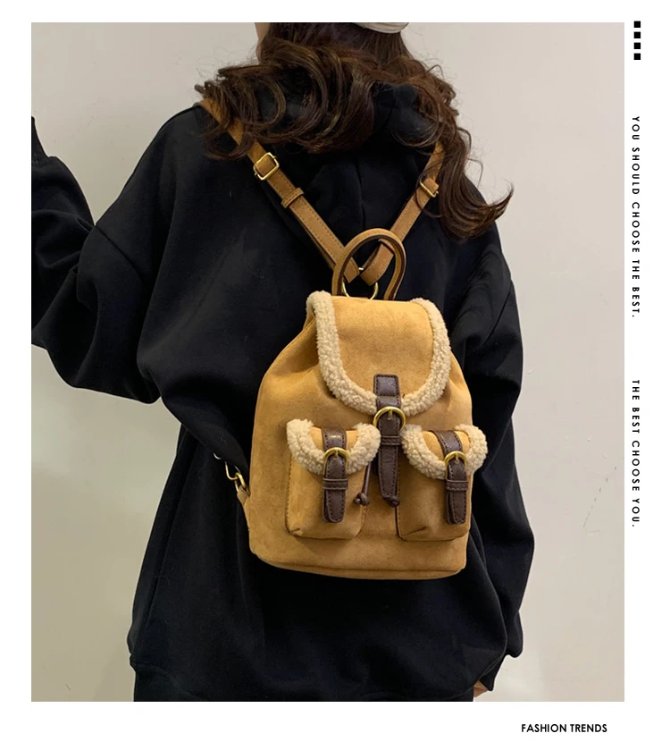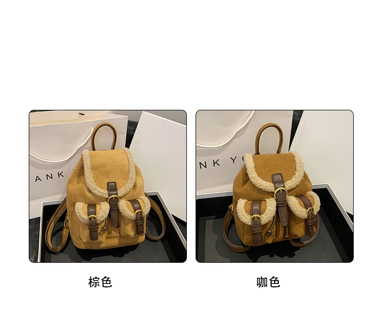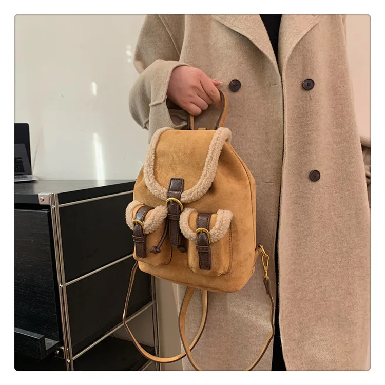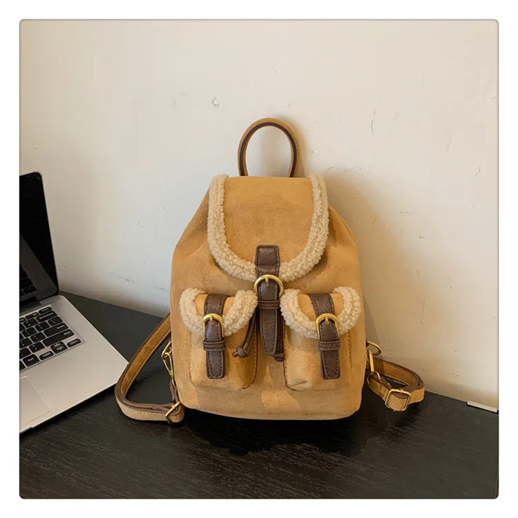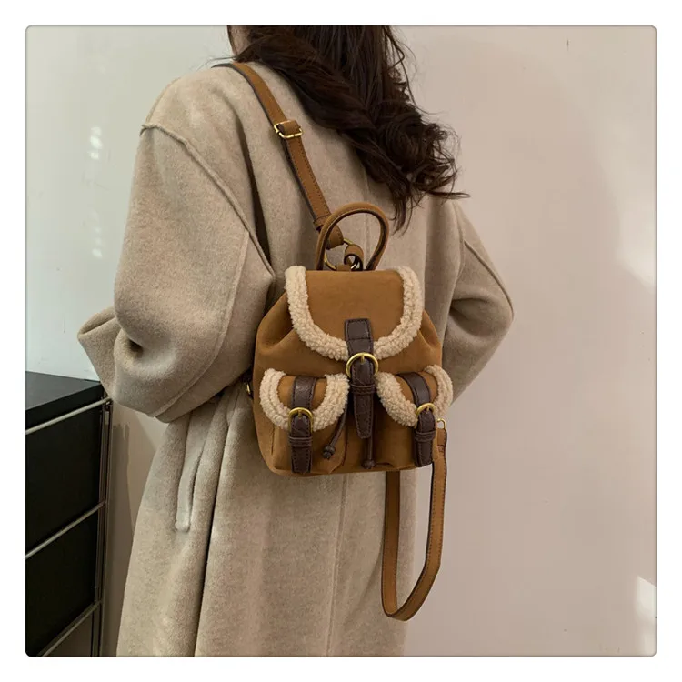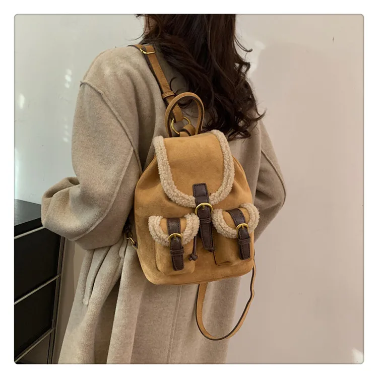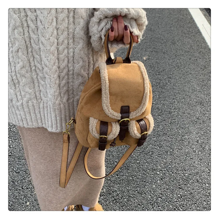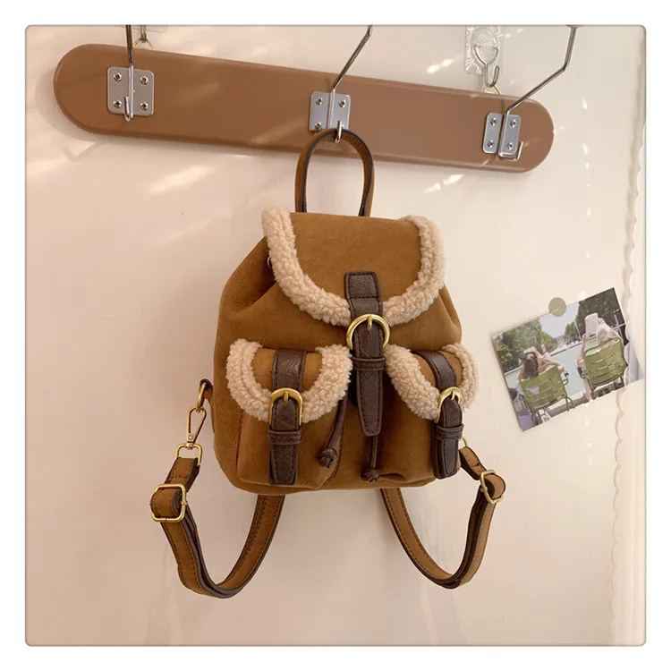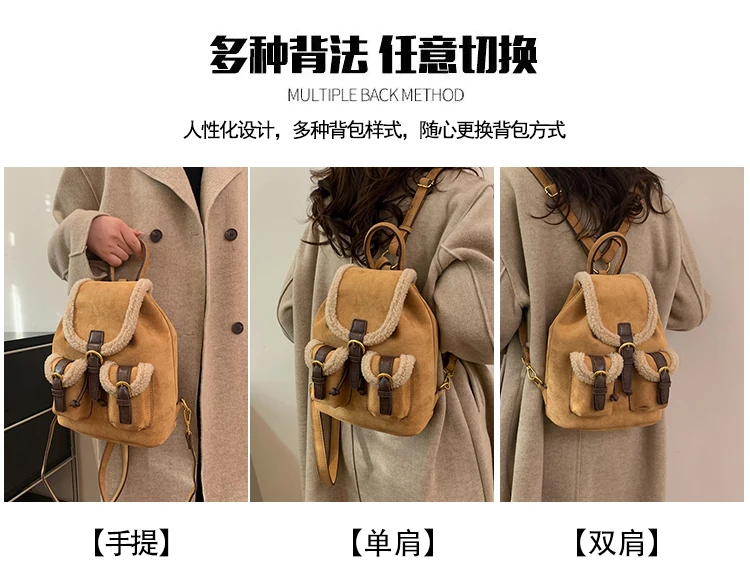 Backpacks For Women 2023 Autumn Winter Retro Design Frosted Fleece Backpack Good-looking Girl's Small Backpack Luxury Travel Bag