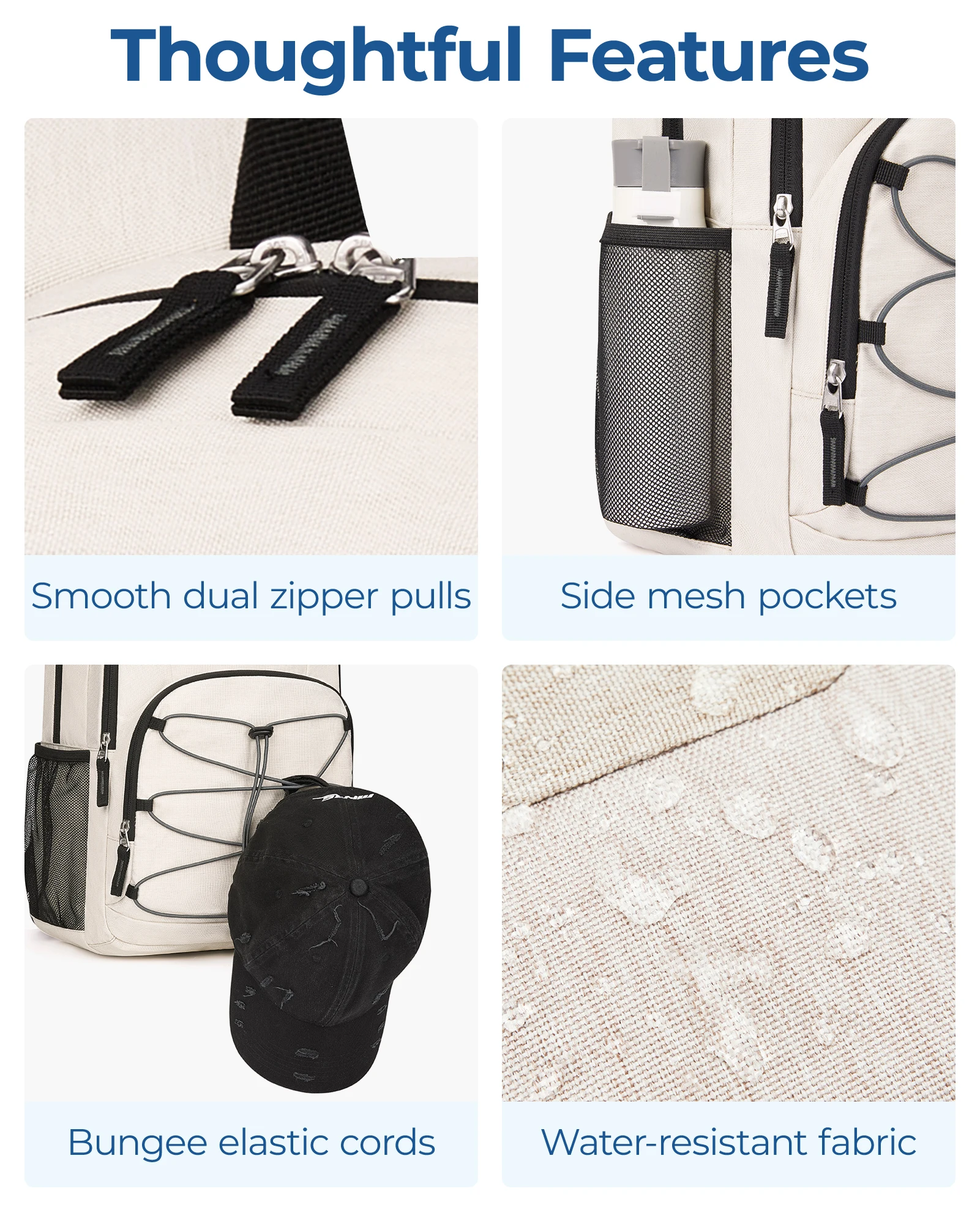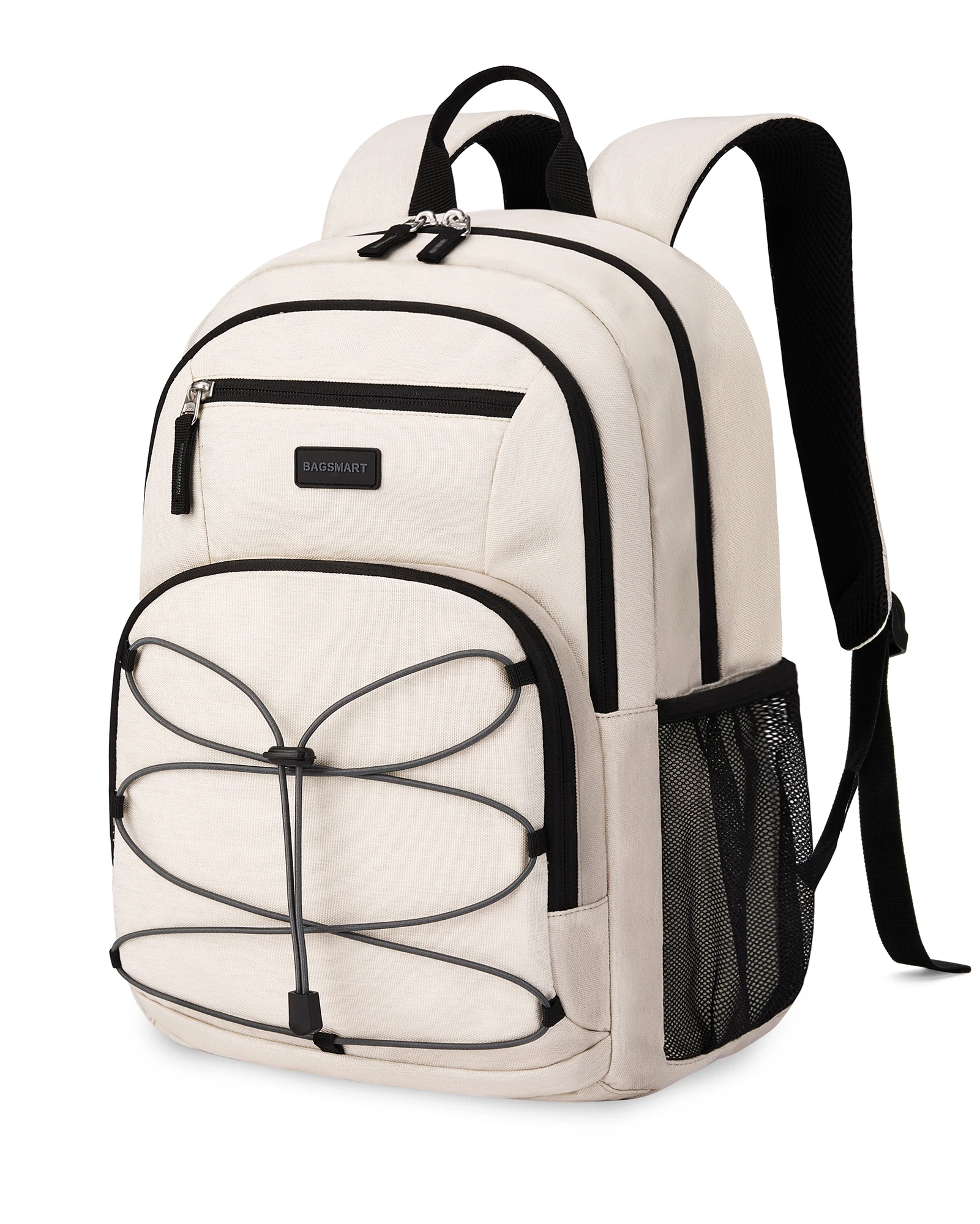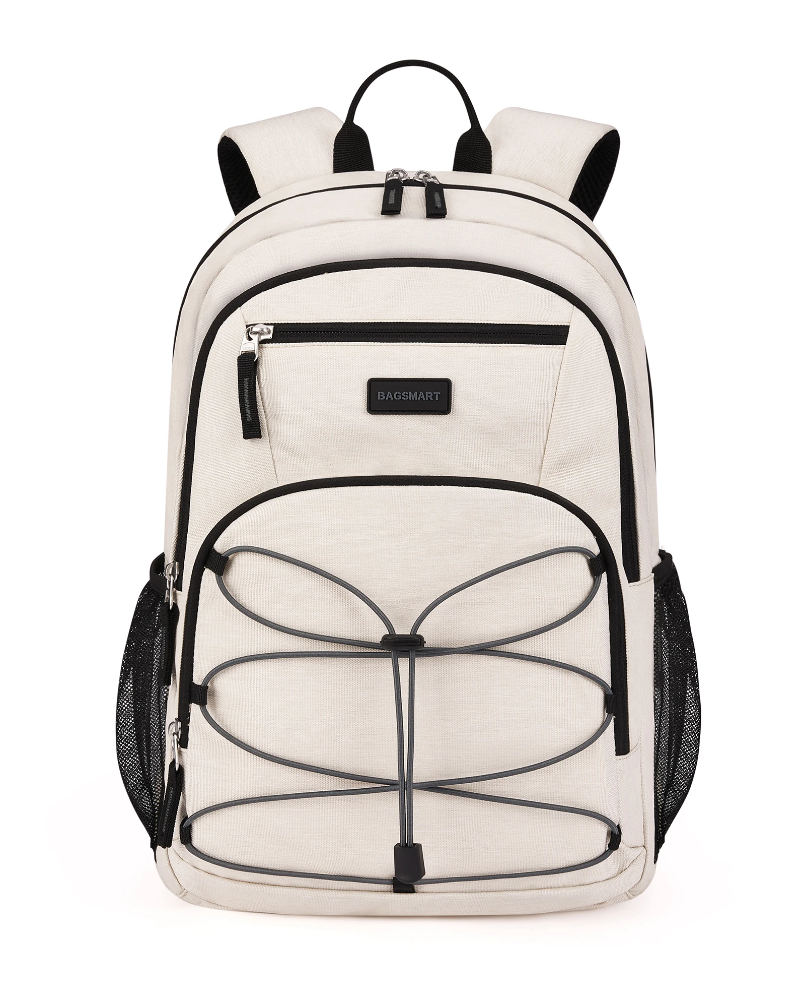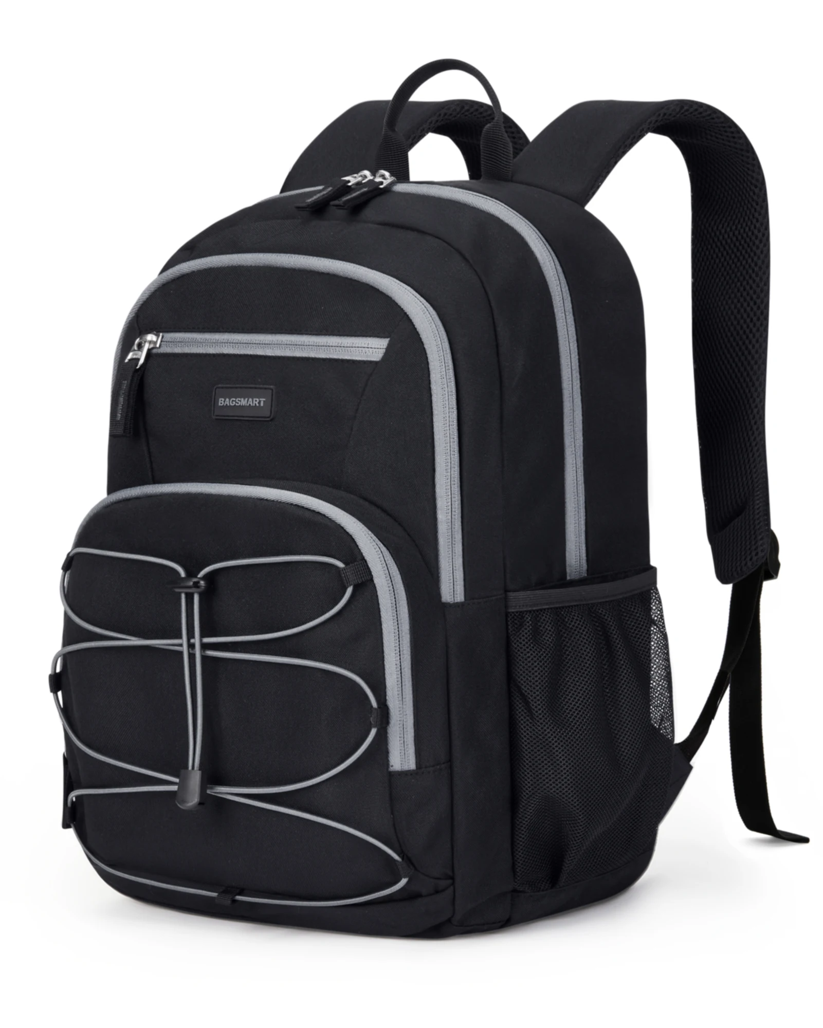 Keep It Organized: Experience smart packing solutions with the BAGSMART Travel Backpack's clever storage design. Featuring clothing compartments, PVC waterproof pockets, mesh pockets, and two sock pockets for separating wet and dry clothes. The bonus shoe bag with a customizable attachment point adds further convenience without occupying interior backpack space.