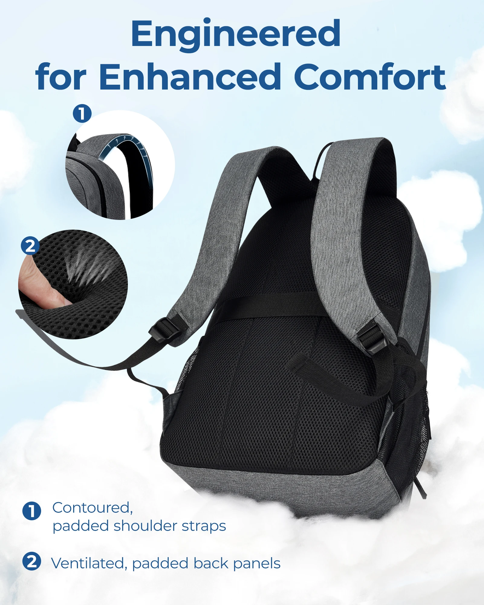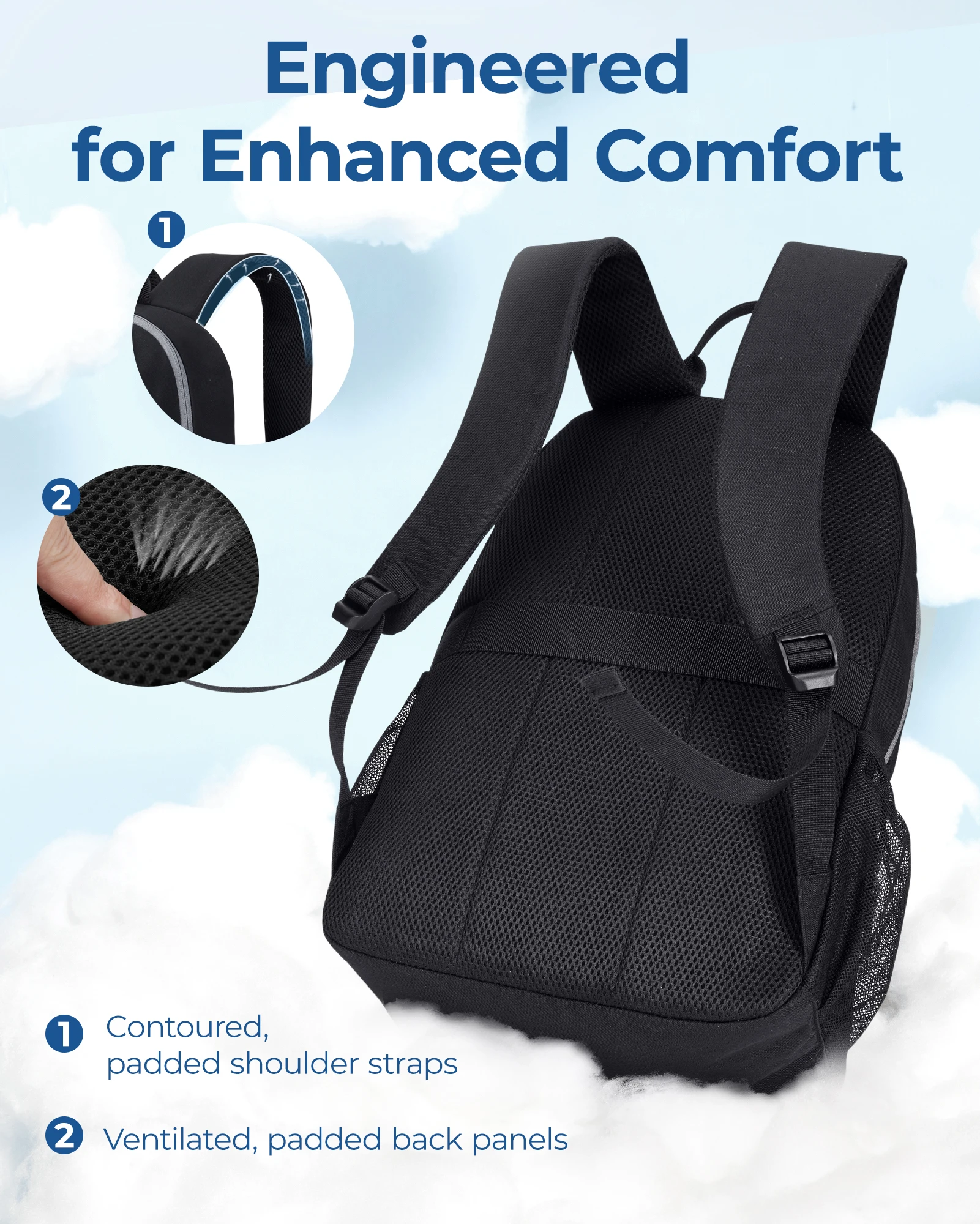 Comfort & Protection: Experience ultimate comfort with the Comfortable padded shoulder straps and Ventilated back panel of our backpack. The thick protective padding provides durability and protection for your belongings against unexpected impacts during your journeys.
