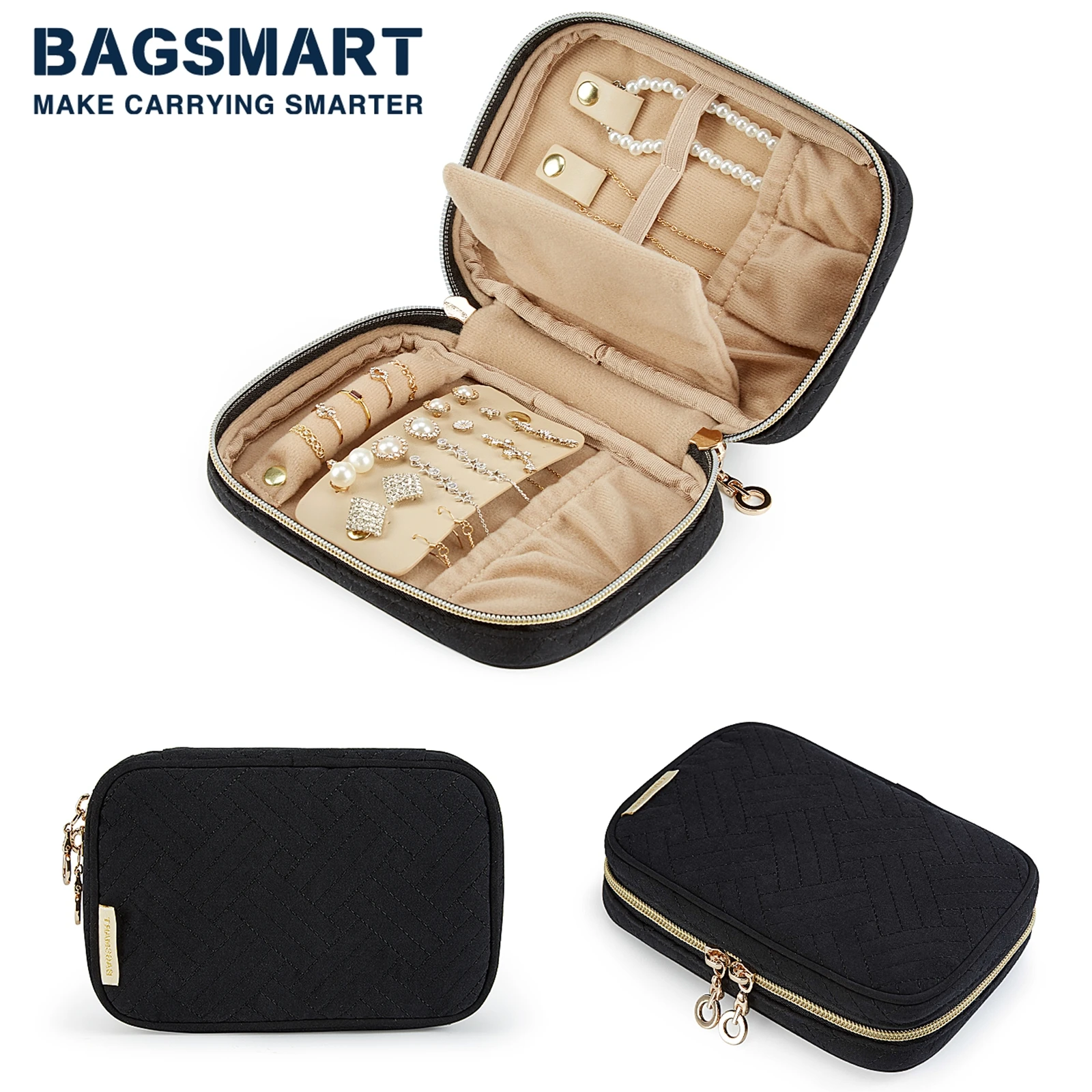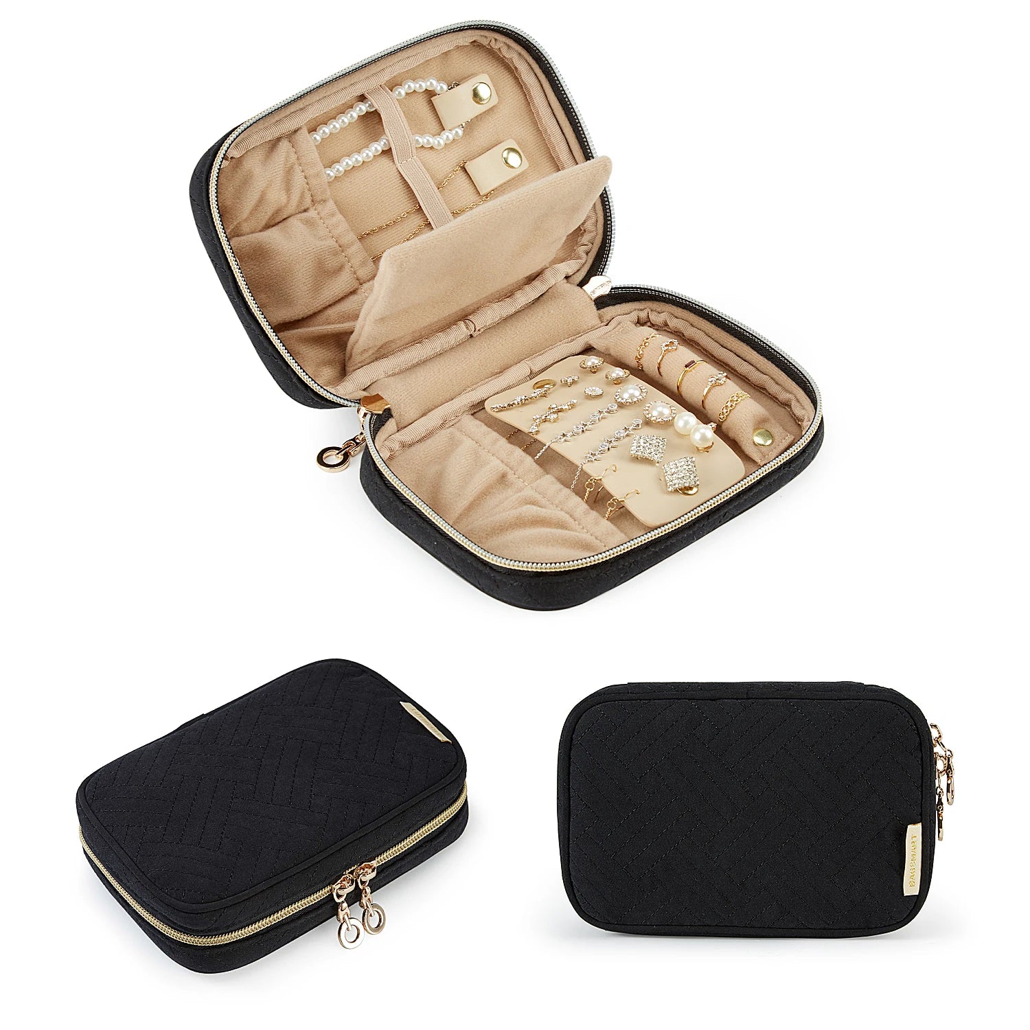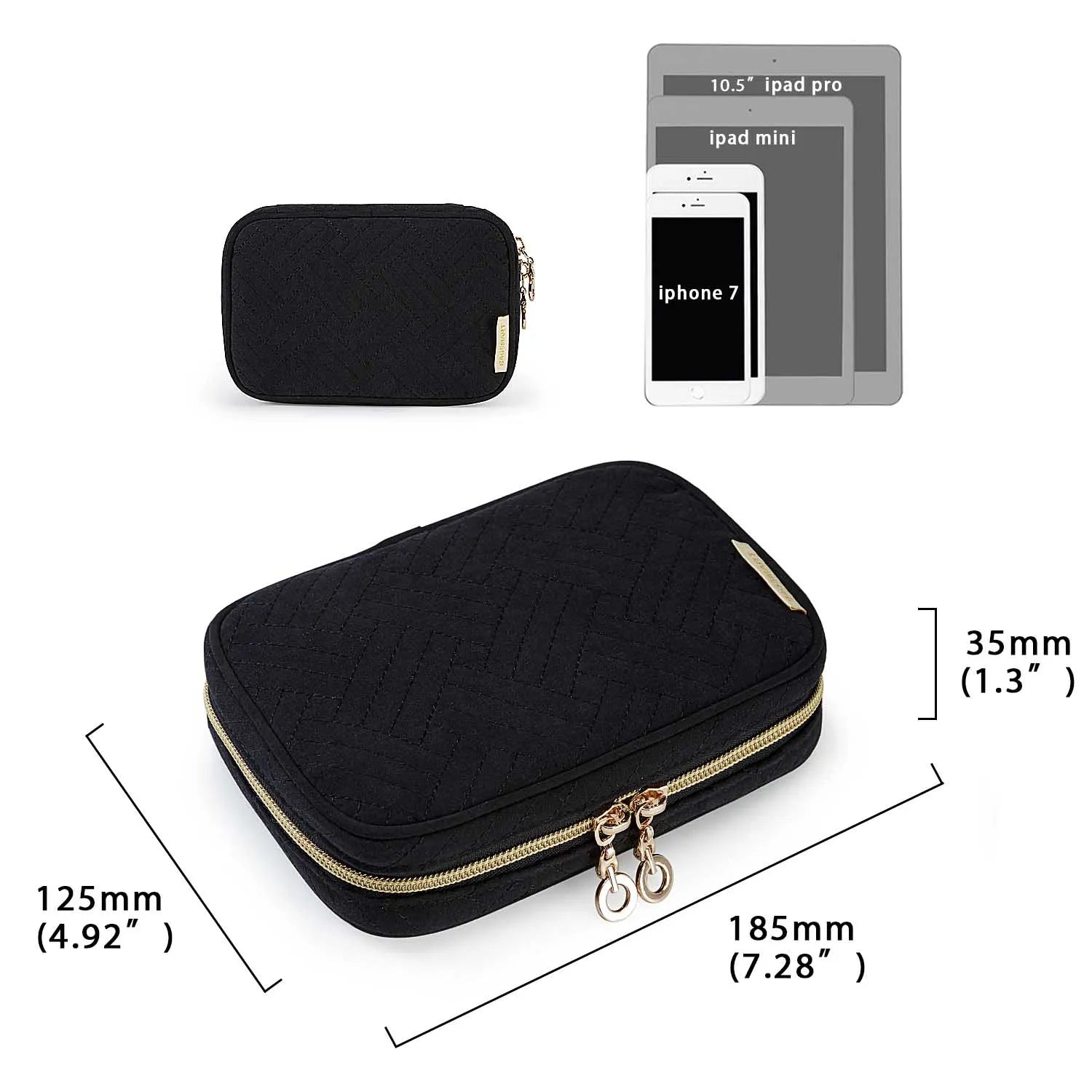 Supple Touch - Environmental polyester with quilted cotton, stitching pattern design, with inner soft suede and two-way zipper closure to keep your items safe and quick access