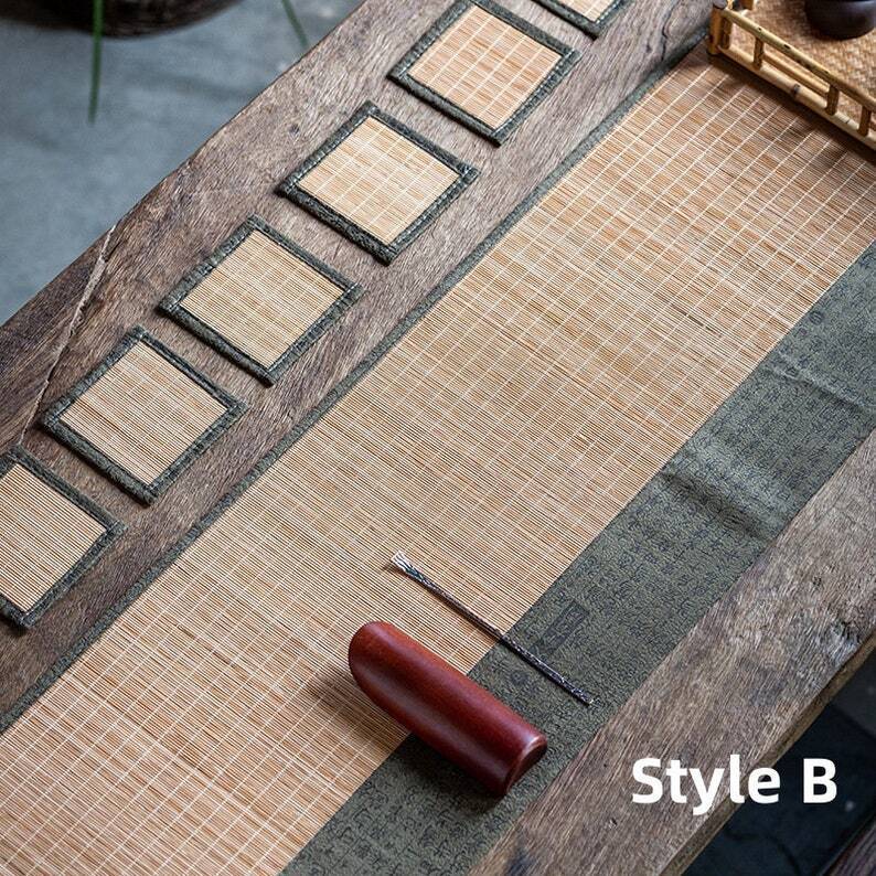 1.Newest Bamboo Tea Mat Design: This Bamboo Tea Mat/Tea Table Mat Set represents the latest creation by the store owner. It's a testament to the owner's commitment to innovation and design excellence. The tea mat is hand-woven from natural bamboo, which not only adds a touch of eco-friendliness but also exudes a sense of rustic charm.