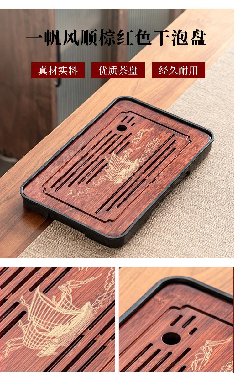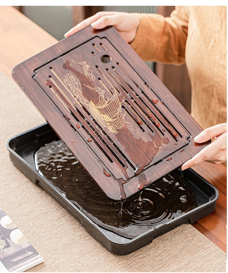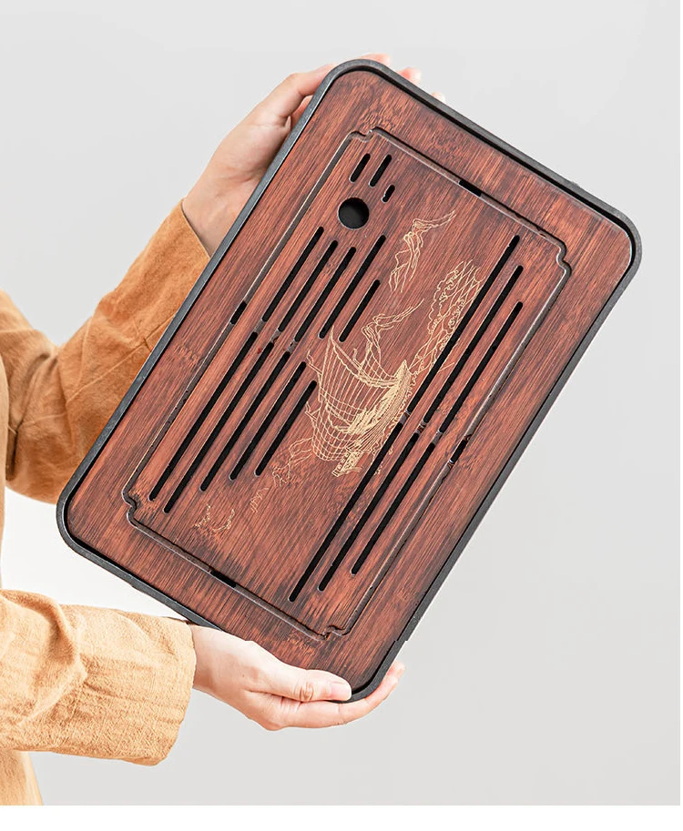 Bamboo Kungfu Tea Tray New Household Simple Water Storage Japanese Rectangular Modern Tea Table Dry wet amphibious Tray Tea Gift
