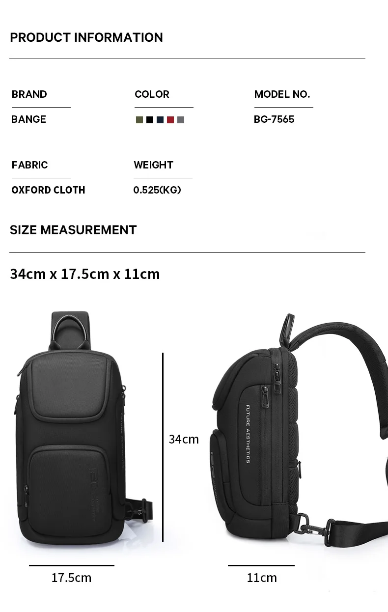 BANGE Crossbody Bag For Men Portable Waterproof Shoulder Messenger Bags Male Travel Short Trip Chest Bag Fit For 9.7 Inch iPad