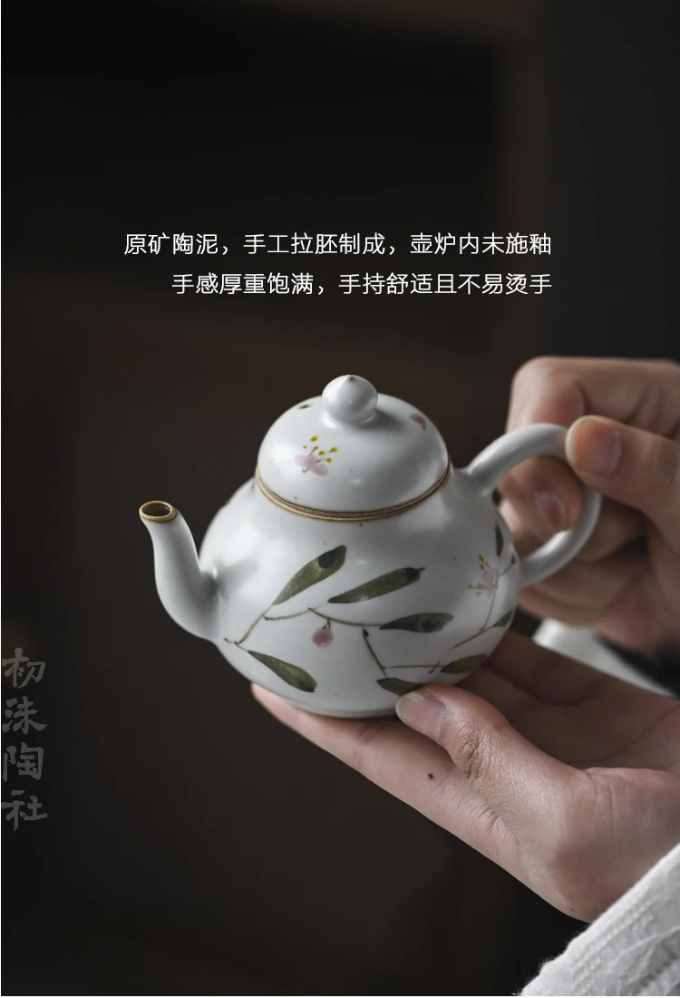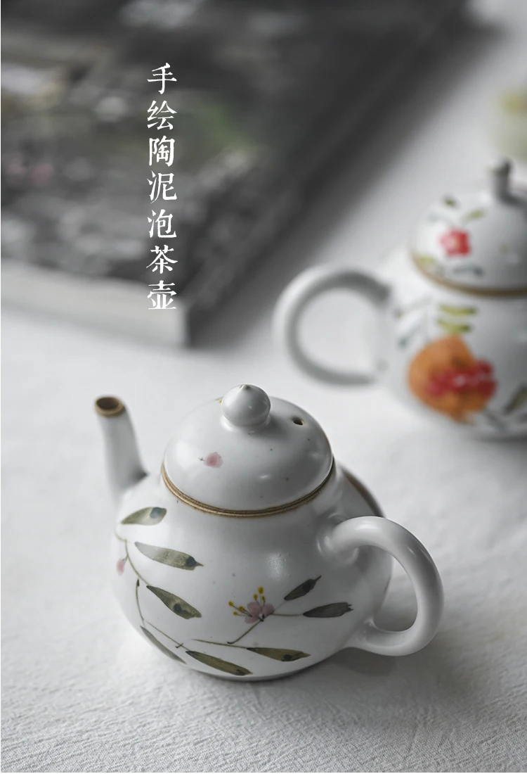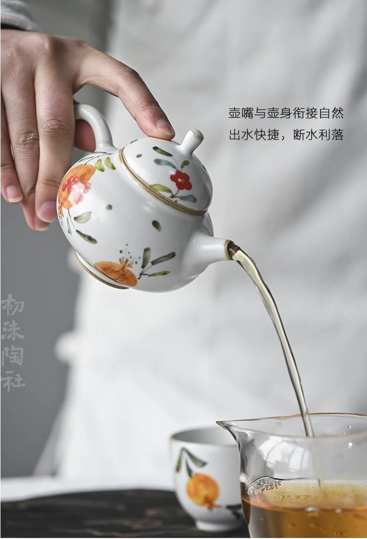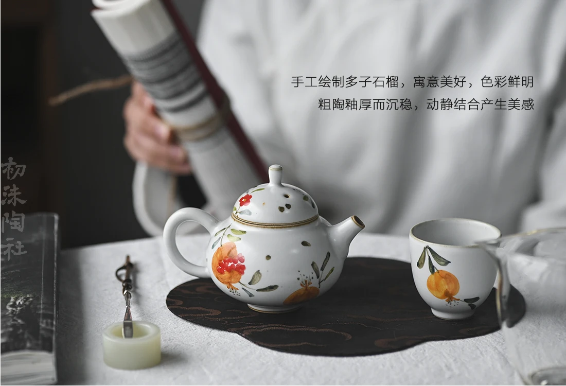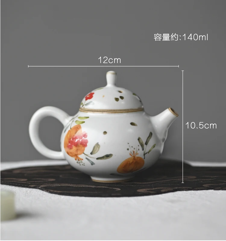 beginning of the jingdezhen undressed ore clay hand-painted pomegranate teapot retro household single pot of tea teapot