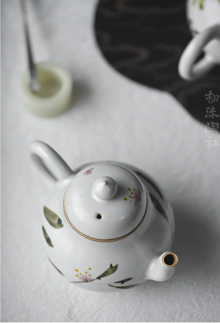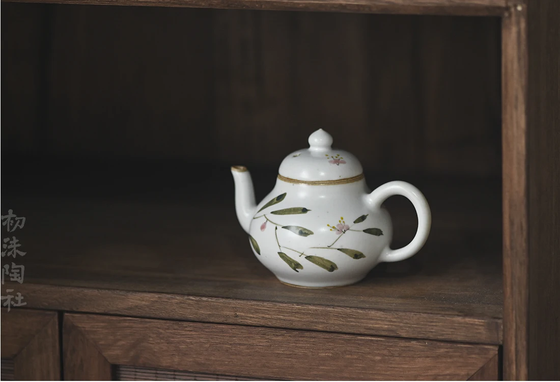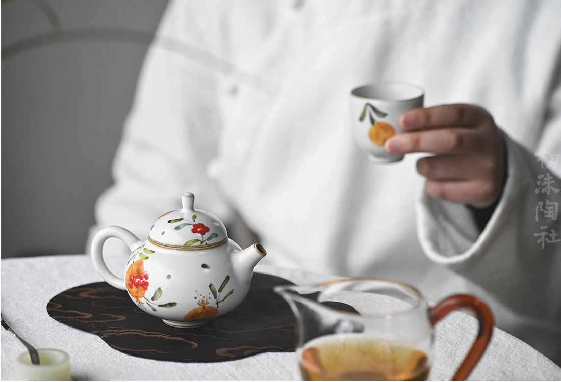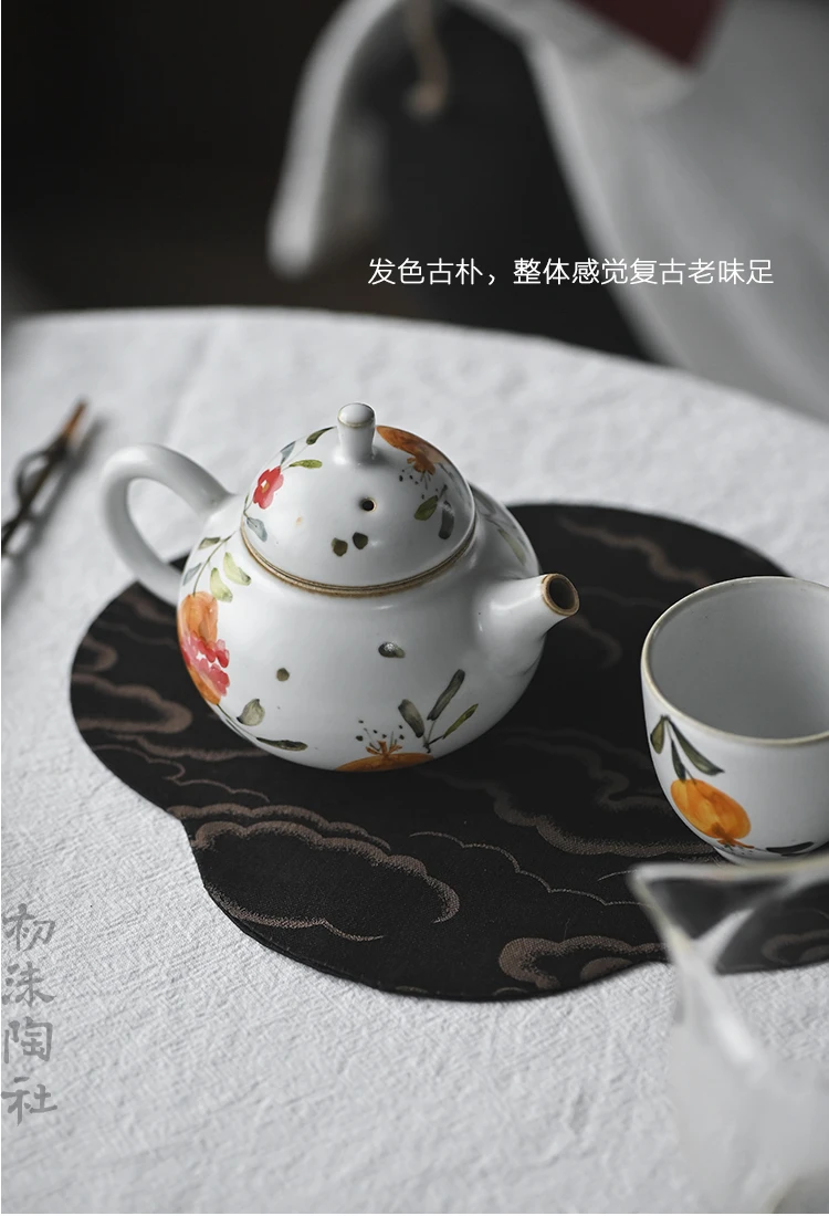 beginning of the jingdezhen undressed ore clay hand-painted pomegranate teapot retro household single pot of tea teapot