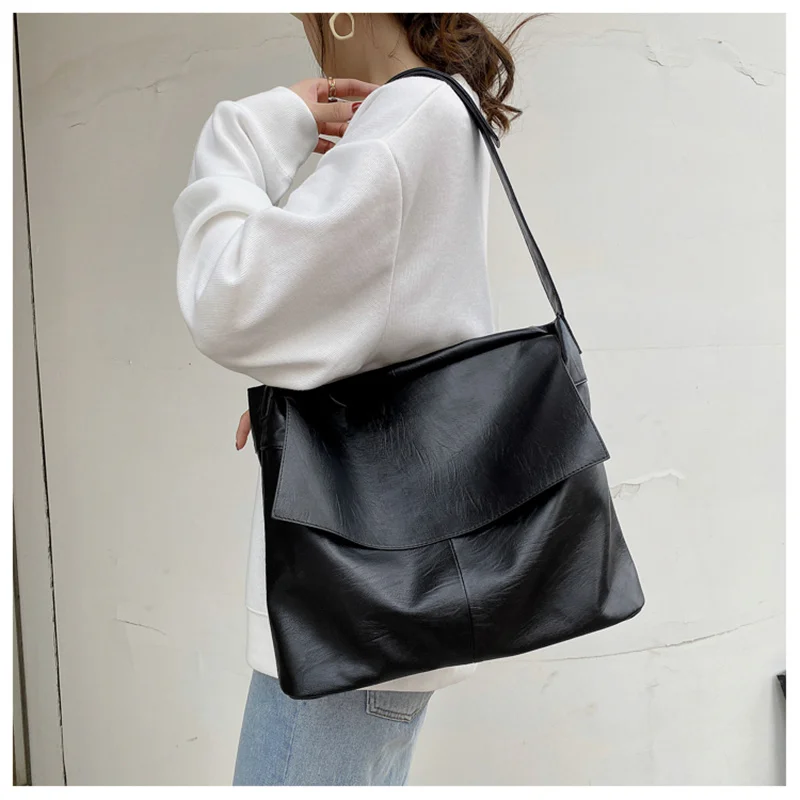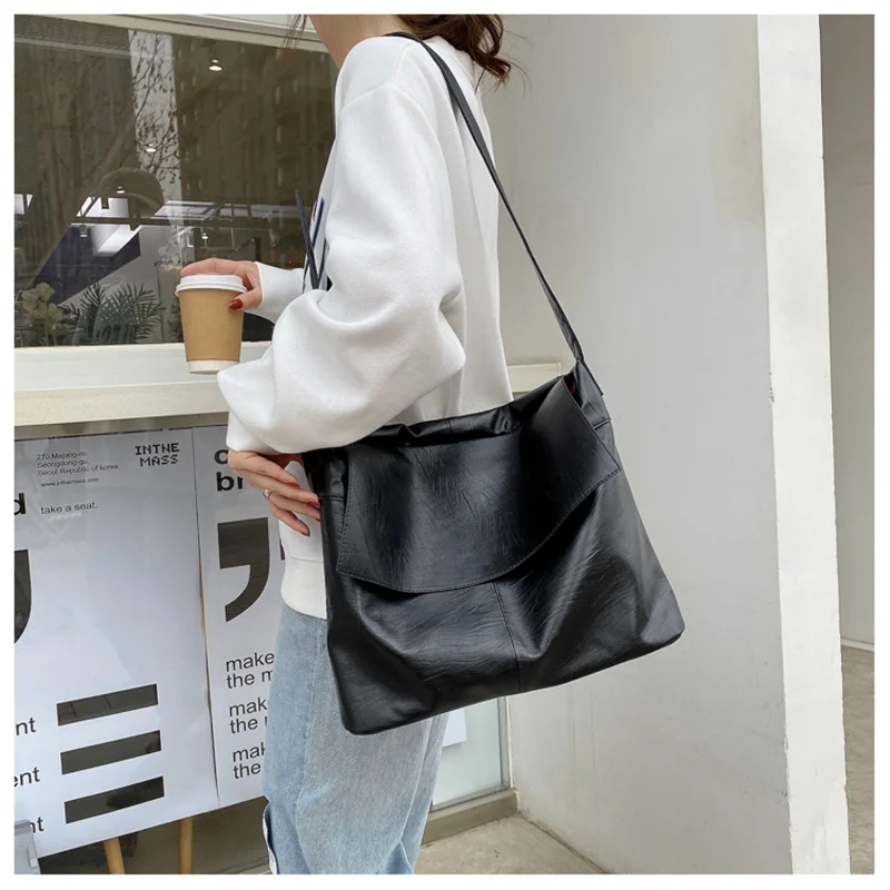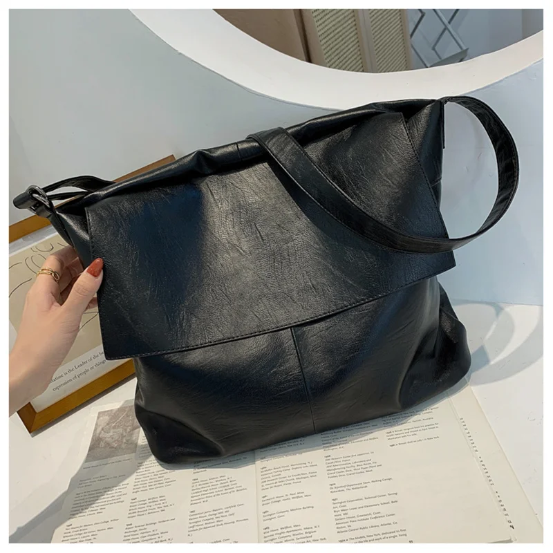 Big Women Bags Leather Bag Black Shoulder Bag Ladies Tote Handbag