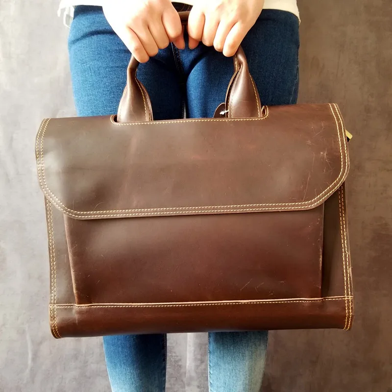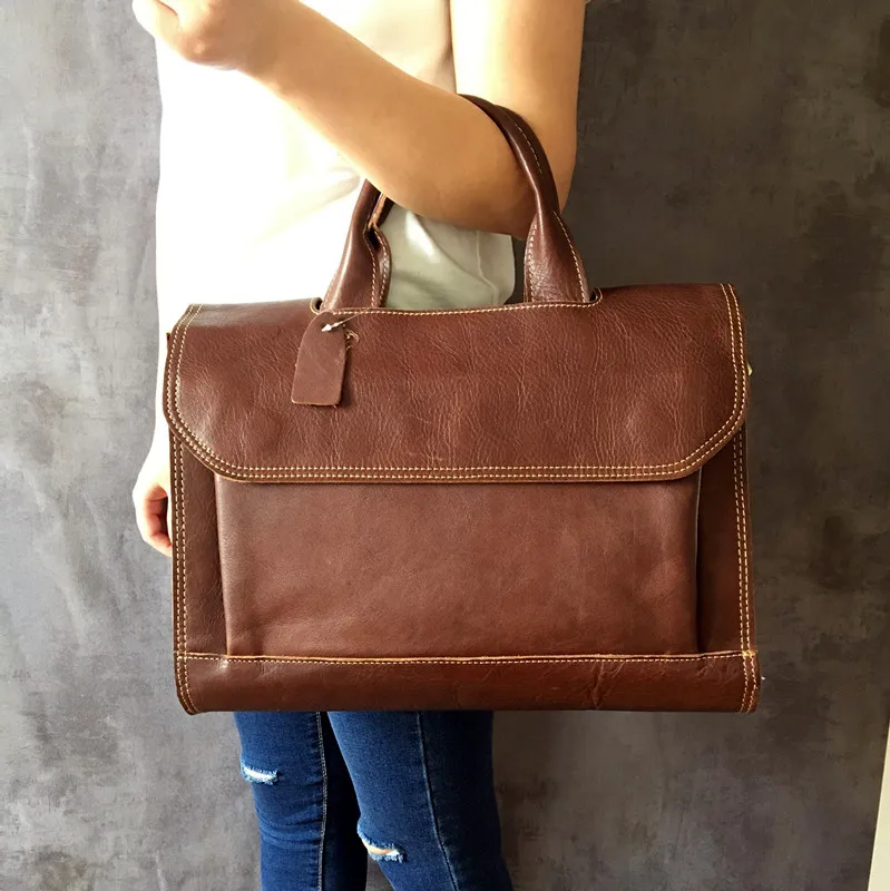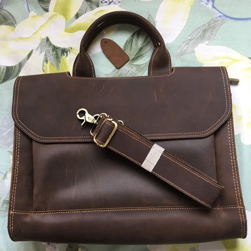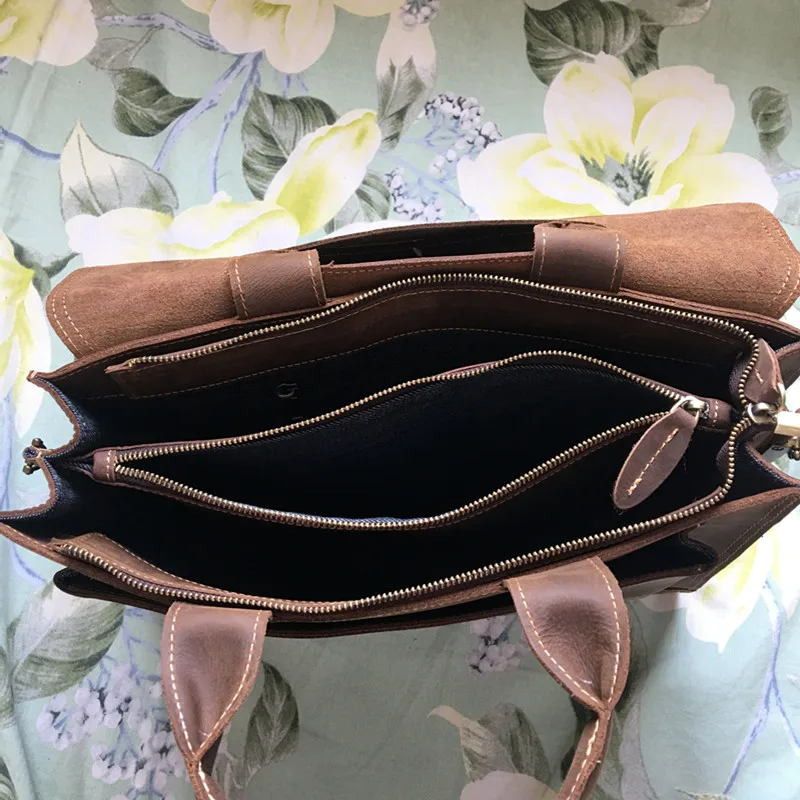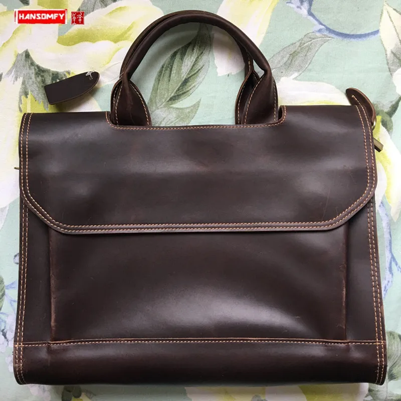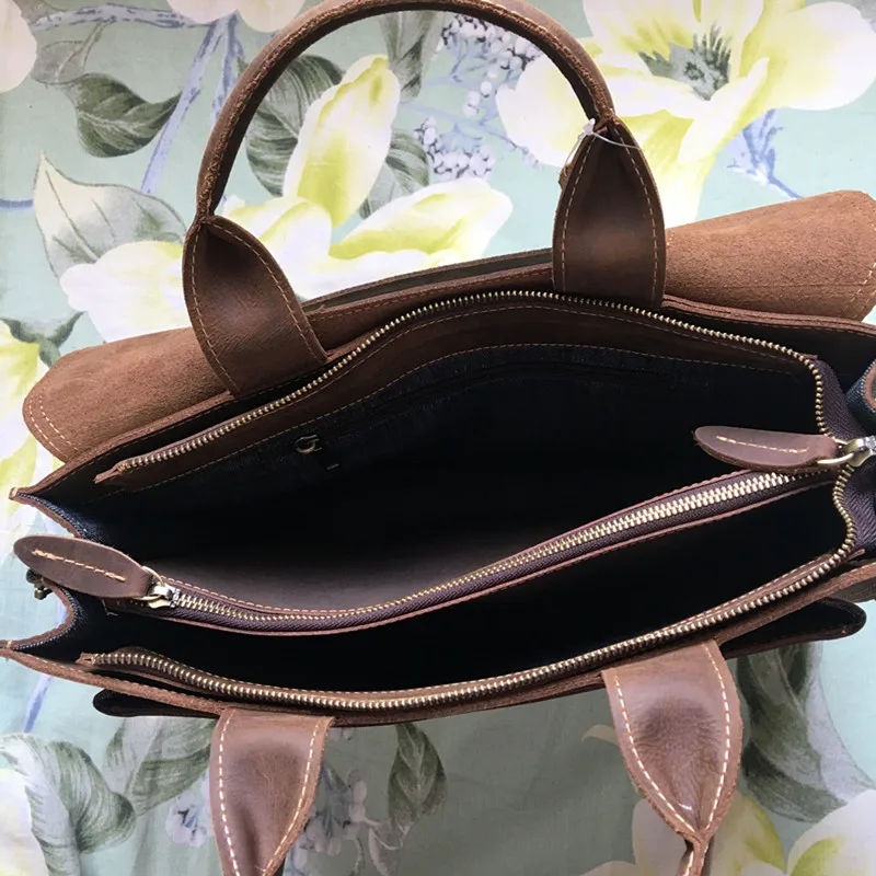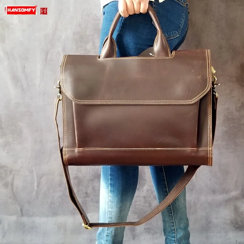 BJYL Genuine Leather Women Handbags Ladies Business 14 Inch Laptop Briefcase Female Shoulder Messenger Bags Crazy Horse Leather