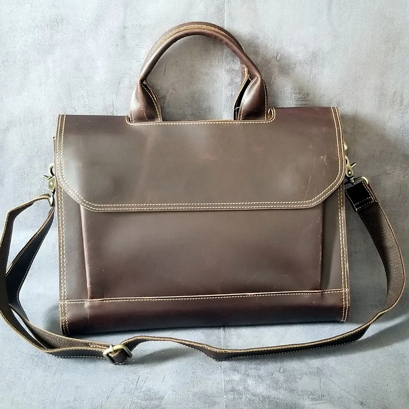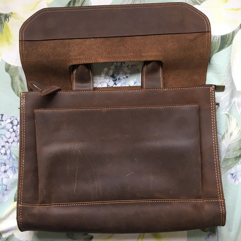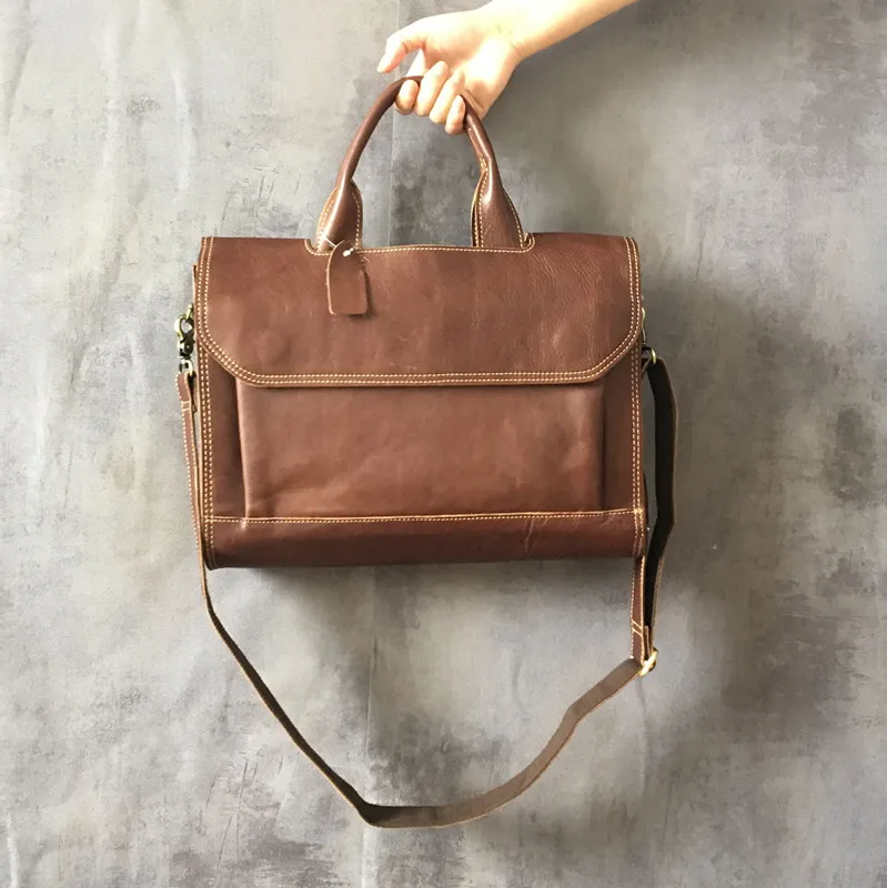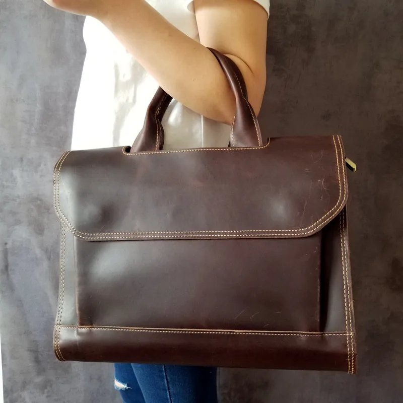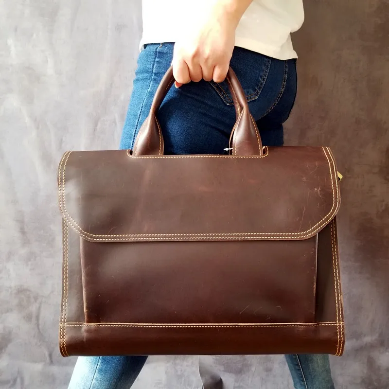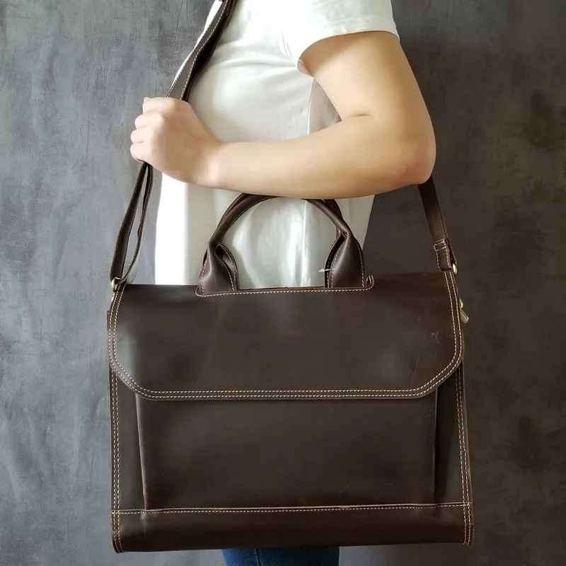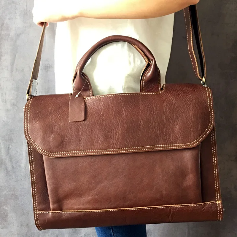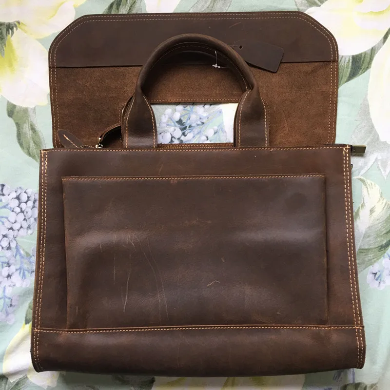 BJYL Genuine Leather Women Handbags Ladies Business 14 Inch Laptop Briefcase Female Shoulder Messenger Bags Crazy Horse Leather