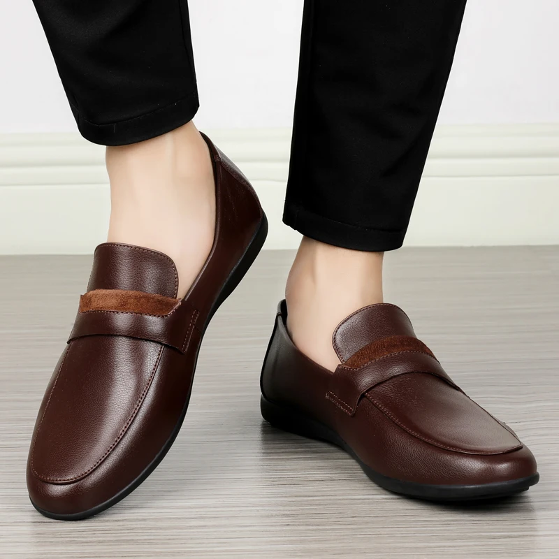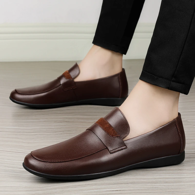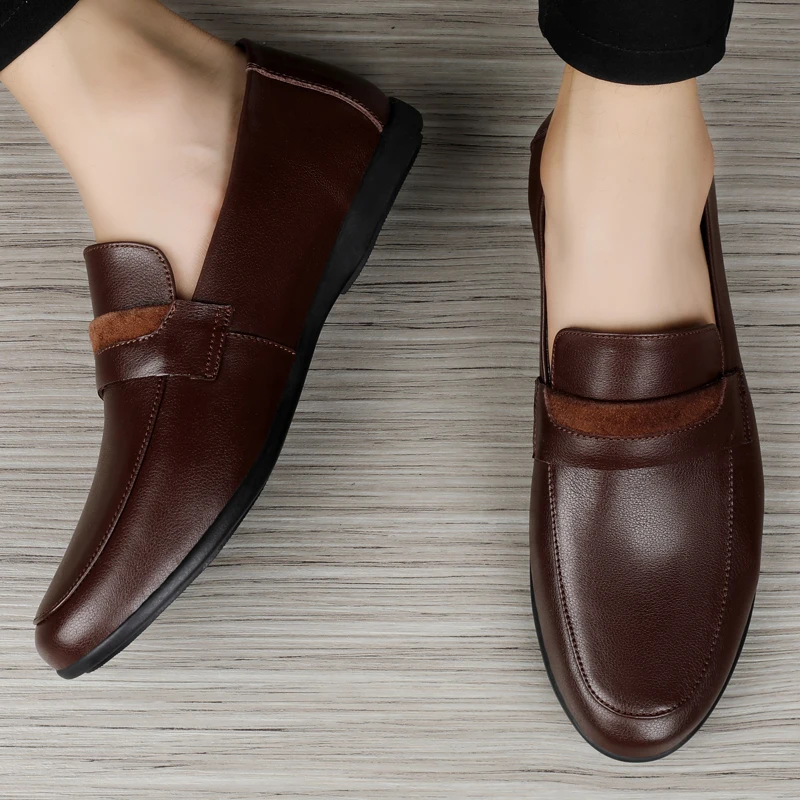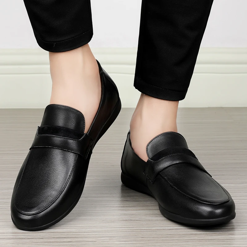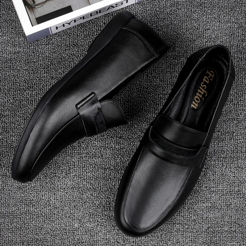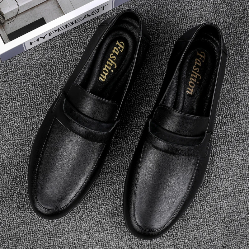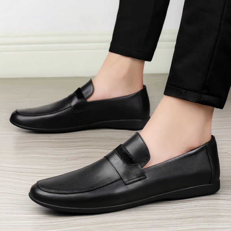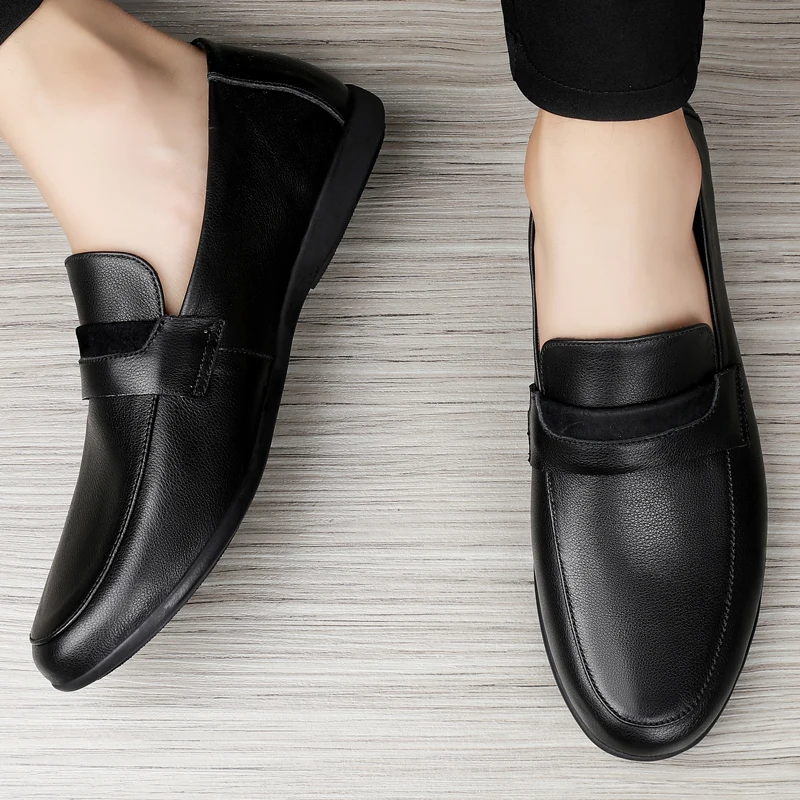 Black Genuine Leather Shoes me Loafers Flats Super Light Moccasins