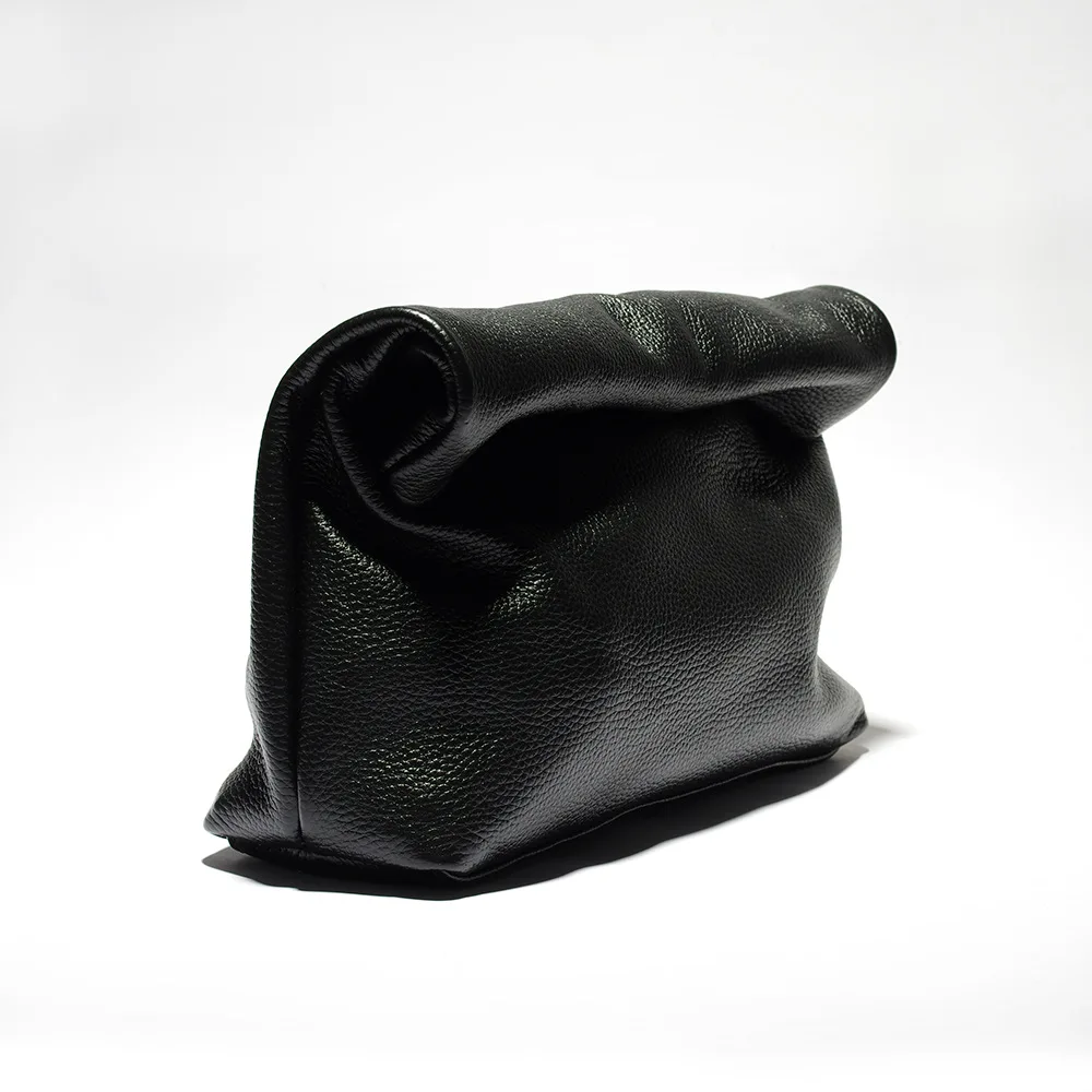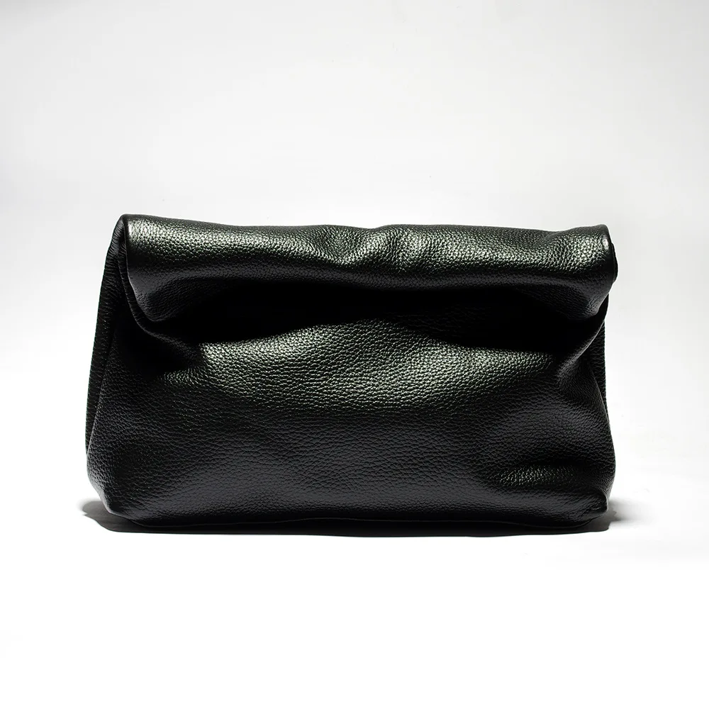 Black leather bag personality lazy casual clutch bag leather bag soft bag Phone Women High Quality Laptop Bag Genuine Leather