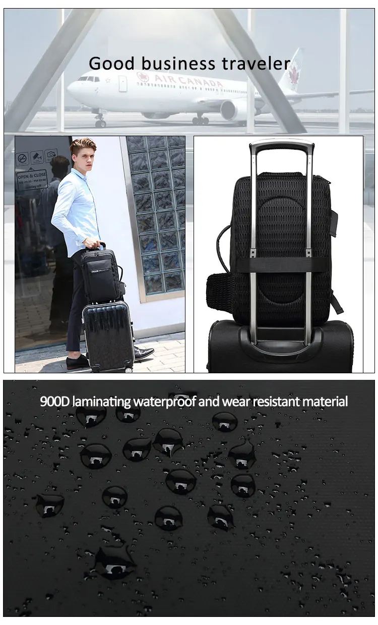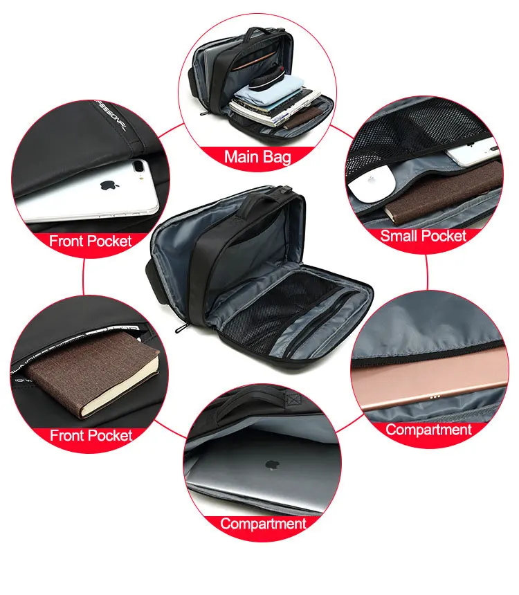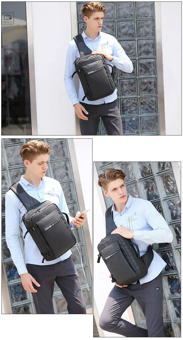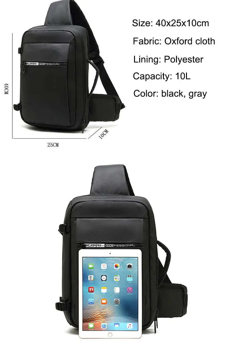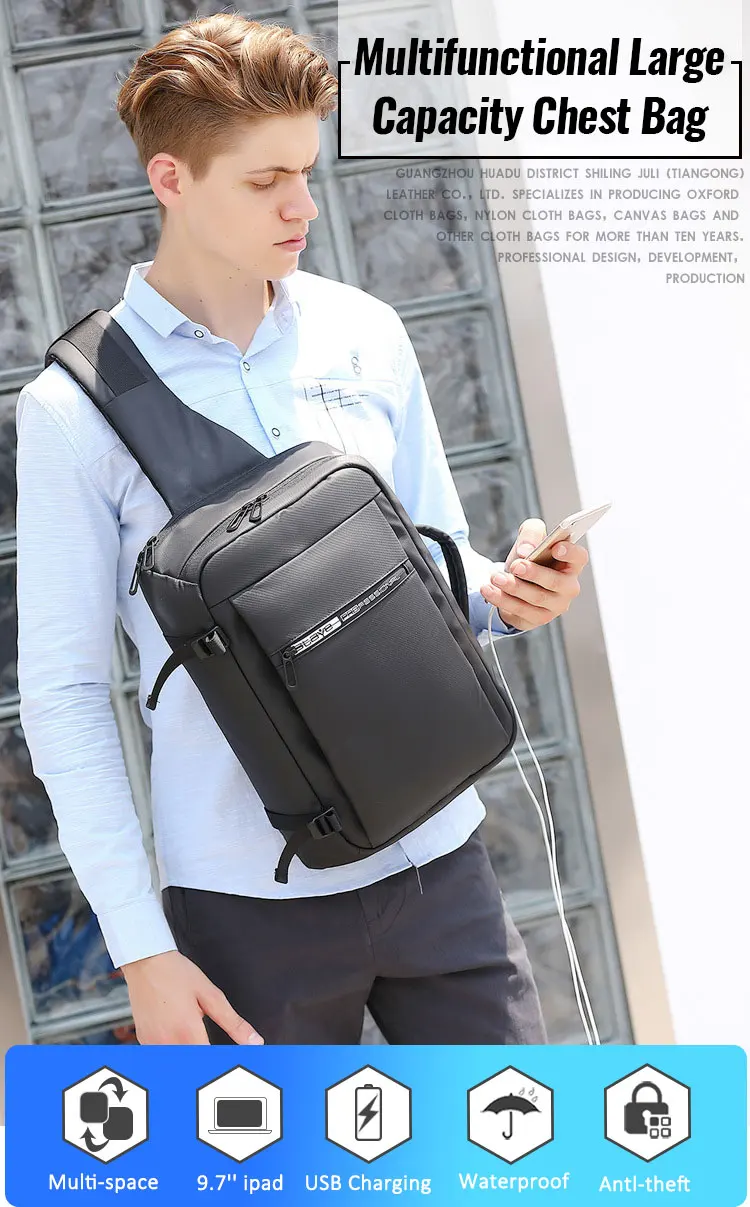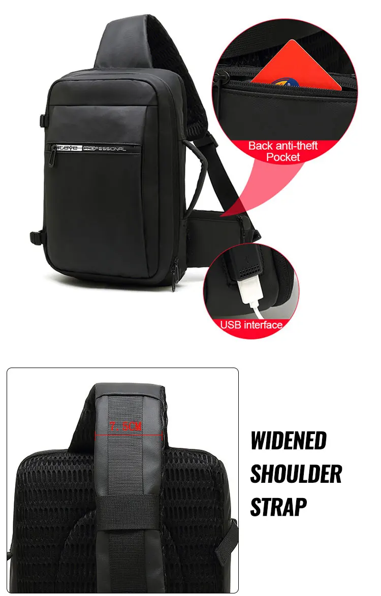 Black Man Bag USB Charging Shoulder Bags 9.7 inch ipad Tote Bags for Documents RFID Anti-theft Travel Strap Handbag