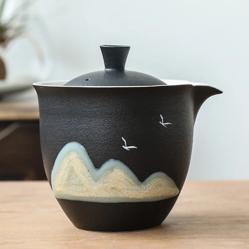Black Pottery Green Hill Side Handle Pot Japanese Vintage Ceramic Kung Fu Tea Set Tea Pot Coffee Teapot Teapot Clay Water Kettle