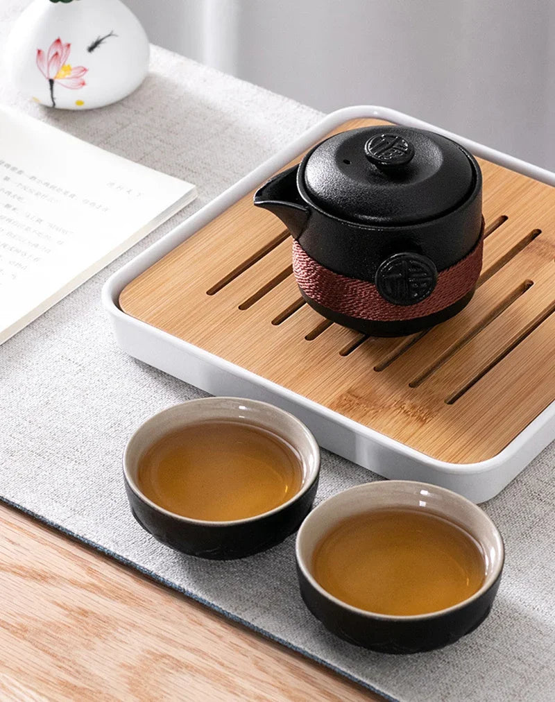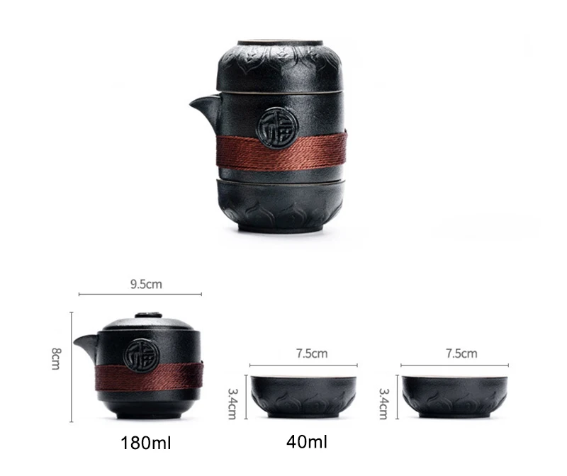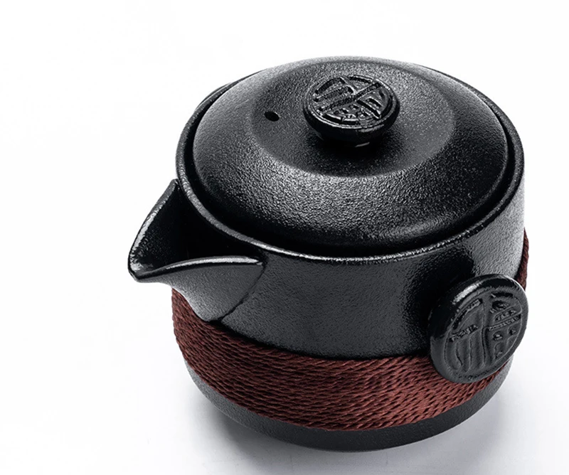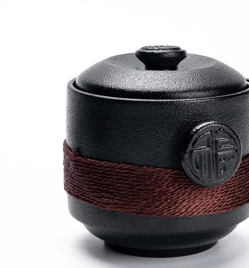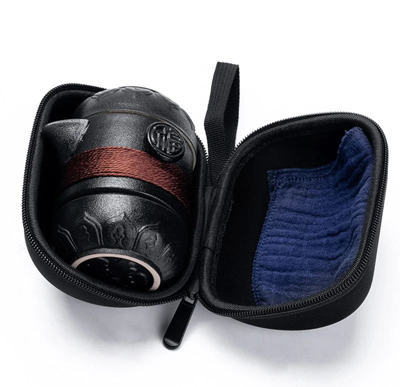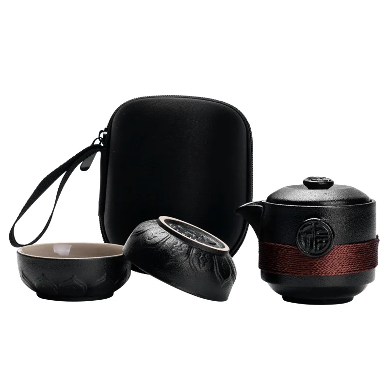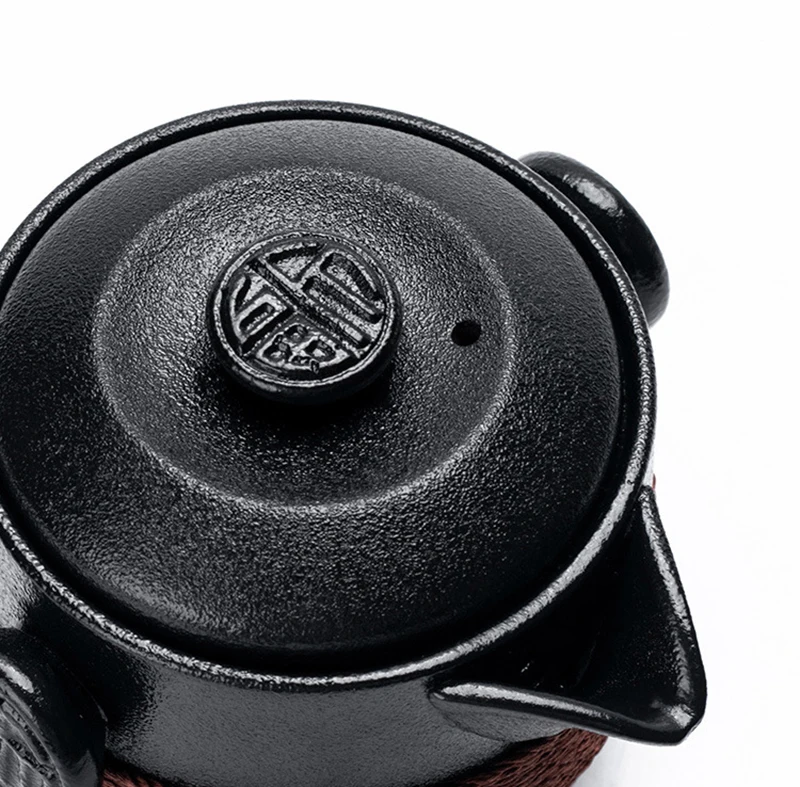 Black Pottery Portable Travel Tea Set Incule 1pcs Teapot 2pcs 1Bag Gaiwan Cups and Mugs Coffeeware Teaware Green Tea Cup Sets