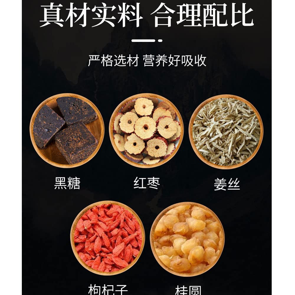 Product Description Ingredients: red dates, longan, goji berries, black sugar, dried ginger shreds. Do not add any sugar and retain the original sweetness. Make a pot of good tea, share it with friends, and enjoy a relaxed lifestyle together Wolfberry tea is the best tea bag, packaged separately and with the best taste, allowing you to enjoy it anytime, anywhere. Easy to brew and enjoy a good tea break time Jujube tea is a great tea. Don't be too sweet, you can eat fruits and ginger slices while drinking, or you can eat them at the end. The taste is delicious and healthy for you. I highly recommend this tea. You won't regret trying. Usage: Soak in boiling water for three minutes to drink. You can repeatedly brew until the color turns light and the taste is depleted. You can add rock sugar, brown sugar, or honey according to your personal taste Shelf life: 18 months, storage method: sealed and stored in a cool and dry place |