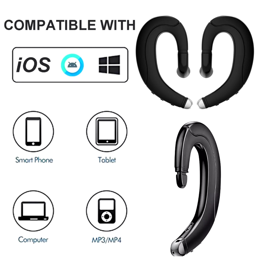Welcome To Our Online Store! Specifications: Item type: Bluetooth bone conduction headset Feature: 【COMFORTABLE AND LIGHTWEIGHT】 Non-in-ear design, earphones that fit the contours of your ears, so that you won’t feel pain after wearing them for a long time. 【Large battery capacity】140mAh battery capacity, standby time up to 120 hours, continuous playback time up to 6 hours. 【Upgrade Bluetooth 5.0】Bluetooth 5.0 transmission is more stable, lower latency, and the maximum distance can reach 15 meters(49 feet). Compatible with Android/IOS iPhone. Suitable for business/office/sports occasions. 【Great practicality, Value and accessibility】- Built-in 140 mAh battery, 200 hours of standby time when fully charged, 10 hours of continuous playback, charging time only 1-2 hours. Waterproof and sweatproof really stand the "baptism" of sweat. Reduce signal interference, enhance call effect, audiophile music sound quality, to meet all your needs. 【How to use/connect】- Press and hold the multi-function button for two seconds to power on and enter pairing, then turn on Bluetooth in the phone and find the Bluetooth device(F88) corresponding to the headset to pair. You don't need to pair again after connecting. Package Included: 2 x Headphone ️How to Use: |