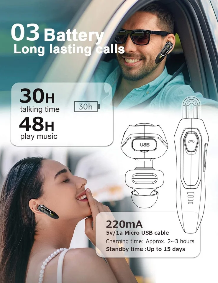 Bluetooth Earphone with Mic 32 Hours Talk Time Wireless Headphones Sweatproof Music Sports Earbuds Long Lasting Earbud