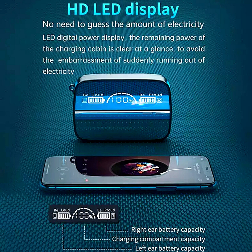 Bluetooth Earbuds for Iphone Samsung Android Wireless TWS 3D Touch Control US Features: Superior Music Quality: Upgraded Bluetooth 5.1 and noise canceling no wire, no trouble, high-quality chip, built in Mic and HD speaker, make these noise canceling earbuds perform best in bass sound. Enjoy it while playing high fidelity video, Hi-F music- Portable Mirror, Flashlight Optional for single / double ears. Two earphones can be connected to a mobile phone at the same time, or they can be used separately to connect two mobile phones. IPX4 water-resistant and dust proof. Water-resistant for daily life, support outdoor sports on rainy days, sweat in the gym with enthusiasm and no scruples. But as a mobile phone stand, the multi-function headphone compartment can not only serve as a mobile phone stand when you are watching TV series, but also liberate your hands. Active noise reduction, HD calling. V5.0 chip upgrade clear call, shielding ambient noise. Communicate effectively. Specifications: Resistance: 32 ohms Frequency response range: 20-20000Hz Sensitivity: 108 ± 3dB Bluetooth version: Bluetooth 5.1 + EDR Touch Control Connection Distance: 10m Headphone protocol support: A2DP / HFP / HSP / AVRCP Headphone battery: 50mAh Charging case battery: 2000mah Packaging size: 130 * 115 * 35mm / 5.11 * 4.52 * 1.37 '' Weight: 120g Latest Bluetooth V5.1 Technology. Long-term use of high-capacity batteries. Using CVC8.0 noise reduction technology. Designed for sport, wearing sturdy clothes. Stereo sub woofer. High Definition Microphone Support Call. With Digital Display Function. Package Included: 1 * Pair of Bluetooth Earbuds 1 * Charging dock 1 * USB Charging Cable 1 * User Manual |