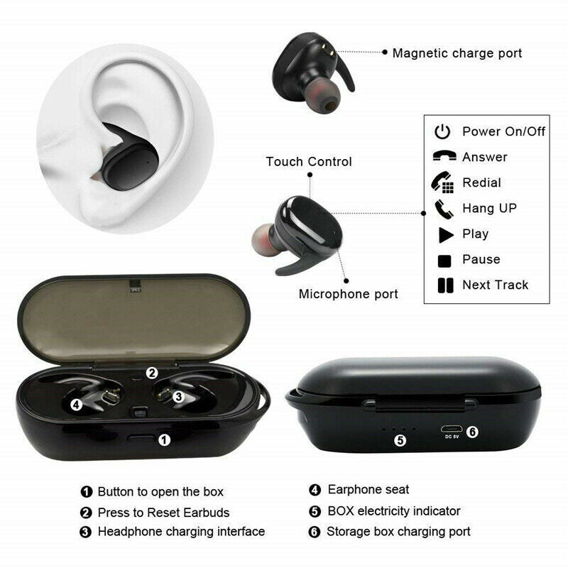 FREE SAME DAY SHIPPING FAST 1-3 DAY DELIVERY USA the Same Day SHIPIPING! Description: This is the TWS4 wireless Bluetooth headset A headphone design that fits the auricle of the human body for a firmer and more comfortable fit One-touch, easy to operate New upgrade, Bluetooth 5.0 chip True wireless, separate dual body Compact body, mini exquisite Intelligent noise reduction, smart battery display High quality headphones sound quality specification: Weight: 70g Color: black, white Bluetooth version: Jerry V5.0 Headphone battery: 50MAH Battery: Polymer lithium battery, 50 mA earphones, 300 mAh charging compartment.
