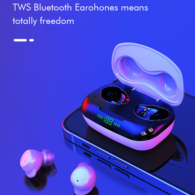 L/R Bluetooth earbuds battery separated LED display design, it will display how much battery remaining in the charging base When putting into the case, you can know when is the best time to charge.