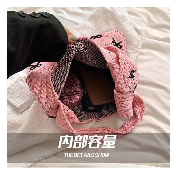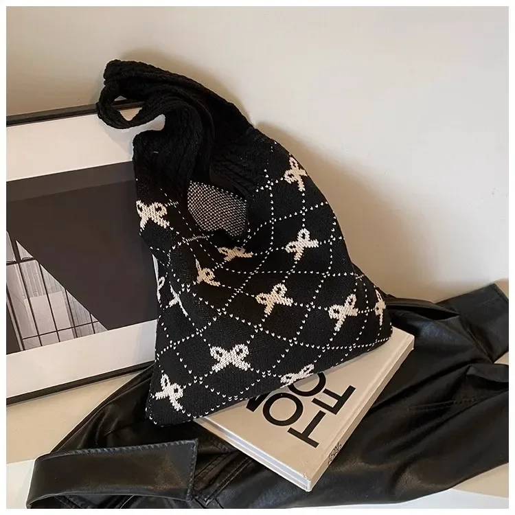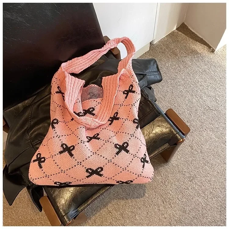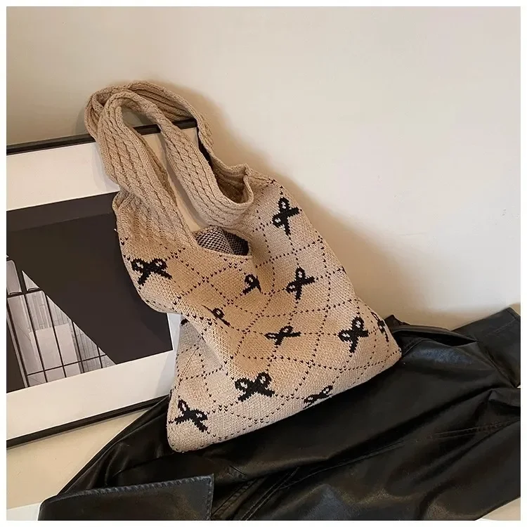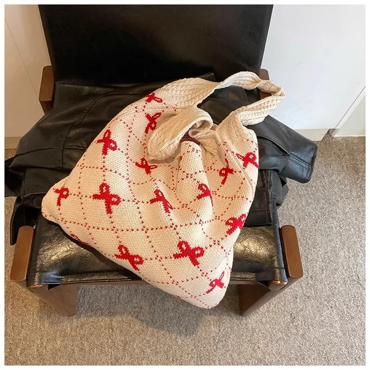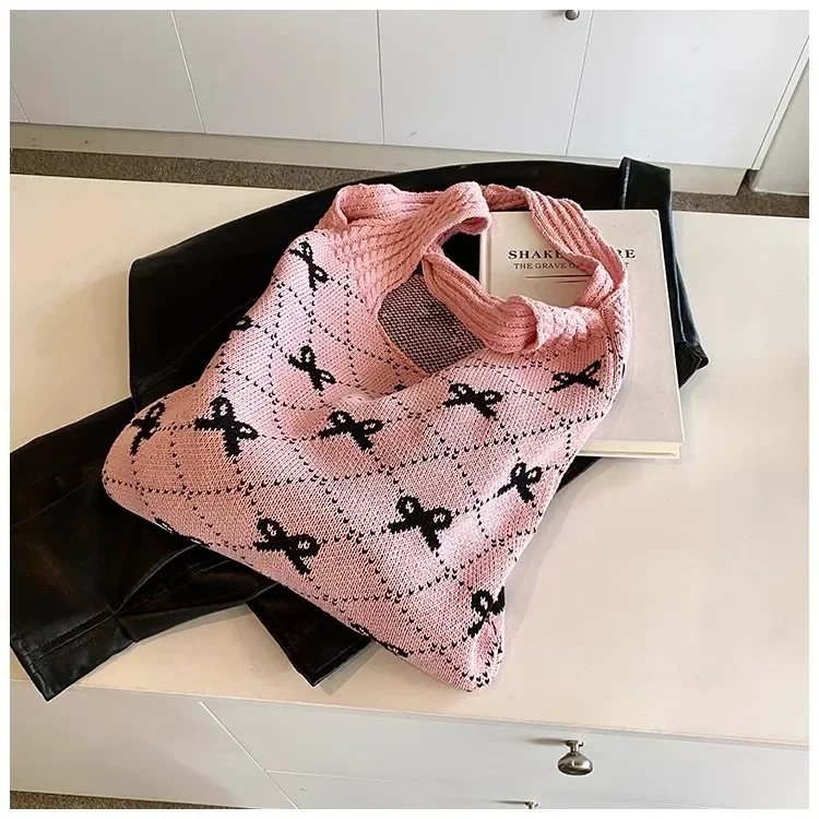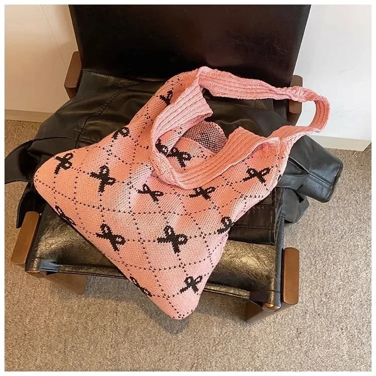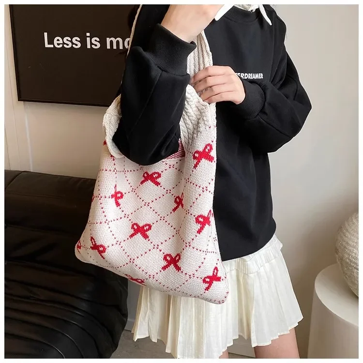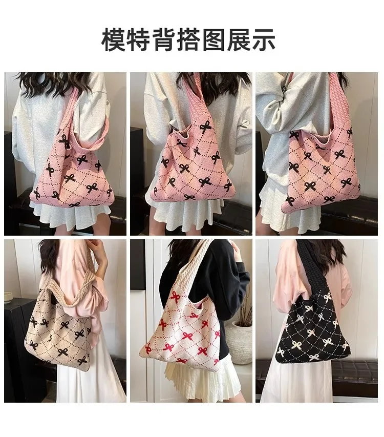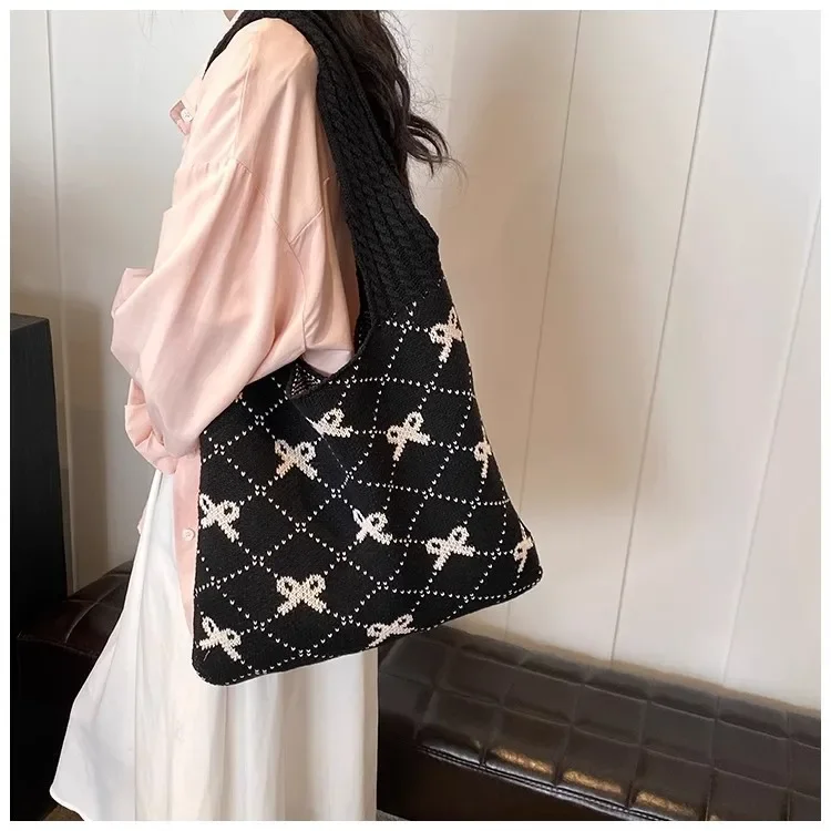 Bow Embellished Woven Shoulder Bags Summer Large Capacity Sweet Style Handbag Korea Casual Gentle Bags New Beautiful Pattern Bag