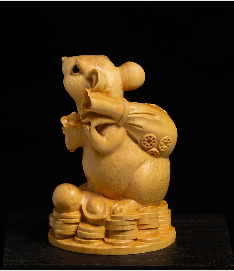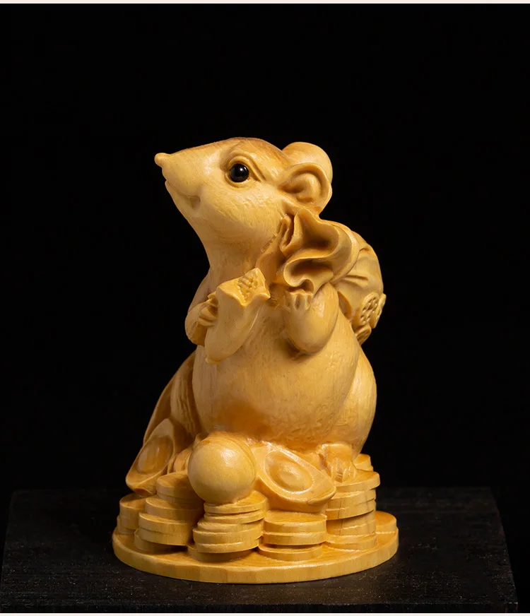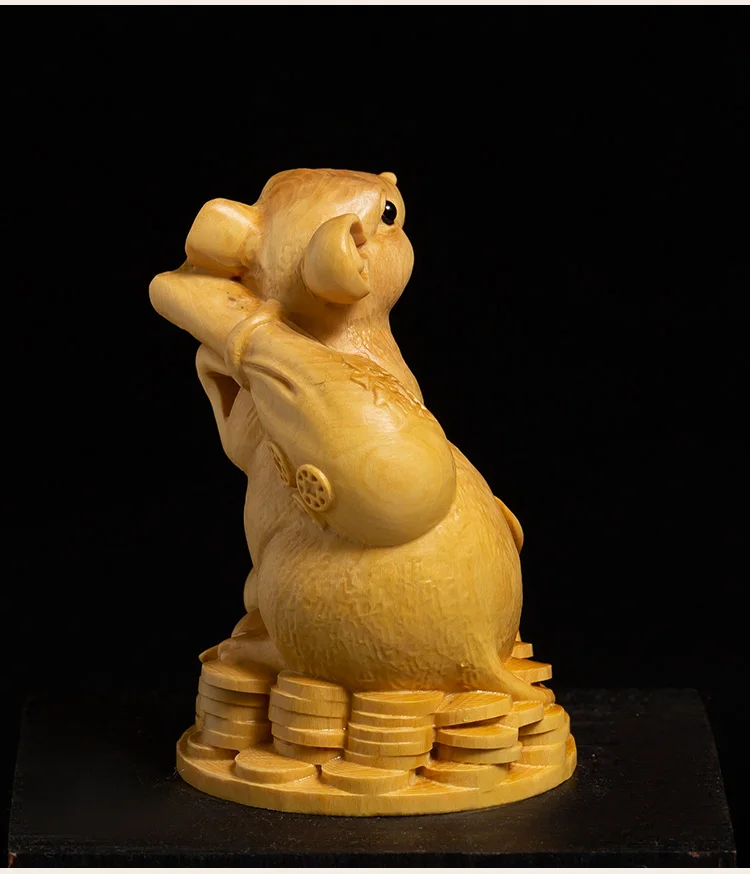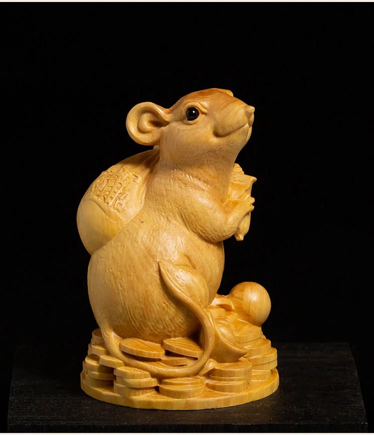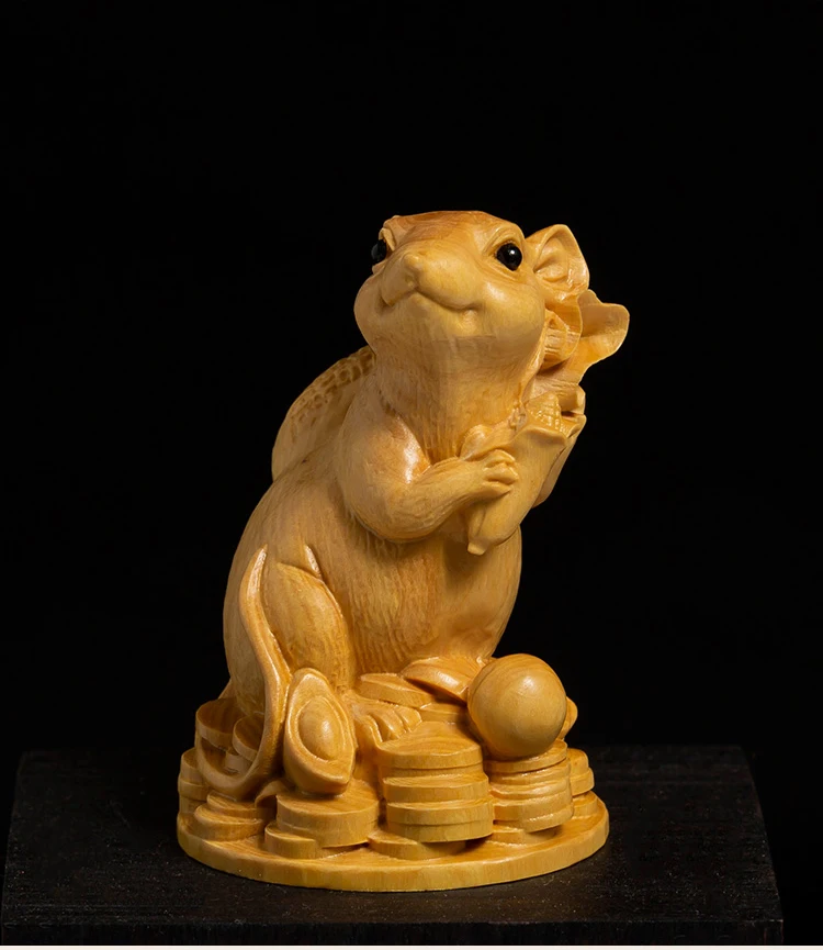 Boxwood 10 cm Animal Sculpture Lucky Leopard Home Furnishing Decoration Office Decoration Solid Wood Collectibles