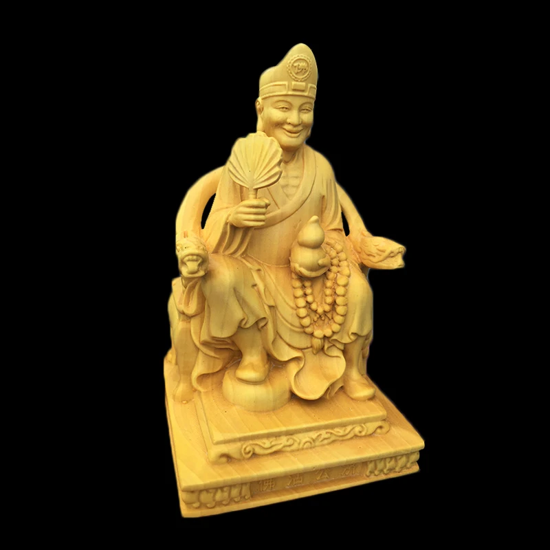 Boxwood 10cm Ji Gong Sculpture Crazy Monk Wood Carving Sitting Buddha Status Feng Shui Home Decor