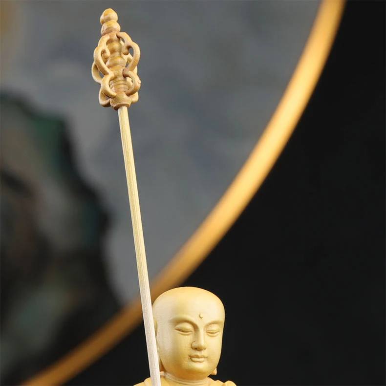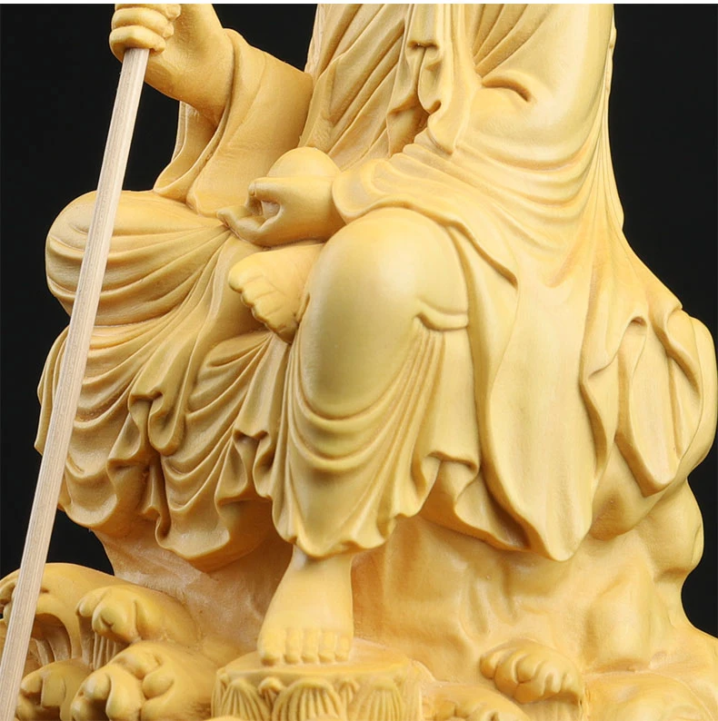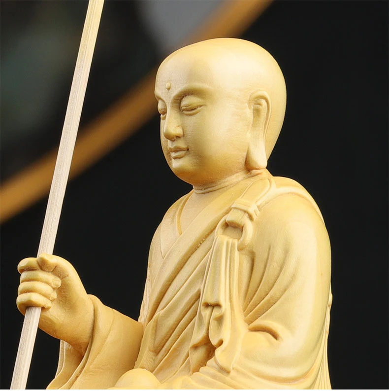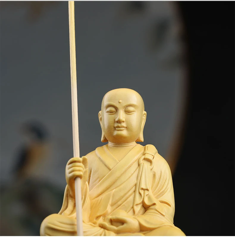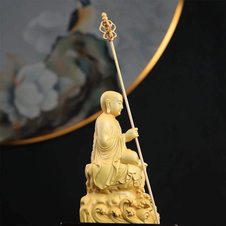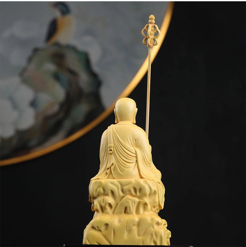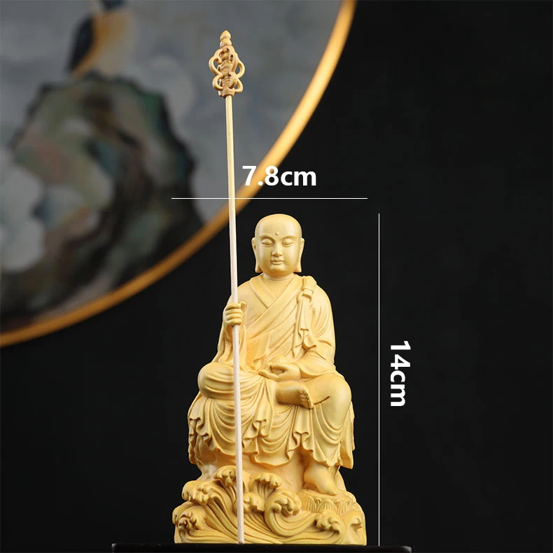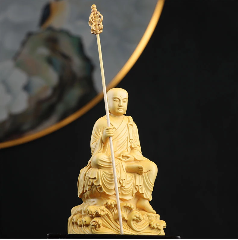 Boxwood 14cm Ksitigarbha Sculpture Wood Buddha Statue Sitting Monk Figure Waves Buda Collection Home Decor