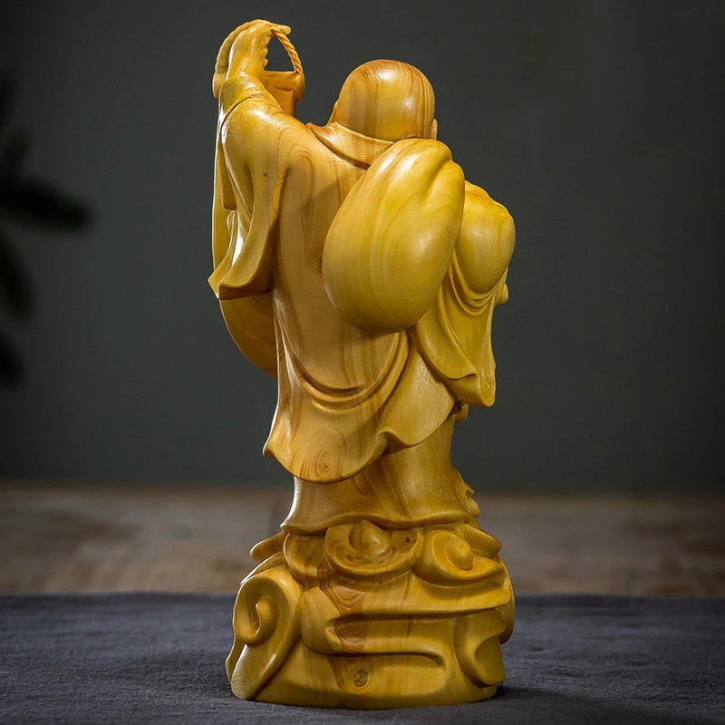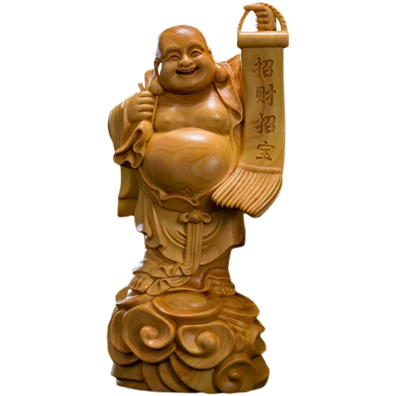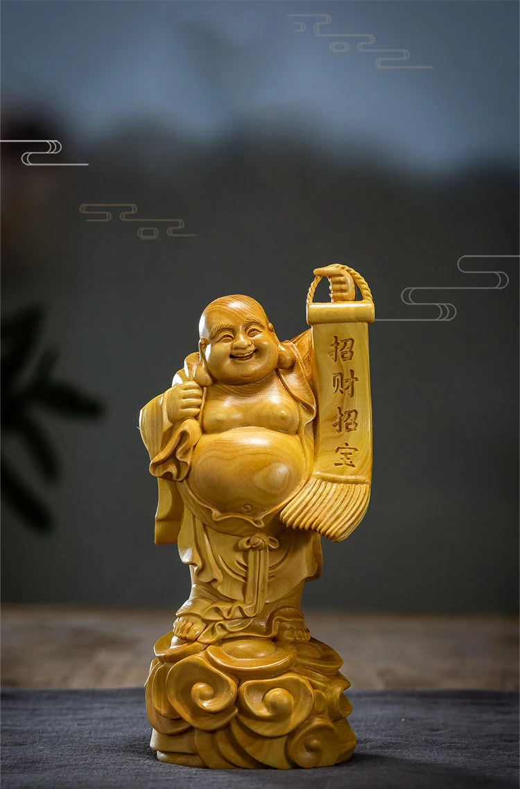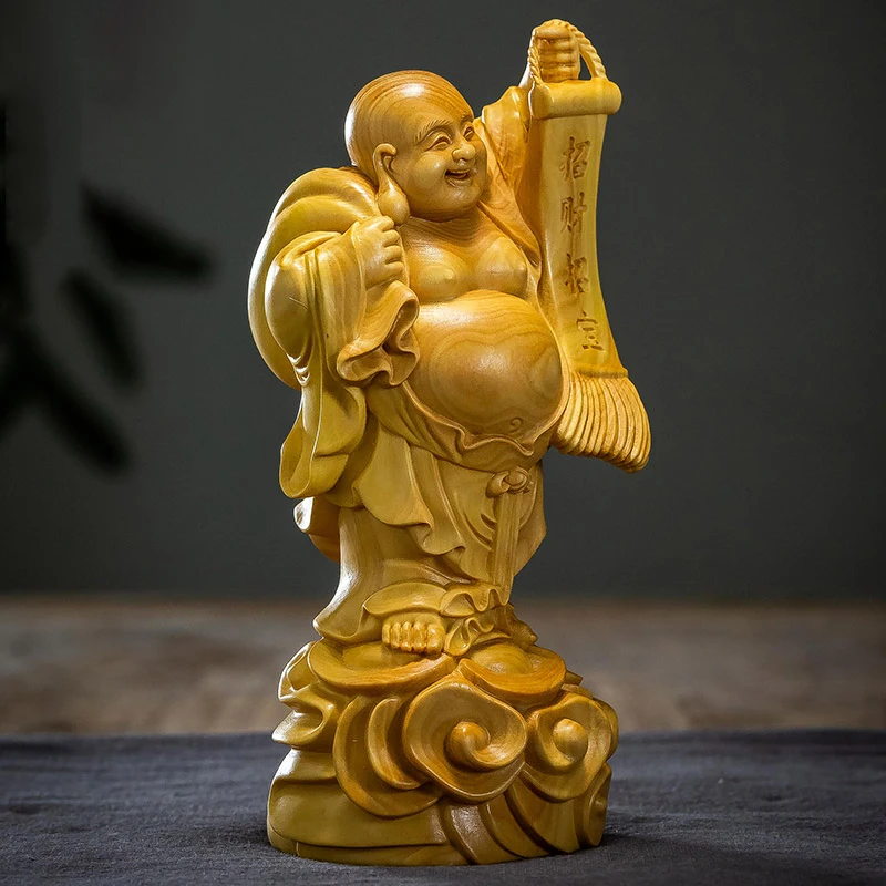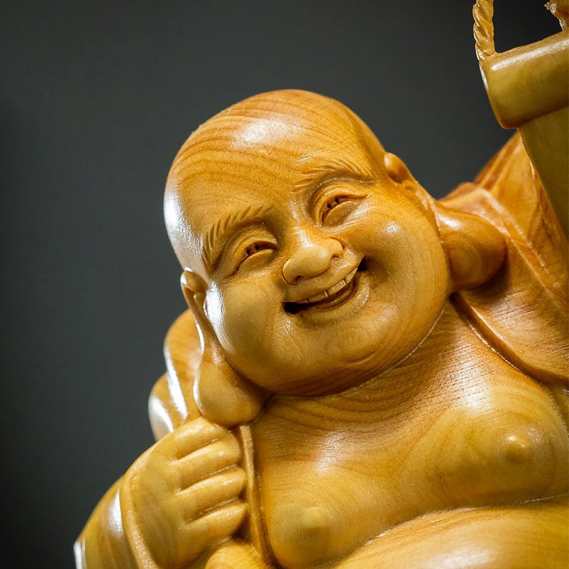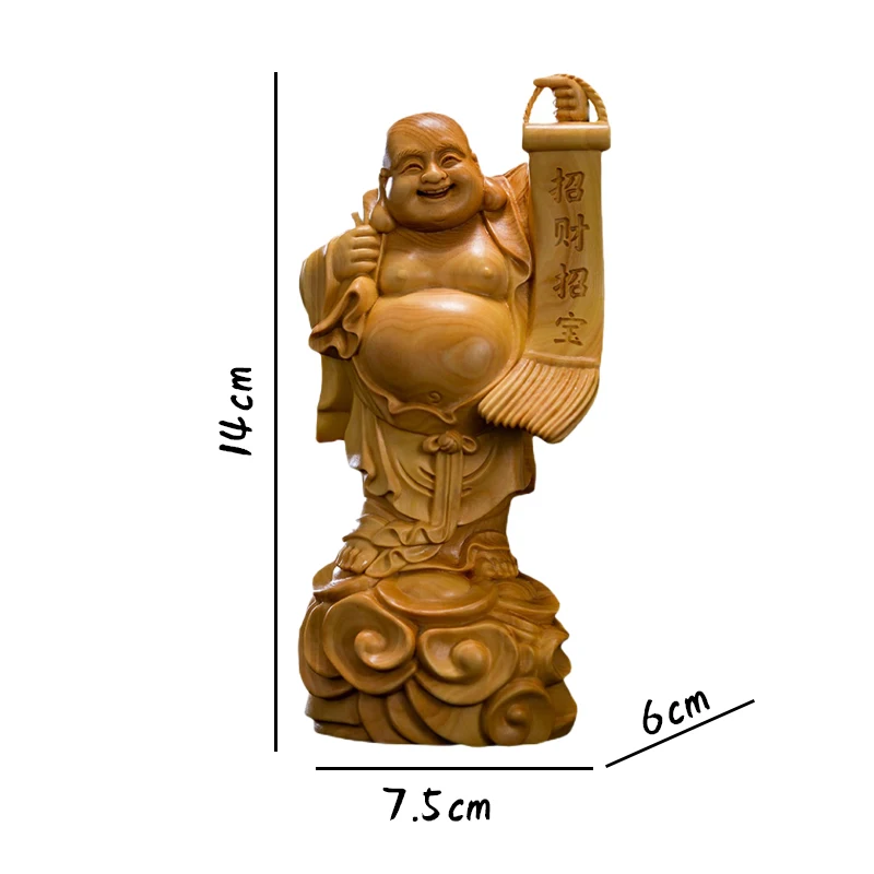 Boxwood 14cm Maitreya Real Wood Myth Buddha Zen Figure Statue Office Decoration Collection Figure Sculpture