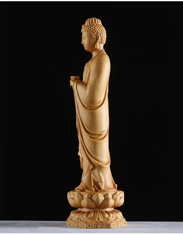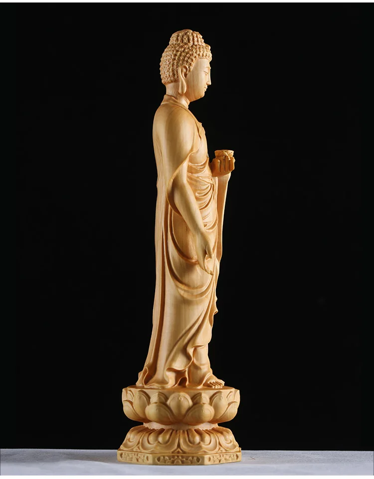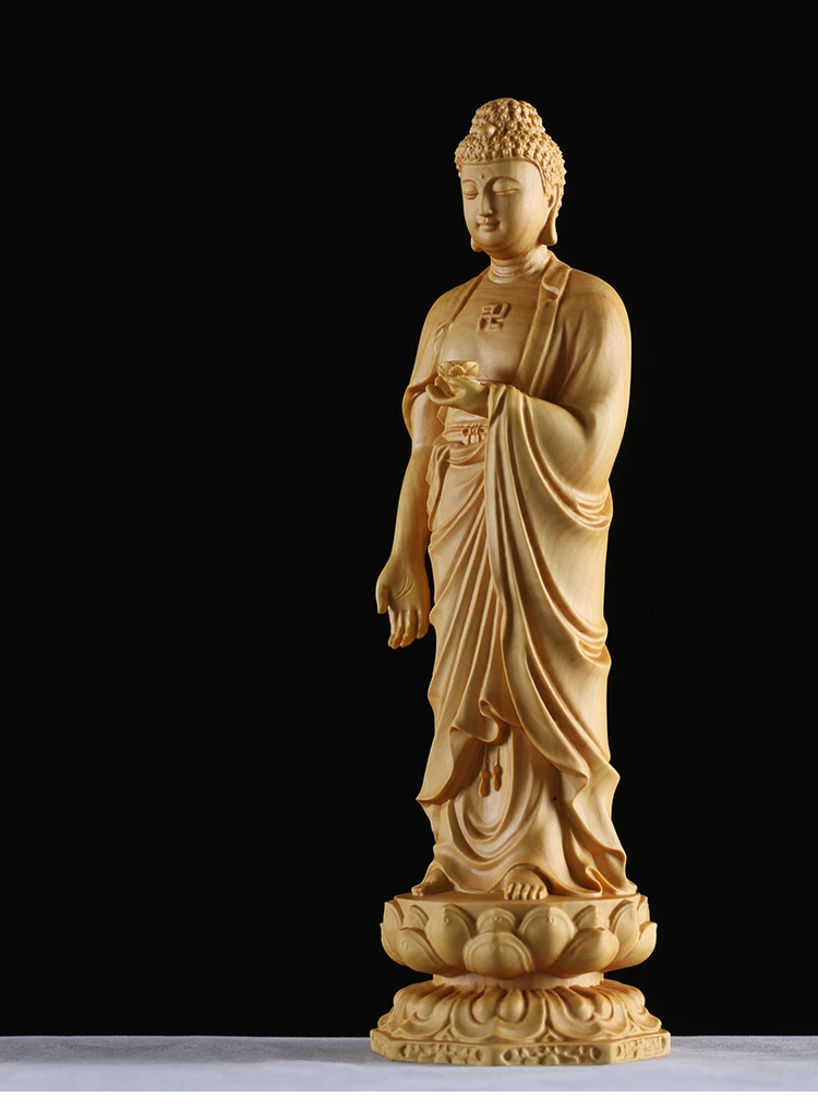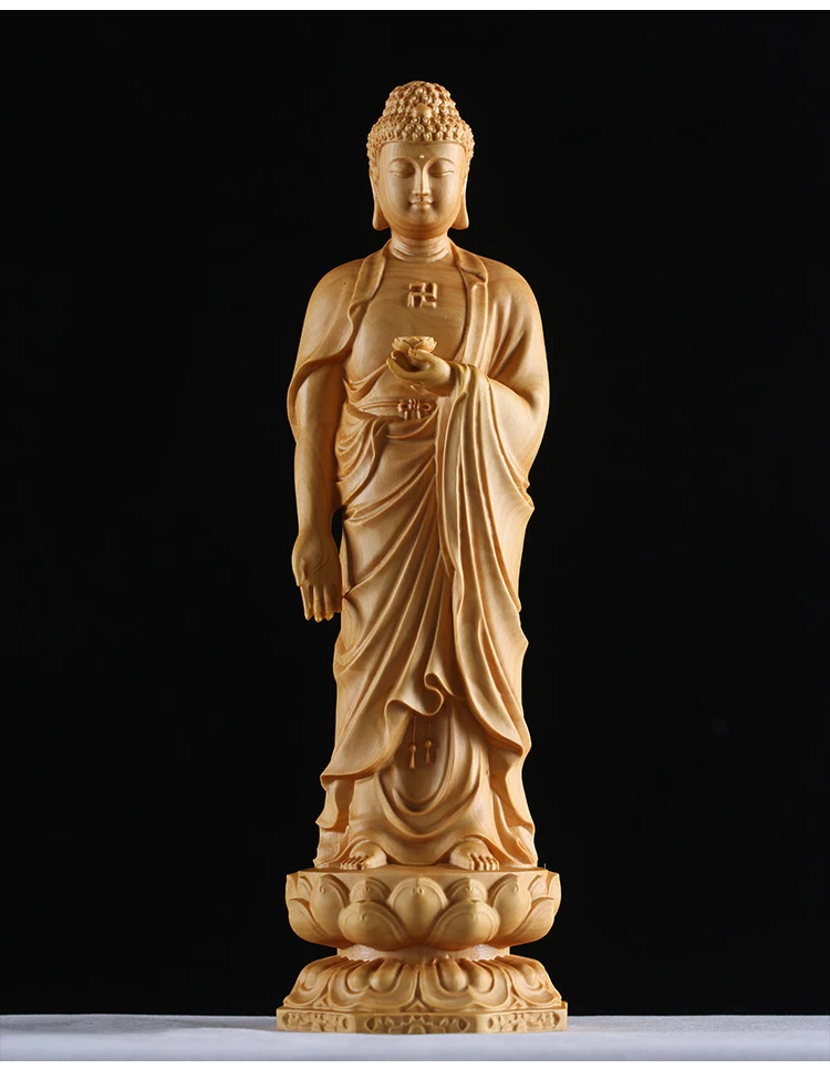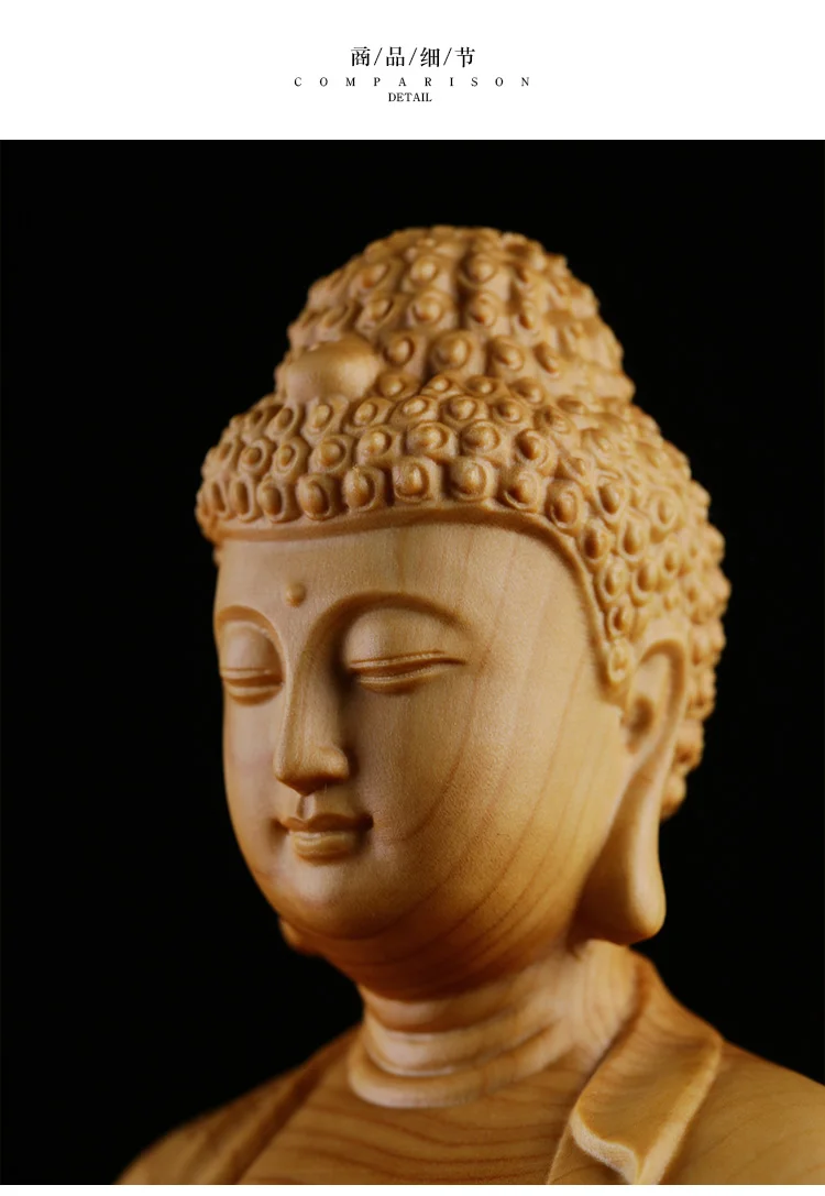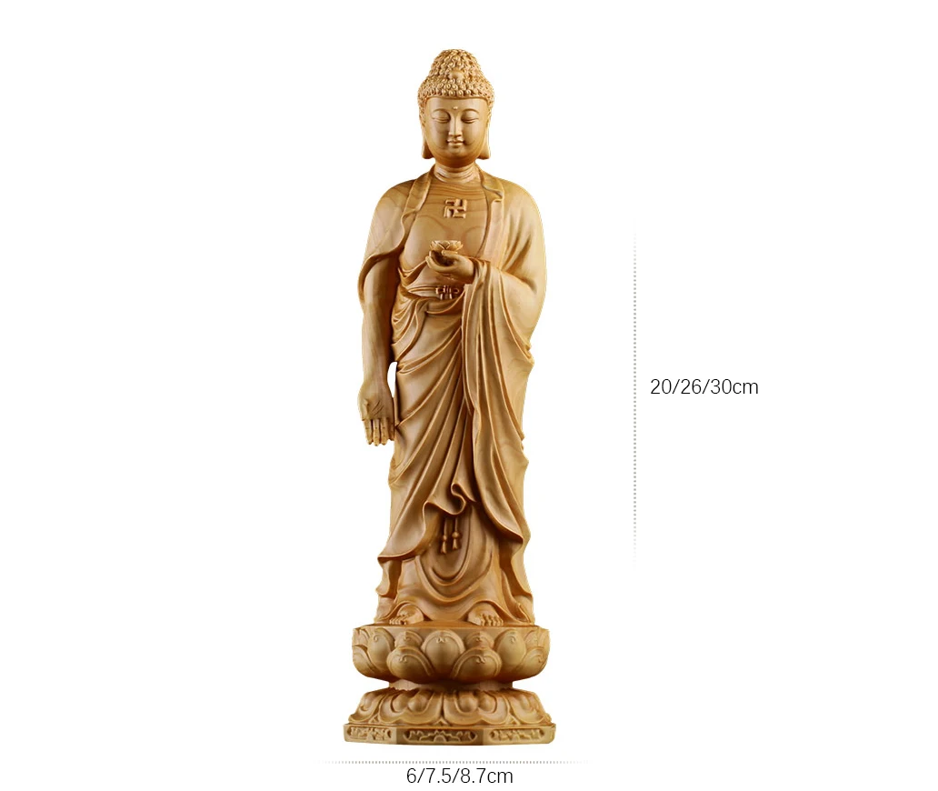 Boxwood 15cm 20cm 30cm Amitabha Sculpture Buddhism Feng Shui Solid Wood Figurine Buddha Statue Home Decor