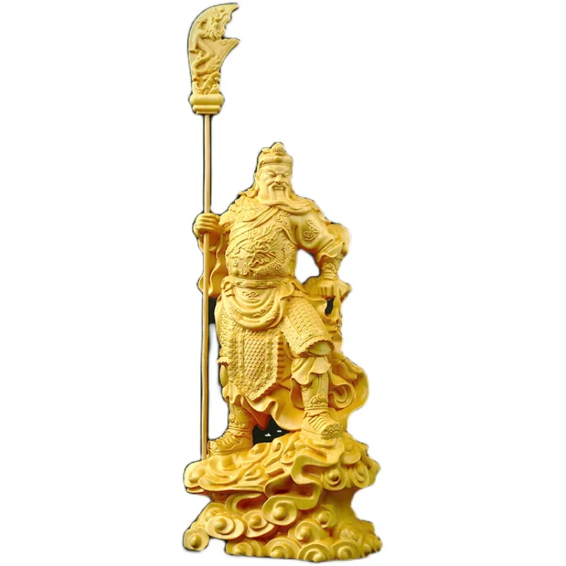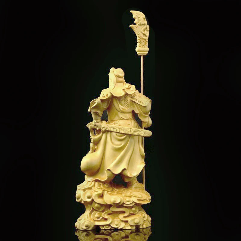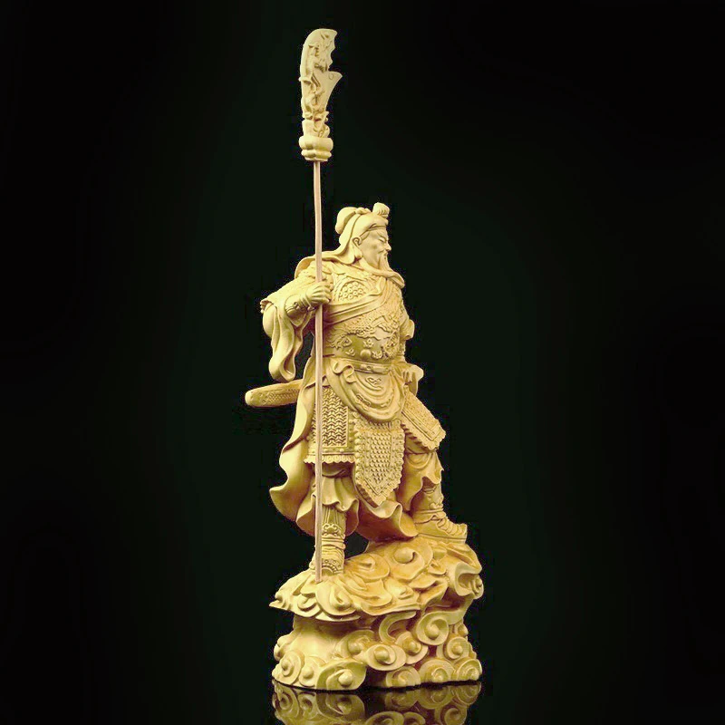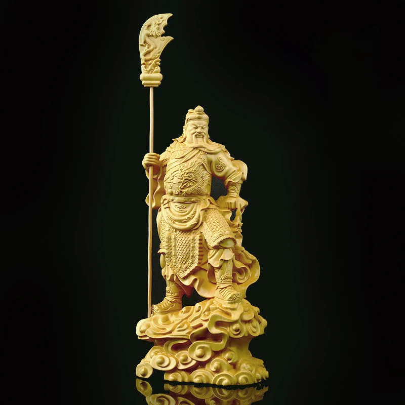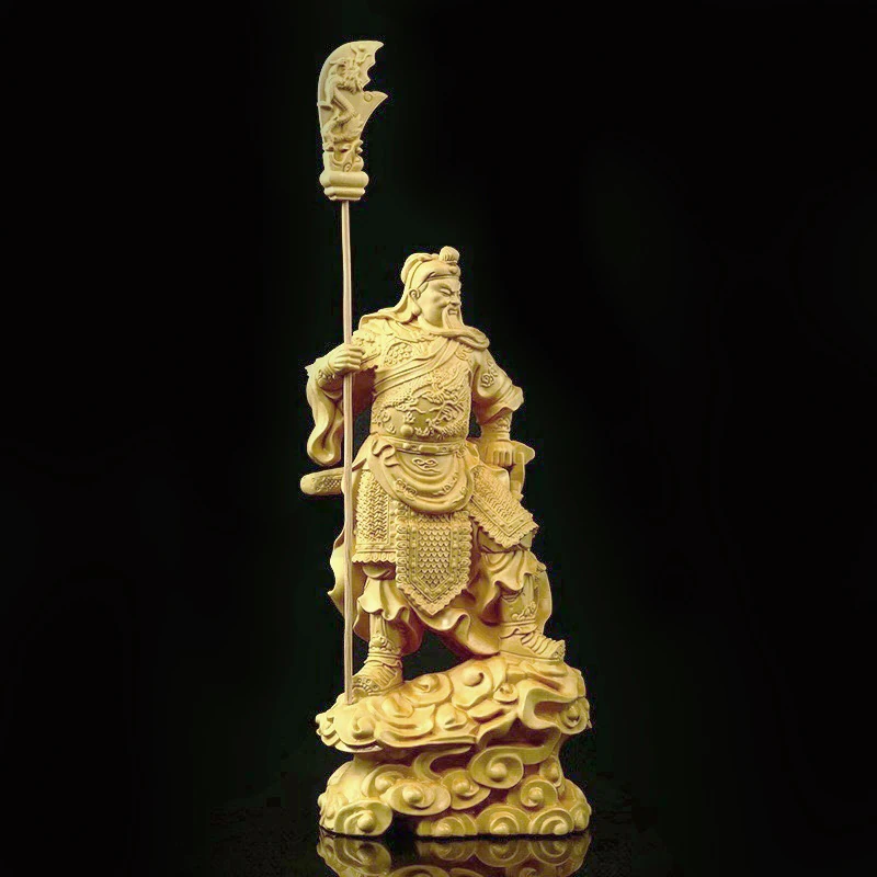 Boxwood 16cm Guan Gong Real Wood Traditional Chinese Historical Figure Statue Office Decoration Collection Sculpture