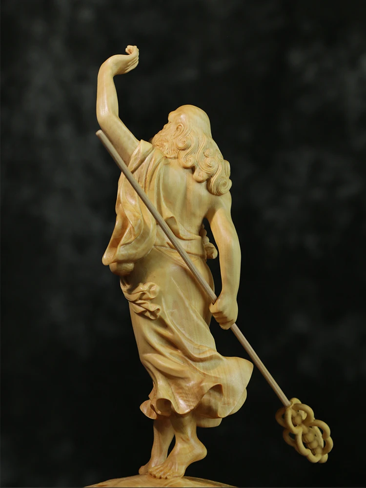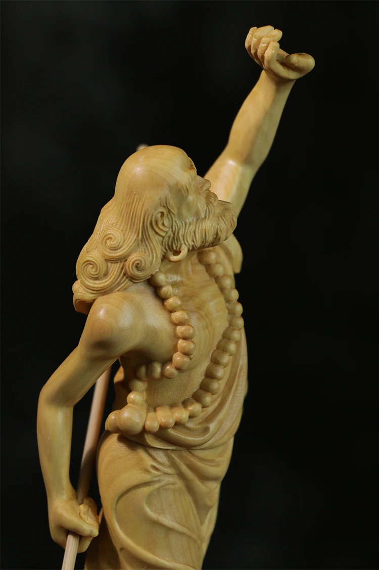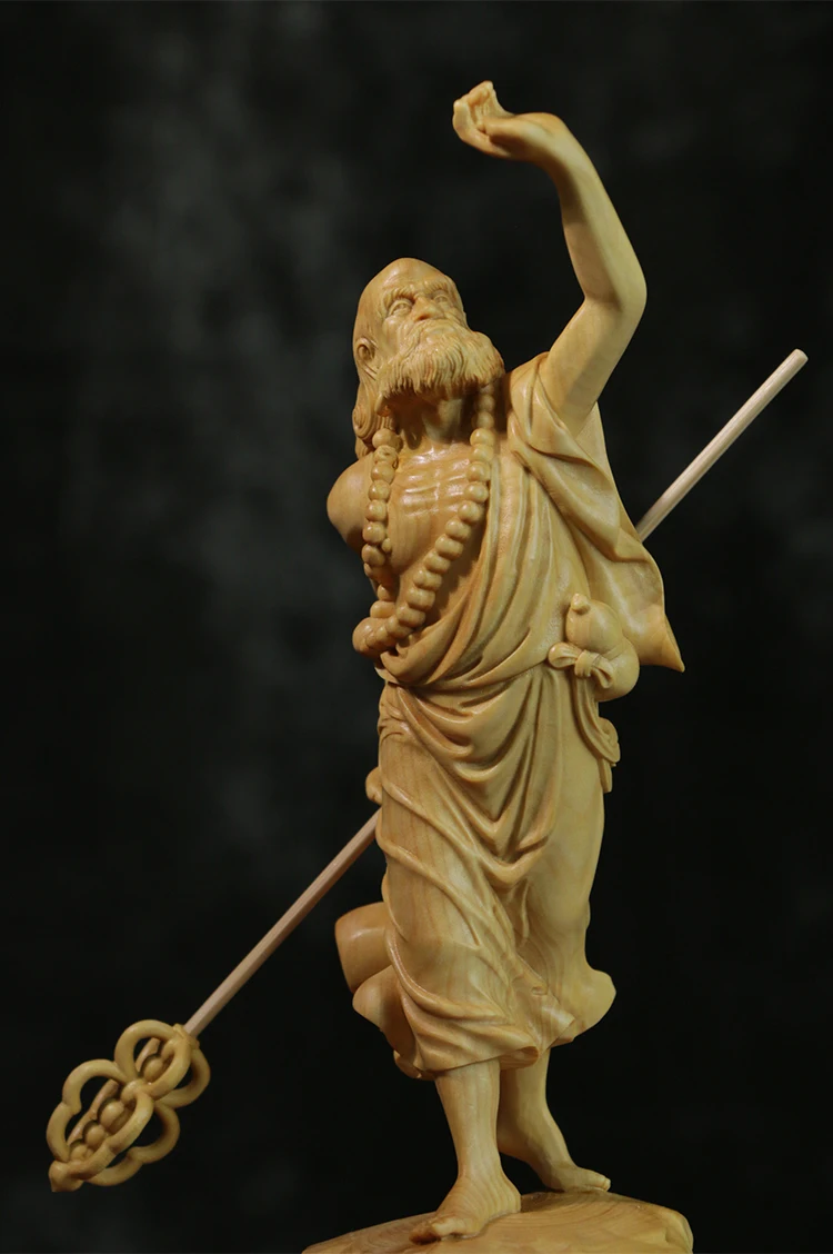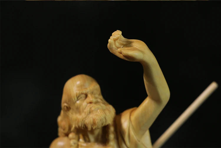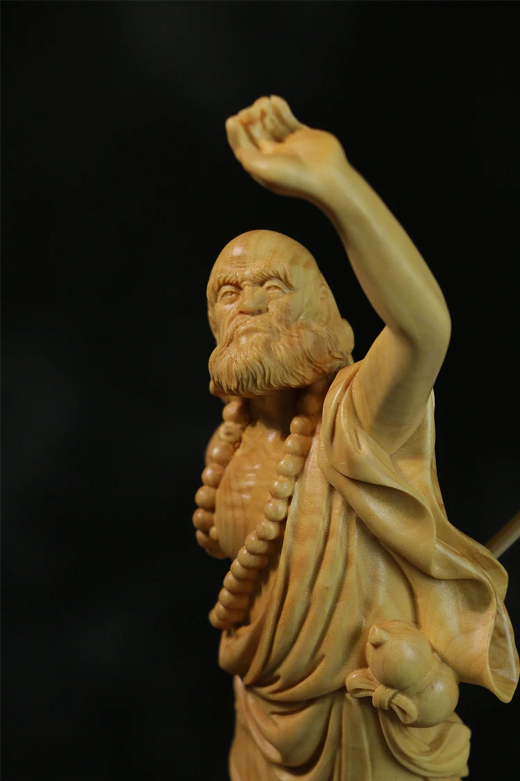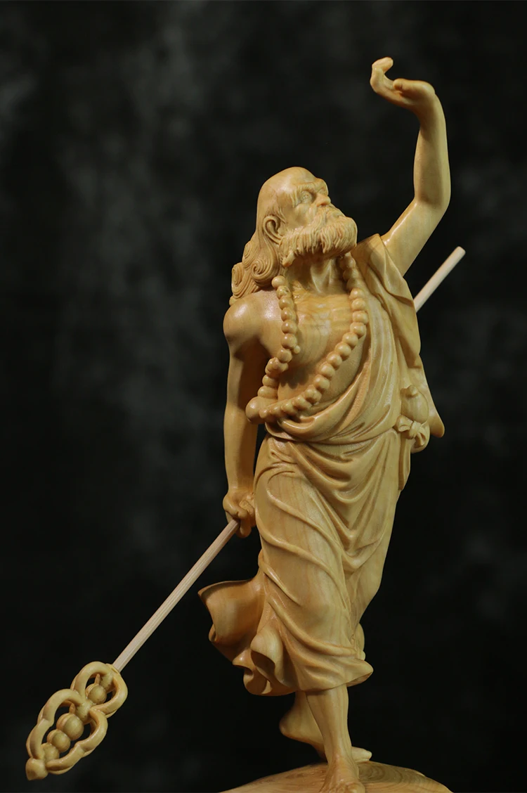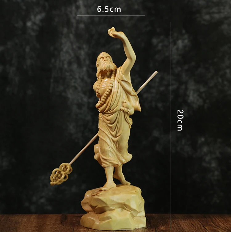 Boxwood 20cm Dharma Wood Carving Zen Buddha Statue Master Feng Shui Sculpture Home Decor