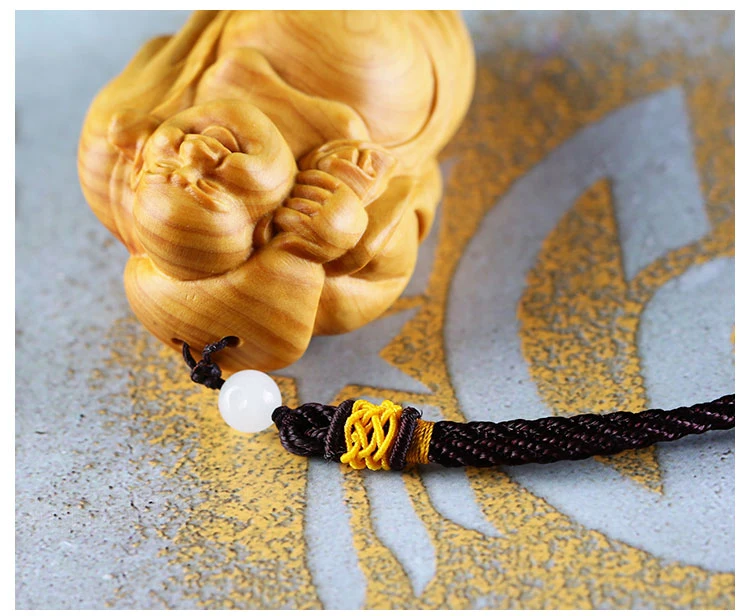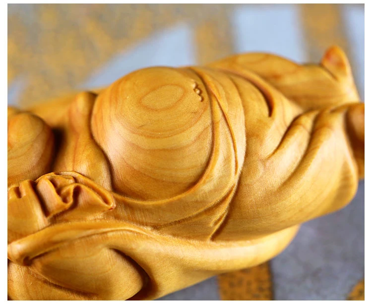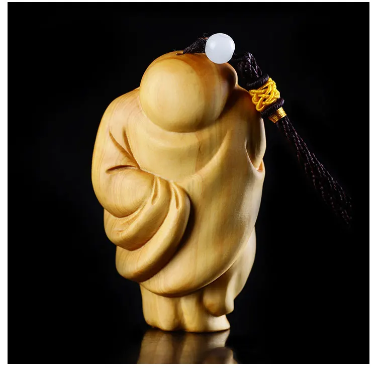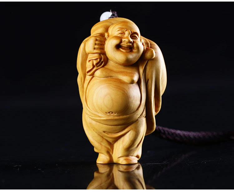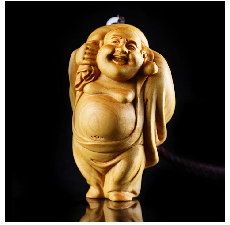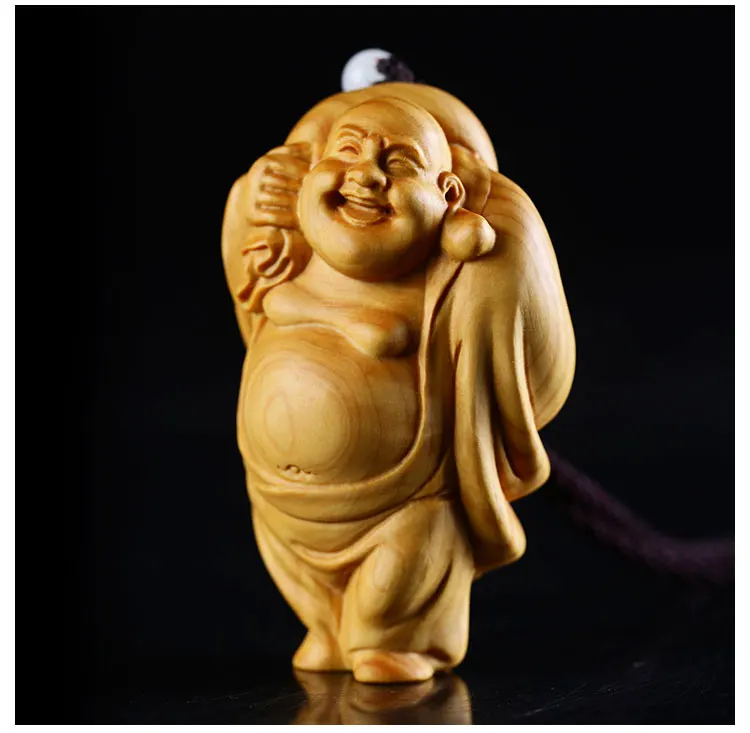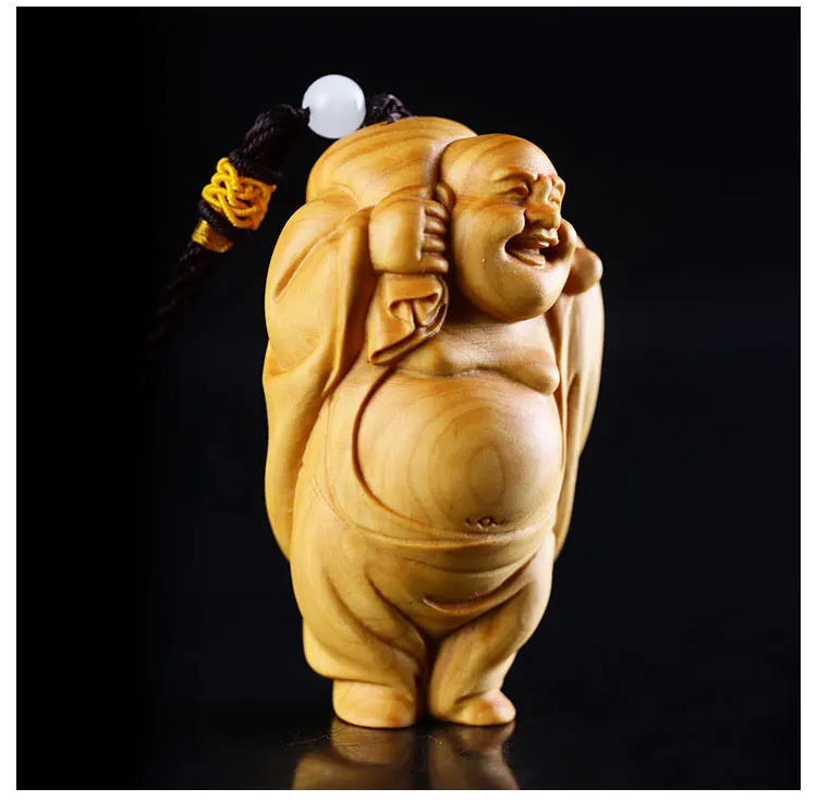 Boxwood 6cm 8cm Maitreya Sculpture Wood Laughing Buddha Statue Metteyya Pendant Home Decor