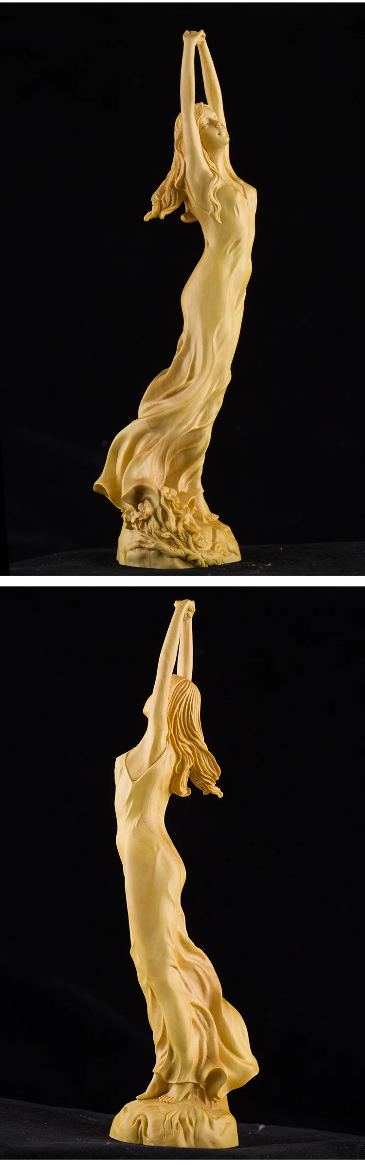 Boxwood-estatua de personaje de Hada de la decoración, 23CM, tallado, belleza, moderna, China, hogar, sala de estar, regalo de d