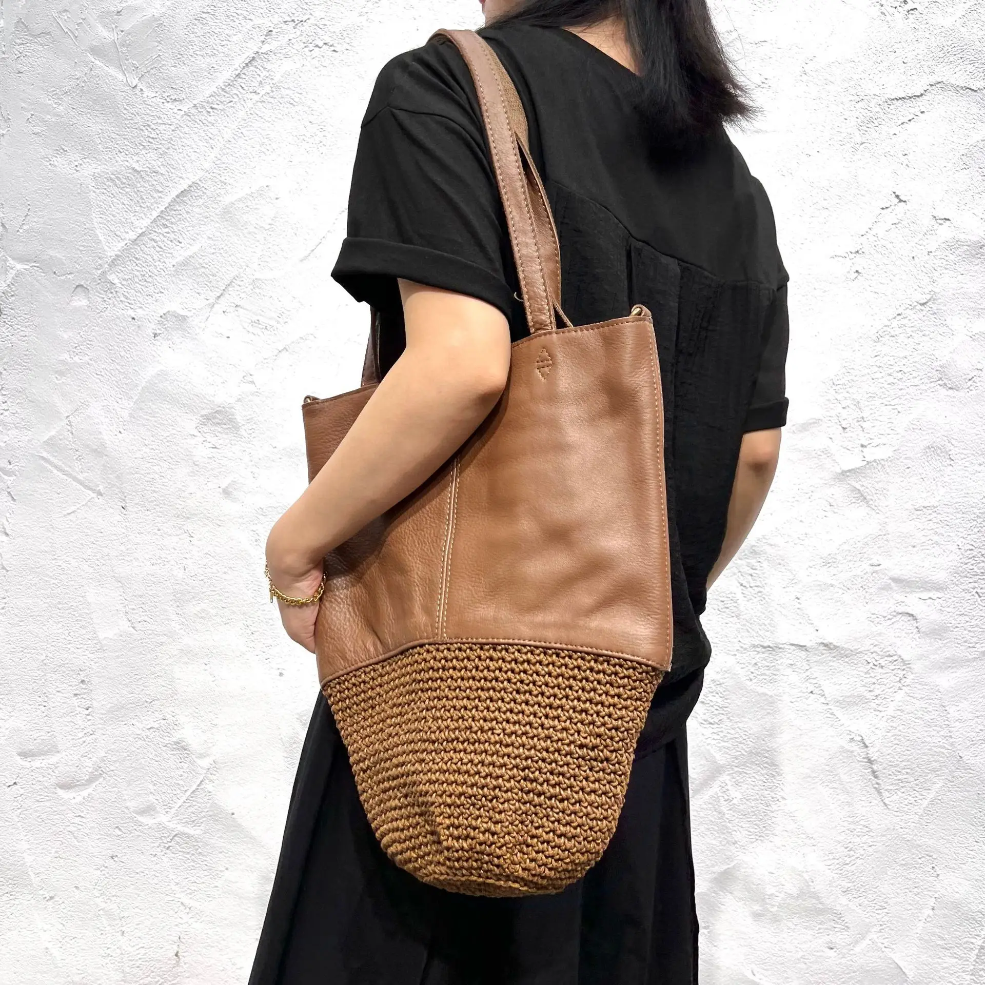 Brand design luxury Leather women's bag handmade first layer cowhide woven shoulder bag messenger bag dual-use big bag