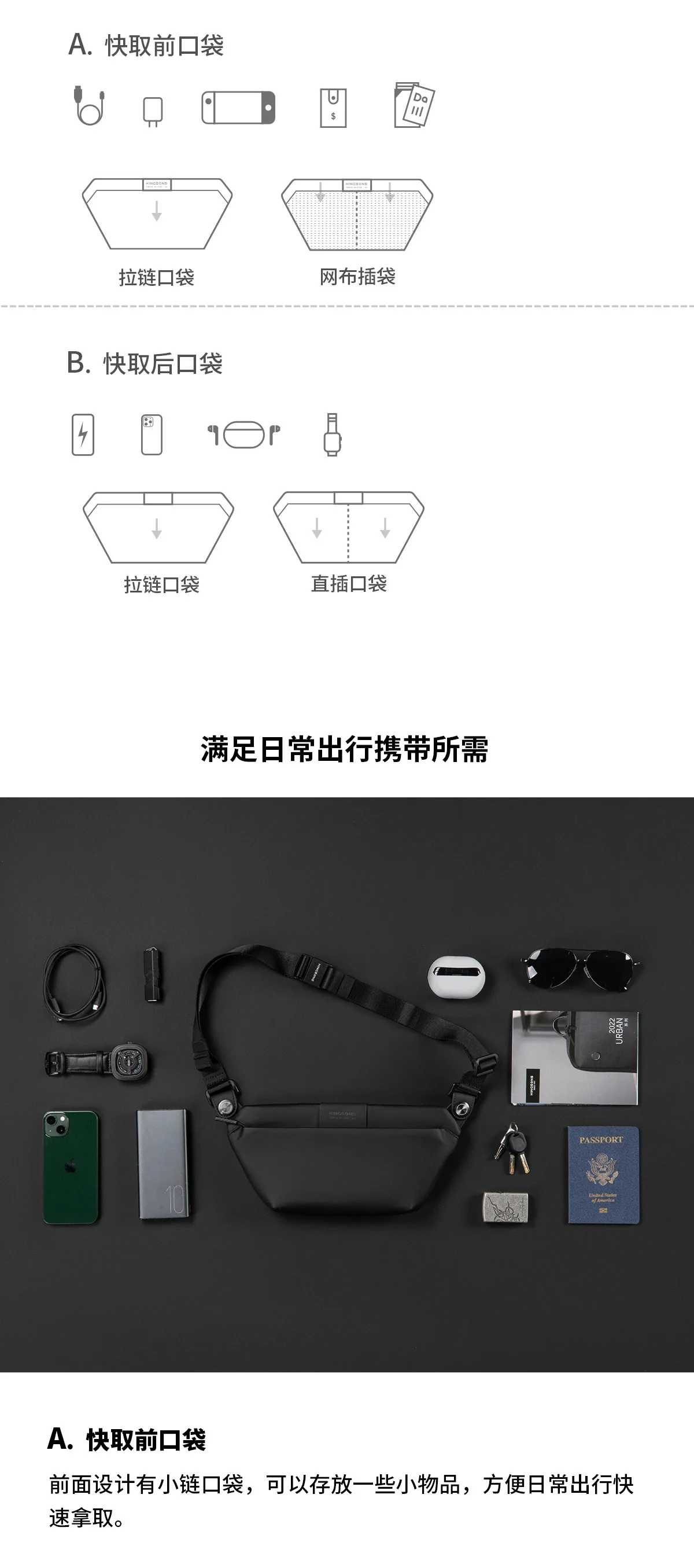 Brand Men's CrossBag Chest Bags Waterproof Bags Bags for Students Dating Decorations Gifts for Men Cool Black Bag