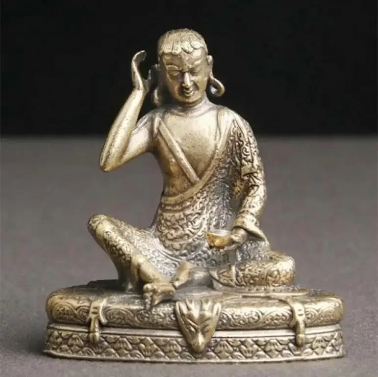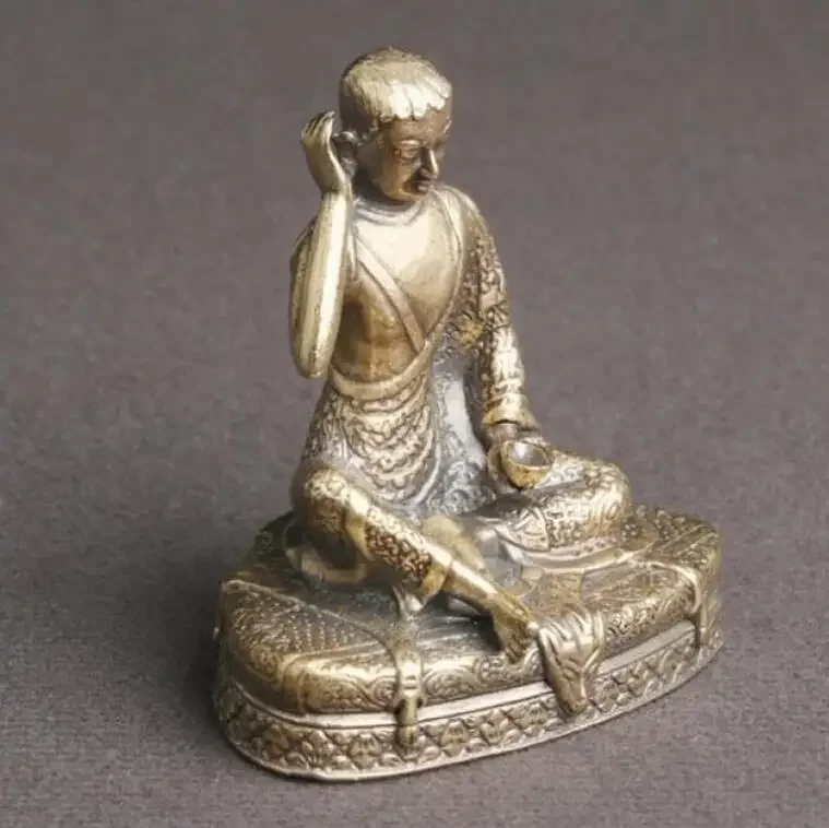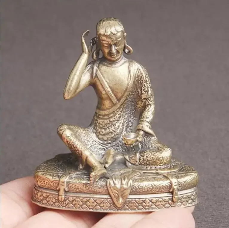 Brass Old Statue Chinese Handmade Milarepa Buddha Statue Delicate Antique