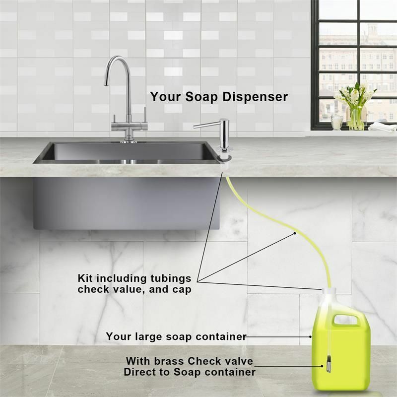 EXCELLENT DESIGN -- The Samodra metal check valve on the end of the tube allow the tube to sit on the bottom of the soap container to ensure it will dispense on every pump, and the suction on the tube will work well to pump the soap out, Long shank perfect for granite counter tops and deep deck installation, perfect for Liquid soap, Lotion or Liquid detergent.