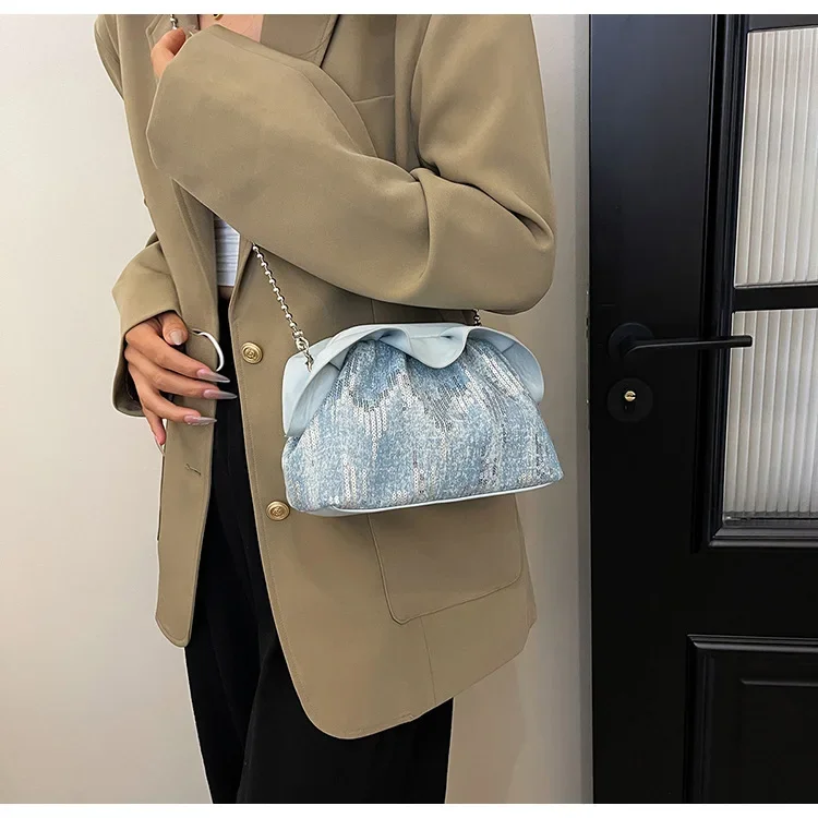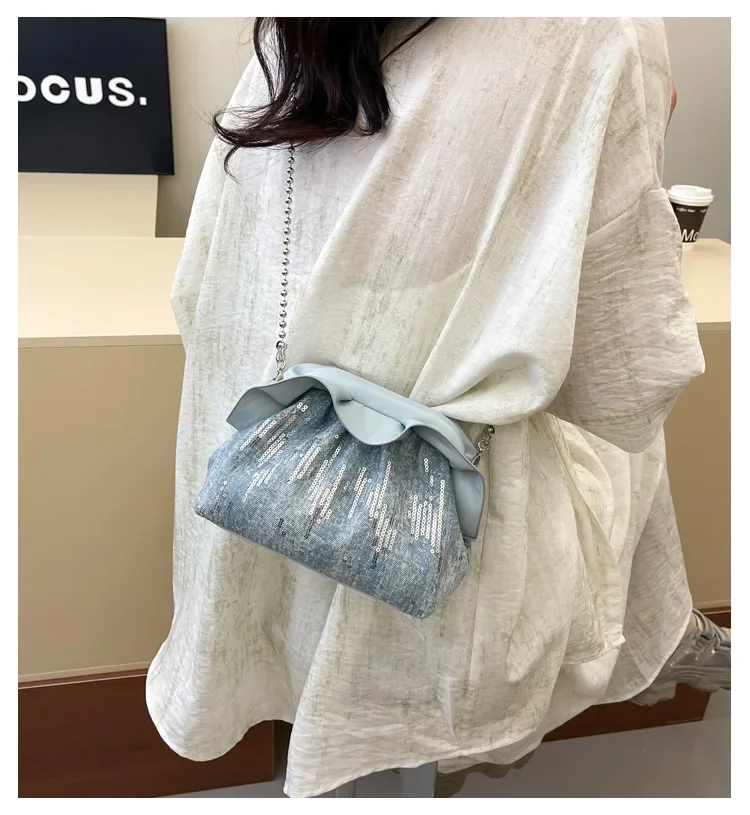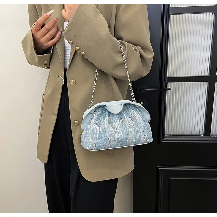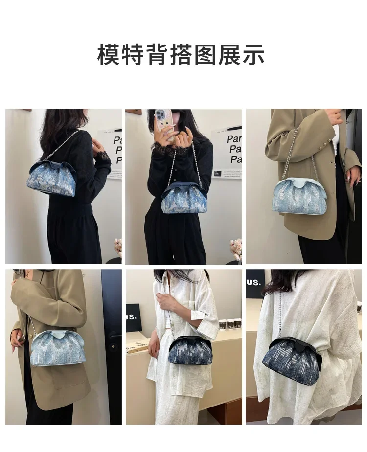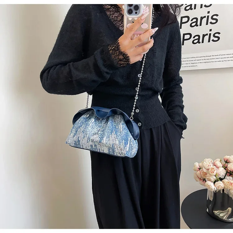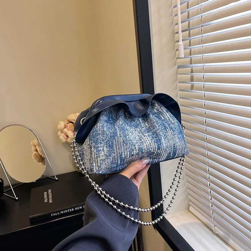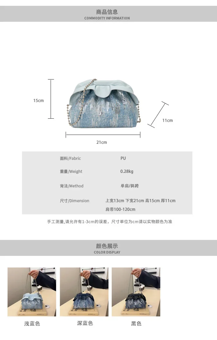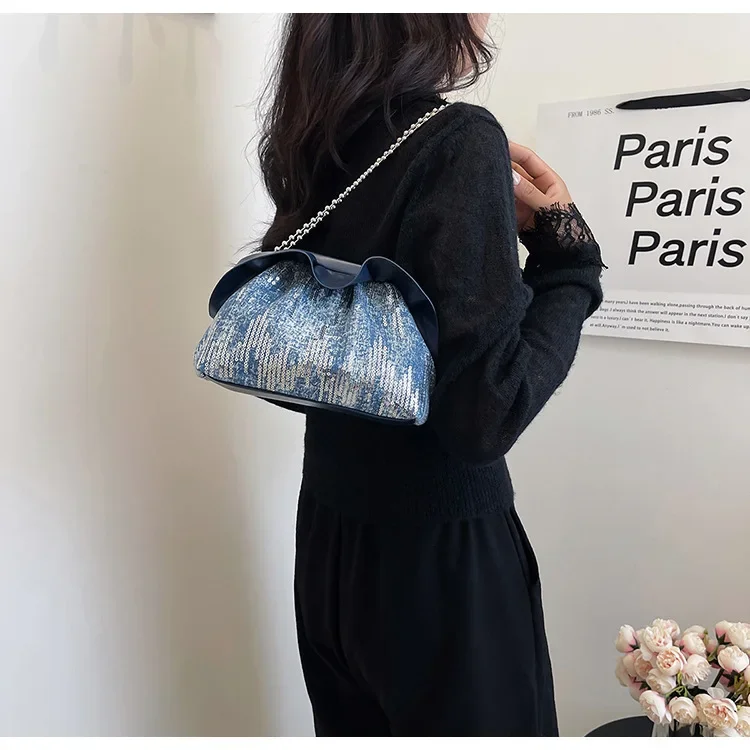Bucket Bag 2024 New Fashion Chain Shoulder Bag High Beauty Handbag with sequins Women's Bag